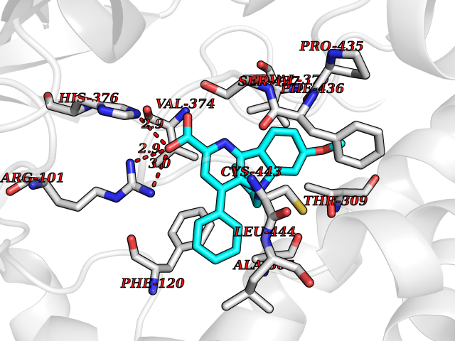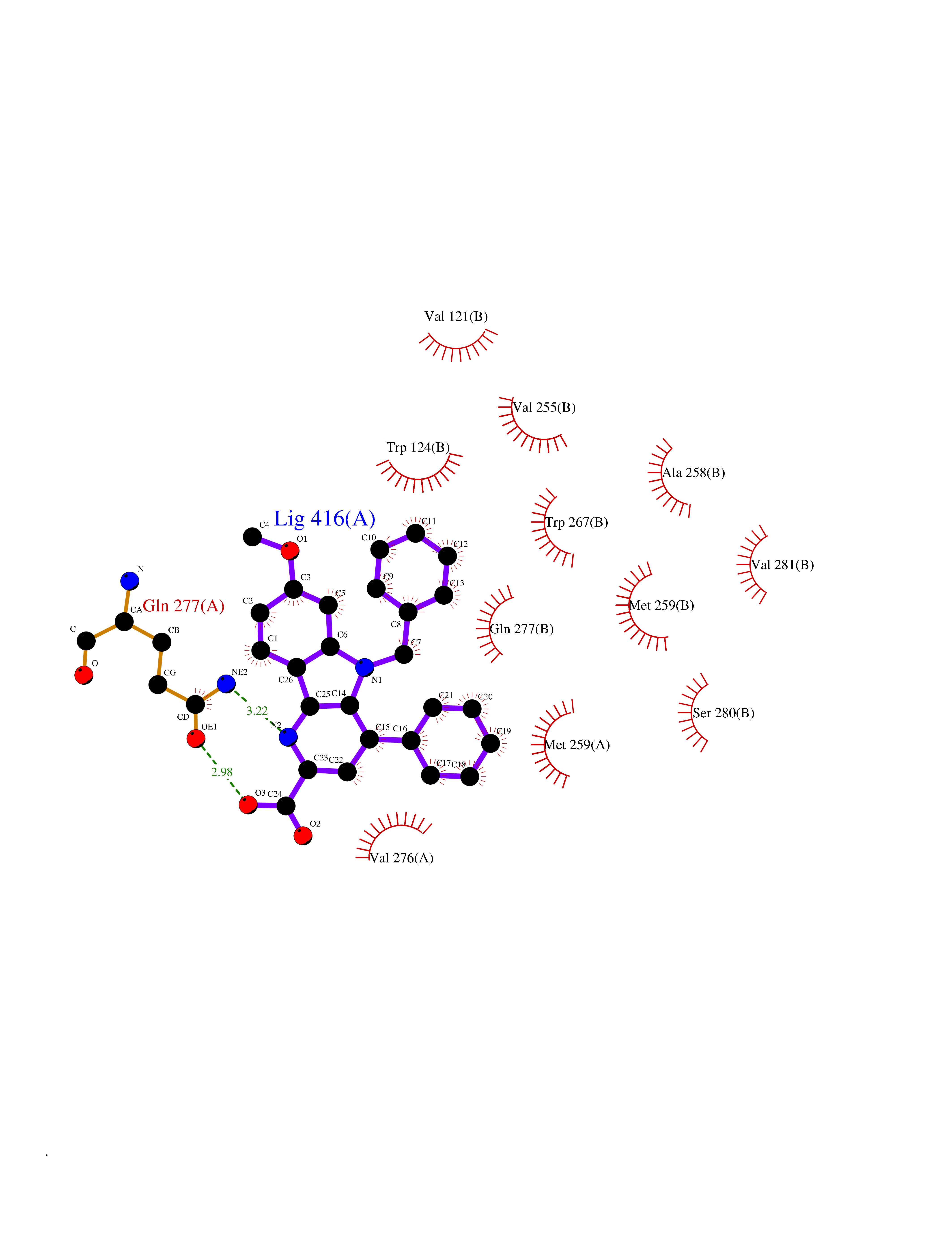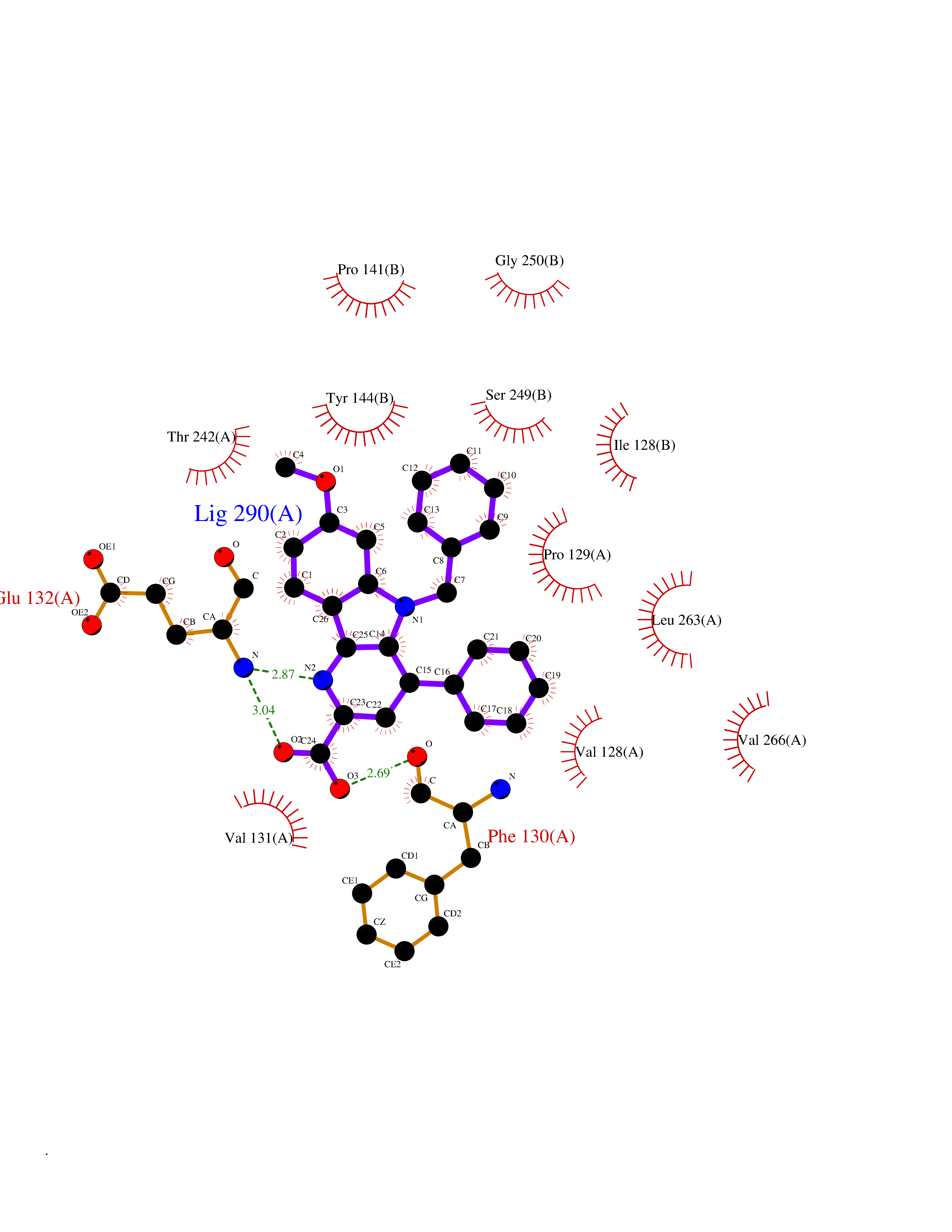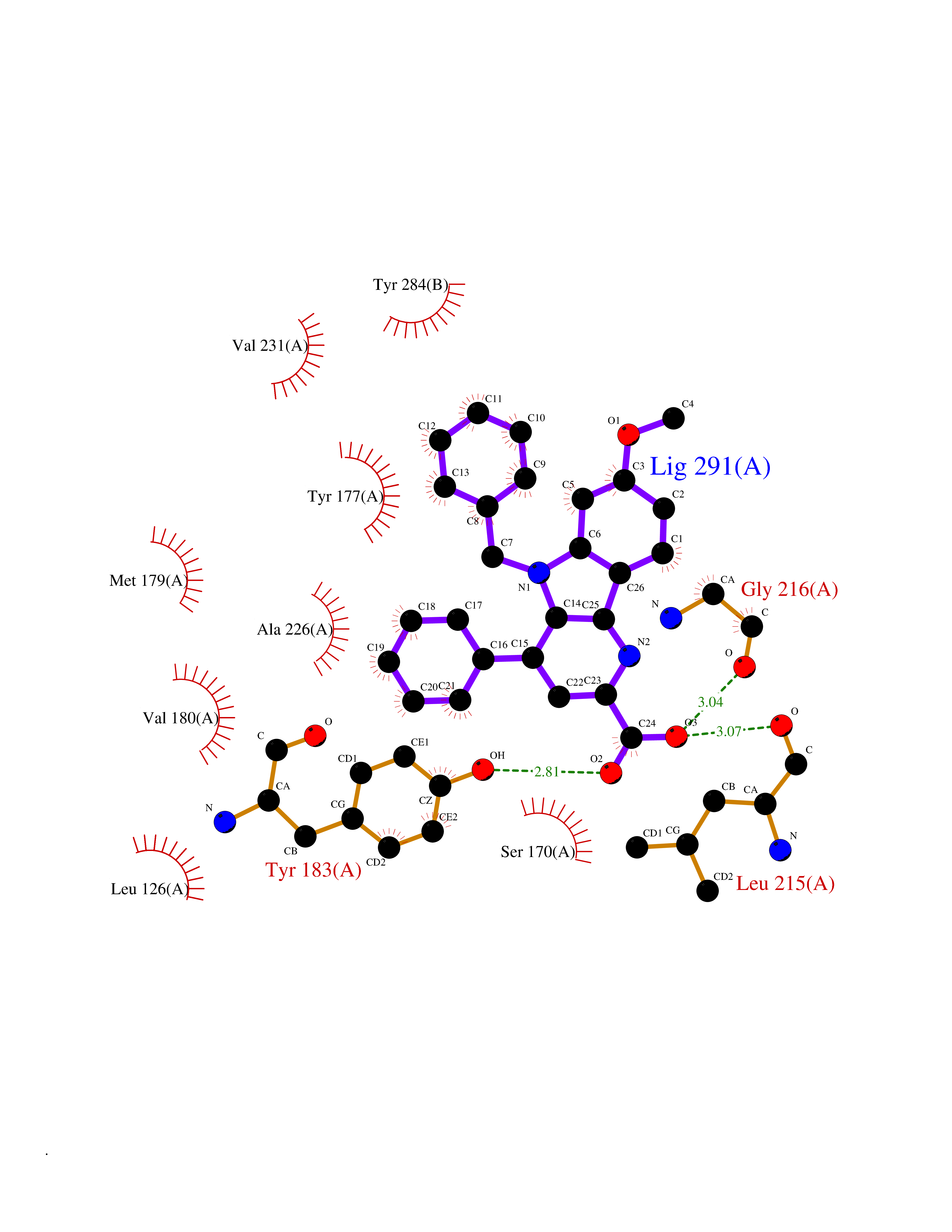 | Target general information Gen name GUCY1B1 Organism Homo sapiens (Human) Uniprot ID TTD ID Synonyms Soluble guanylate cyclase small subunit; Guanylate cyclase soluble subunit beta-3; Guanylate cyclase soluble subunit beta-1; GUCY1B3; GUCSB3; GUC1B3; GCS-beta-3; GCS-beta-1 Protein family Adenylyl cyclase class-4/guanylyl cyclase family Biochemical class Phosphorus-oxygen lyase Function Mediates responses to nitric oxide (NO) by catalyzing the biosynthesis of the signaling molecule cGMP. Related diseases Neurodevelopmental disorder with seizures, hypotonia, and brain imaging abnormalities (NEDSHBA) [MIM:618922]: An autosomal recessive neurodevelopmental disorder characterized by global developmental delay, hypotonia, severe to profound intellectual disability, early-onset epilepsy, and microcephaly. Neuroimaging shows cerebral atrophy, thin corpus callosum and hypomyelination in a majority of cases. Death in childhood may occur. {ECO:0000269|PubMed:27435318, ECO:0000269|PubMed:28097321, ECO:0000269|PubMed:32286009, ECO:0000269|PubMed:33476302, ECO:0000269|PubMed:33500274}. The disease is caused by variants affecting the gene represented in this entry. Drugs (DrugBank ID) DB09401; DB15456 Interacts with Q02108; Q02108-1 EC number EC 4.6.1.2 Uniprot keywords 3D-structure; Alternative splicing; cGMP biosynthesis; Cytoplasm; Direct protein sequencing; GTP-binding; Heme; Iron; Lyase; Metal-binding; Nucleotide-binding; Proteomics identification; Reference proteome Protein physicochemical properties Chain ID A,B Molecular weight (Da) 121177 Length 1071 Aromaticity 0.09 Instability index 42.35 Isoelectric point 6.18 Charge (pH=7) -11.86 3D Binding mode Sequence SRVYLHTLAESICKLIFPEFERLNVALQRTLAKHKFEKTIAEQAVAAGVPVEVIKESLGEEVFKICYEEDENILGVVGGTLKDFLNSFSTLLKQASILCLLHVYYFTTSLILPGIIKAAAHVLYETEVEVSLYLLYSVHSLVIPTSLFCKTFPFHFMFDKDMTILQFGNGIRRLMNRRDKPNFEEYFEILTPKINQTFSGIMTMLNMQFVVRVRRVMDLKGQMIYIVESSAILFLGSPCVLYLSDIPIHNALRDVVLIGEQARAQDGLKKRLGKLKATLEQAHQALEEEKKKTVDLLCSIFPCEVAQQLWQGQVVQAKKFSNVTMLFSDIVGFTAICSQCSPLQVITMLNALYTRFDQQCGELDVYKVETIGDAYCVAGGLHKESDTHAVQIALMAVKMMELSDEVMSPHGEPIKMRIGLHSGSVFAGVVGVKMPRYCLFGNNVTLANKFESCSVPRKINVSPTTYRLLKDCPGFVFTPRSREELPPNFPSEIPGICHFLDAMYGFVNHALELLVIRNYGPEVWEDIKKEAQLDEEGQFLVRIIYDDSKTYDLVAAASKVLNLNAGEILQMFGKMFFVFCQESGYDTILRVLGSNVREFLQNLDALHDHLATIYPGMRAPSFRCTDAEKGKGLILHYYSEREGLQDIVIGIIKTVAQQIHGTEIDMKVIQQRNEECDHTQFLIEEKEESRISPYTFCKAFPFHIIFDRDLVVTQCGNAIYRVLPQLQPGNCSLLSVFSLVRPHIDISFHGILSHINTVFVLRSKEGLLDSCLRLKGQMIYLPEADSILFLCSPSVMNLDDLTRRGLYLSDIPLHDATRDLVLLGEQFREEYKLTQELEILTDRLQLTLRALEDEKKKTDTLLYSVLPPSVANELRHKRPVPAKRYDNVTILFSGIVGFNAFCSKHAGAMKIVNLLNDLYTRFDTLTDSRKNPFVYKVETVGDKYMTVSGLPEPCIHHARSICHLALDMMEIAGQVQVDGESVQITIGIHTGEVVTGVIGQRMPRYCLFGNTVNLTSRTETTGEKGKINVSEYTYRCLMSPENSDPQFHLEHRGPVSMKGKKEPMQVWFLSR Hydrogen bonds contact Hydrophobic contact | ||||