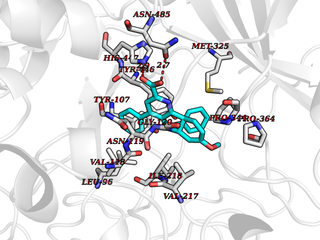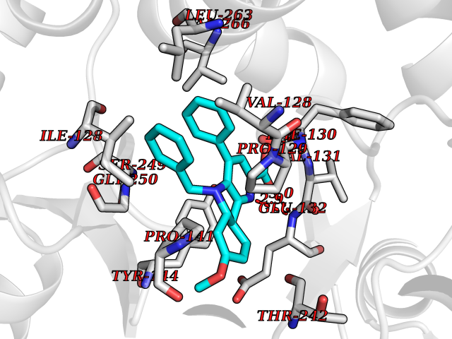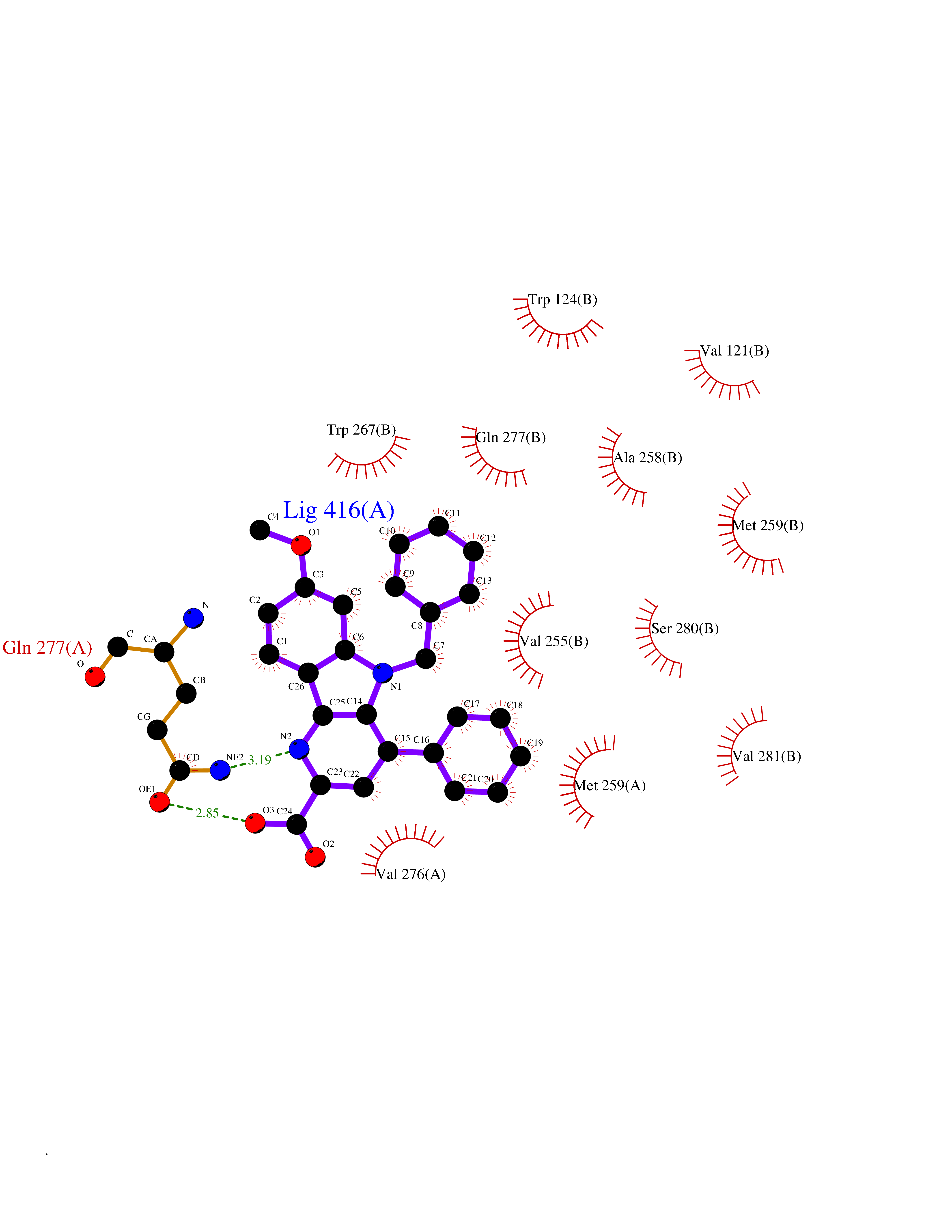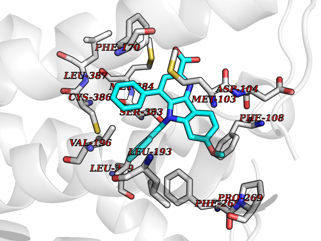 | Target general information Gen name CYP2D6 Organism Homo sapiens (Human) Uniprot ID TTD ID NA Synonyms CYP2DL1 Protein family Cytochrome P450 family Biochemical class Oxidoreductase Function Aromatase activity.Drug binding.Heme binding.Iron ion binding.Monooxygenase activity.Oxidoreductase activity.Oxidoreductase activity, acting on paired donors, with incorporation or reduction of molecular oxygen, reduced flavin or flavoprotein as one donor, and incorporation of one atom of oxygen.Oxygen binding.Steroid hydroxylase activity. Related diseases A chromosomal aberration involving BCL2 has been found in chronic lymphatic leukemia. Translocation t(14;18)(q32;q21) with immunoglobulin gene regions. BCL2 mutations found in non-Hodgkin lymphomas carrying the chromosomal translocation could be attributed to the Ig somatic hypermutation mechanism resulting in nucleotide transitions. {ECO:0000269|PubMed:2875799, ECO:0000269|PubMed:3285301}. Drugs (DrugBank ID) DB01562; DB01472; DB14010; DB12001; DB05812; DB01193; DB00316; DB15568; DB00918; DB06203; DB00866; DB01424; DB01118; DB00321; DB00381; DB00613; DB00543; DB00182; DB00701; DB11785; DB01435; DB01429; DB01274; DB01238; DB14185; DB09204; DB11638; DB06216; DB00637; DB11586; DB00335; DB00289; DB01076; DB00972; DB04957; DB09013; DB16703; DB01086; DB06770; DB01244; DB15982; DB00195; DB01295; DB12236; DB01128; DB04889; DB00810; DB13975; DB08807; DB00188; DB09128; DB12151; DB12752; DB06726; DB00297; DB08808; DB00921; DB01156; DB00490; DB09173; DB00201; DB09061; DB14737; DB06016; DB00521; DB01136; DB00482; DB04846; DB00439; DB00185; DB00608; DB01114; DB00477; DB00356; DB01410; DB01166; DB00501; DB01012; DB00568; DB00604; DB00215; DB12499; DB00283; DB04920; DB14025; DB00349; DB00845; DB01242; DB00575; DB13508; DB00257; DB00363; DB09065; DB05239; DB00907; DB00318; DB11672; DB14635; DB00924; DB00091; DB11963; DB06292; DB04884; DB00496; DB01264; DB09183; DB04840; DB00705; DB06512; DB01151; DB06700; DB16650; DB12161; DB13679; DB09555; DB01191; DB00633; DB01576; DB00514; DB00647; DB11994; DB01551; DB00343; DB01093; DB01075; DB00757; DB01184; DB00843; DB09167; DB00590; DB01142; DB00997; DB00470; DB04855; DB00476; DB00625; DB11979; DB00216; DB15444; DB09039; DB13874; DB01228; DB06735; DB11718; DB00494; DB13757; DB00751; DB00530; DB13443; DB01175; DB06678; DB00187; DB00330; DB01466; DB01628; DB01590; DB12500; DB01023; DB00574; DB06702; DB12265; DB01195; DB04841; DB00472; DB00623; DB01095; DB00176; DB00983; DB02703; DB15149; DB00674; DB05087; DB00317; DB08909; DB00986; DB01218; DB00502; DB00956; DB01611; DB00557; DB09053; DB01177; DB04946; DB00619; DB00458; DB08952; DB00224; DB06370; DB13293; DB04818; DB16200; DB11633; DB06636; DB00951; DB11757; DB00602; DB09570; DB01026; DB00598; DB12212; DB00448; DB11732; DB16217; DB09078; DB00528; DB12070; DB09351; DB01210; DB08918; DB00281; DB04948; DB01206; DB00836; DB01601; DB00455; DB04871; DB09195; DB06708; DB04829; DB09238; DB00934; DB14921; DB00737; DB14009; DB09224; DB00170; DB00454; DB00532; DB13530; DB06691; DB01071; DB00933; DB01577; DB00333; DB00763; DB01403; DB01028; DB09241; DB01214; DB01233; DB00264; DB00379; DB06148; DB01388; DB01110; DB00211; DB01454; DB06595; DB00834; DB00805; DB08893; DB00370; DB12523; DB01171; DB00745; DB14011; DB09049; DB00731; DB04861; DB01149; DB00220; DB09048; DB00238; DB00627; DB00622; DB00699; DB02701; DB00184; DB01115; DB04868; DB12005; DB00540; DB00334; DB14881; DB00338; DB00904; DB11130; DB04911; DB01173; DB11837; DB04938; DB01096; DB01580; DB01062; DB00497; DB06412; DB01192; DB01267; DB00377; DB06603; DB00715; DB06589; DB00022; DB01359; DB00738; DB01074; DB08922; DB00850; DB03783; DB00780; DB00914; DB00252; DB05316; DB01100; DB00960; DB00592; DB01621; DB04951; DB17472; DB11642; DB08901; DB01297; DB15822; DB01087; DB01035; DB00433; DB00396; DB01131; DB00420; DB01069; DB09288; DB01182; DB00571; DB04216; DB01224; DB00908; DB00468; DB01129; DB00863; DB00243; DB00234; DB14761; DB00409; DB06506; DB02709; DB11855; DB13174; DB11753; DB08864; DB14840; DB00734; DB12693; DB00503; DB00953; DB09291; DB15119; DB00412; DB05271; DB12332; DB11614; DB06654; DB01232; DB01037; DB06144; DB01104; DB00203; DB00641; DB01591; DB00398; DB12713; DB00489; DB06727; DB01323; DB09118; DB06820; DB06729; DB06608; DB11770; DB00675; DB00706; DB06204; DB06083; DB01079; DB12095; DB06287; DB00857; DB00342; DB13775; DB04905; DB04844; DB11712; DB00277; DB00679; DB01623; DB00208; DB00373; DB01409; DB00932; DB06137; DB01036; DB05109; DB00193; DB00752; DB00656; DB12245; DB00726; DB00792; DB00209; DB15328; DB09076; DB13609; DB15091; DB11915; DB00862; DB08881; DB00285; DB00661; DB06217; DB06684; DB09185; DB00570; DB00361; DB11739; DB09068; DB01392; DB00549; DB15688; DB00425; DB01624 Interacts with NA EC number 1.14.14.- Uniprot keywords 3D-structure; Alternative splicing; Cholesterol metabolism; Endoplasmic reticulum; Fatty acid metabolism; Heme; Iron; Lipid metabolism; Membrane; Metal-binding; Microsome; Monooxygenase; Oxidoreductase; Proteomics identification; Reference proteome; Steroid metabolism; Sterol metabolism Protein physicochemical properties Chain ID A,B,C,D Molecular weight (Da) 51178.2 Length 456 Aromaticity 0.09 Instability index 44.04 Isoelectric point 6.57 Charge (pH=7) -1.99 3D Binding mode Sequence KLPPGPLPDFQNTPYCFDQLRRRFGDVFSLQLAWTPVVVLNGLAAVREALVTHGEDTADRPPVPITQILGFGPRSQGVFLARYGPAWREQRRFSVSTLRNLGLGKKSLEQWVTEEAACLCAAFANHSGRPFRPNGLLDKAVSNVIASLTCGRRFEYDDPRFLRLLDLAQEGLKEESGFLREVLNAVPVLLHIPALAGKVLRFQKAFLTQLDELLTEHRMTWDPAQPPRDLTEAFLAEMEKAKGNPESSFNDENLRIVVADLFSAGMVTTSTTLAWGLLLMILHPDVQRRVQQEIDDVIGQVRRPEMGDQAHMPYTTAVIHEVQRFGDIVPLGVTHMTSRDIEVQGFRIPKGTTLITNLSSVLKDEAVWEKPFRFHPEHFLDAQGHFVKPEAFLPFSAGRRACLGEPLARMELFLFFTSLLQHFSFSVPTGQPRPSHHGVFAFLVSPSPYELCAVPR Hydrogen bonds contact Hydrophobic contact | ||||