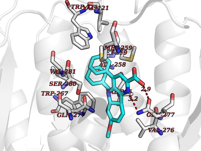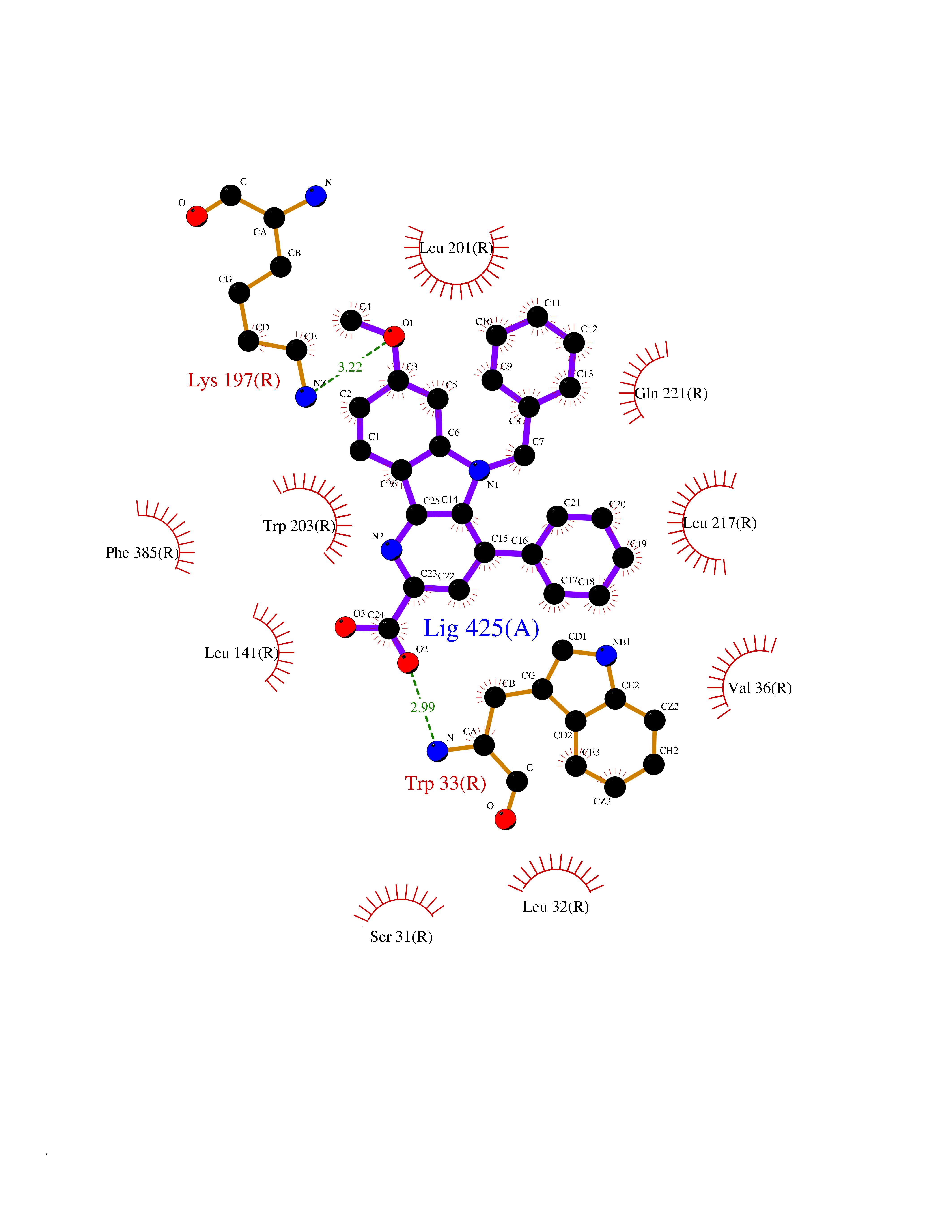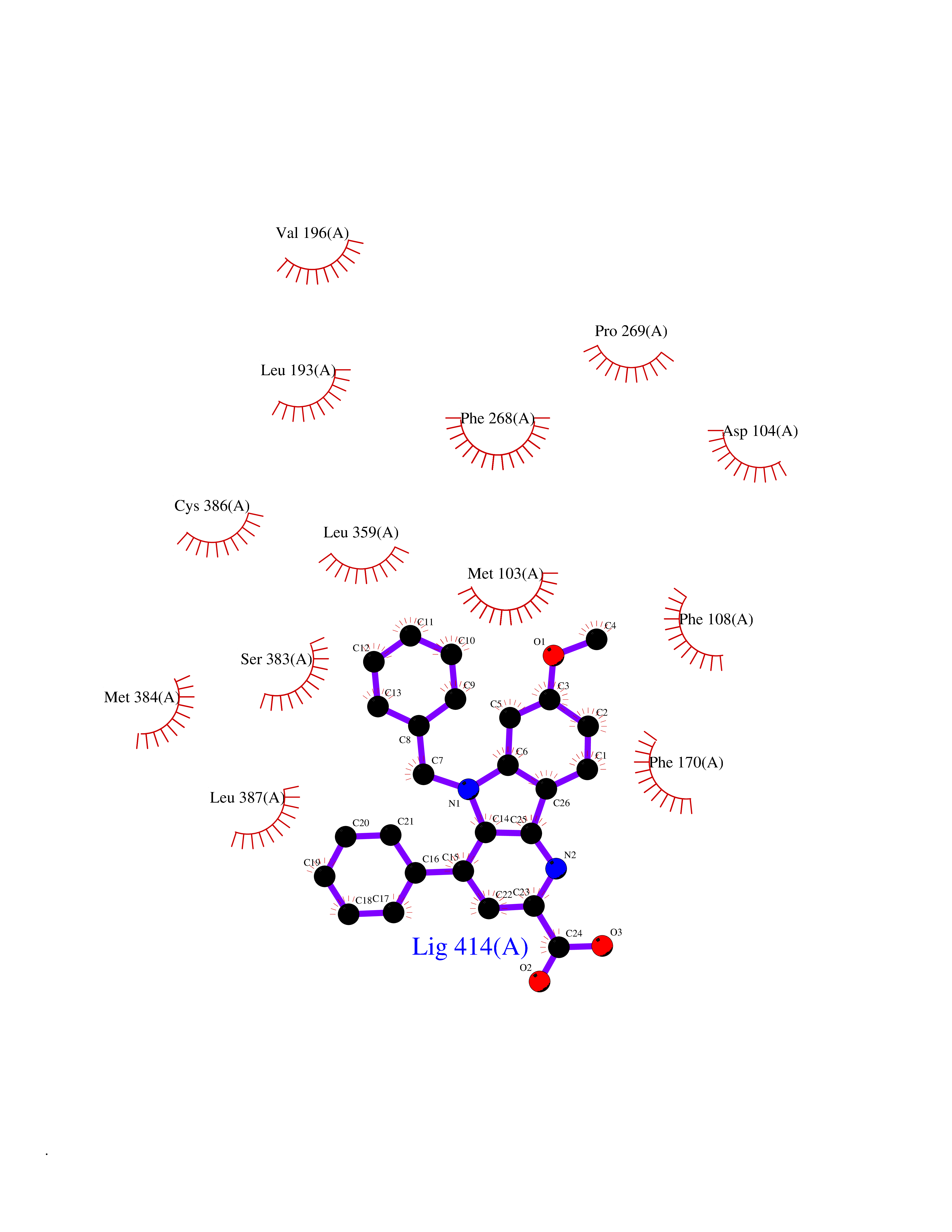 | Target general information Gen name PTGDR2 Organism Homo sapiens (Human) Uniprot ID TTD ID Synonyms PTGDR2; Chemoattractant receptor-homologous molecule expressed on Th2 cells; CD294 Protein family G-protein coupled receptor 1 family Biochemical class GPCR rhodopsin Function Receptor for prostaglandin D2 (PGD2). Coupled to the G(i)-protein. Receptor activation may result in pertussis toxin- sensitive decreases in cAMP levels and Ca(2+) mobilization. PI3K signaling is also implicated in mediating PTGDR2 effects. PGD2 induced receptor internalization. CRTH2 internalization can be regulated by diverse kinases such as, PKC, PKA, ADRBK1/GRK2, GPRK5/GRK5 and GRK6. Receptoractivation is responsible, at least in part, in immune regulation and allergic/inflammation responses. Related diseases Neurodevelopmental disorder with seizures, hypotonia, and brain imaging abnormalities (NEDSHBA) [MIM:618922]: An autosomal recessive neurodevelopmental disorder characterized by global developmental delay, hypotonia, severe to profound intellectual disability, early-onset epilepsy, and microcephaly. Neuroimaging shows cerebral atrophy, thin corpus callosum and hypomyelination in a majority of cases. Death in childhood may occur. {ECO:0000269|PubMed:27435318, ECO:0000269|PubMed:28097321, ECO:0000269|PubMed:32286009, ECO:0000269|PubMed:33476302, ECO:0000269|PubMed:33500274}. The disease is caused by variants affecting the gene represented in this entry. Drugs (DrugBank ID) DB00770; DB12789; DB00917; DB01088; DB00328; DB02056; DB13036; DB00605; DB04828 Interacts with NA EC number NA Uniprot keywords 3D-structure; Cell membrane; Disulfide bond; G-protein coupled receptor; Glycoprotein; Membrane; Phosphoprotein; Proteomics identification; Receptor; Reference proteome; Transducer; Transmembrane; Transmembrane helix Protein physicochemical properties Chain ID A Molecular weight (Da) 49740.6 Length 447 Aromaticity 0.1 Instability index 37.89 Isoelectric point 10.13 Charge (pH=7) 21.88 3D Binding mode Sequence ATLKPLCPILEQMSRLQSHSATSIRYIDHAAVLLHGLASLLGLVENGVILFVVGCRMRQTVVTTWVLHLALSDLLASASLPFFTYFLAVGHSWELGTTFCKLHSSIFFLNMFASGFLLSAISLDRCLQVVRPVWAQNHRTVAAAHKVCLVLWALAVLNTVPYFVFRDTISRLDGRIMCYYNVLLLNPGPDRDATCNSRQAALAVSKFLLAFLVPLAIIASSHAAVSLRLQHRADLGLQHRNIFEMLRIDEGGGSGGDEAEKLFNQDVDAAVRGILRNAKLKPVYDSLDAVRRAALINMVFQMGETGVAGFTNSLRMLQQKRWDEAAVNLAKSRWYNQTPNRAKRVITTFRTGTWDAYRRRPGRFVRLVAAVVAAFALCWGPYHVFSLLEARAHANPGLRPLVWRGLPFVTSLAFFNSVANPVLYVLTXPDMLRKLRRSLRTVLESVL Hydrogen bonds contact Hydrophobic contact | ||||