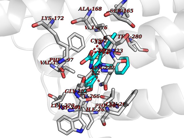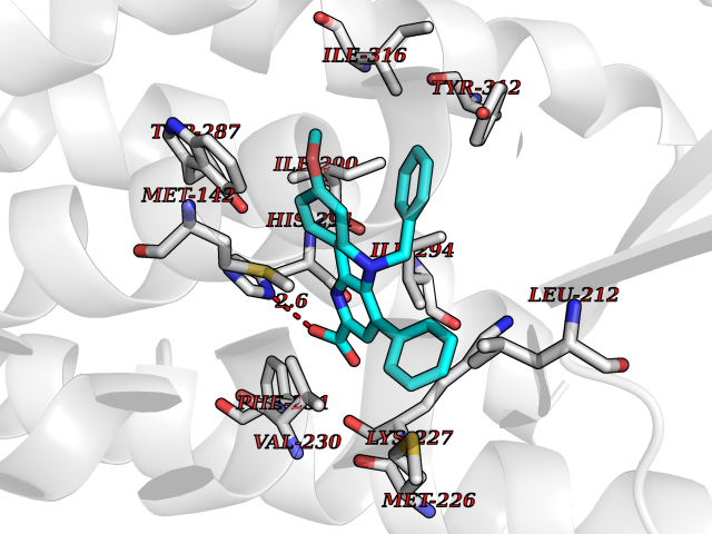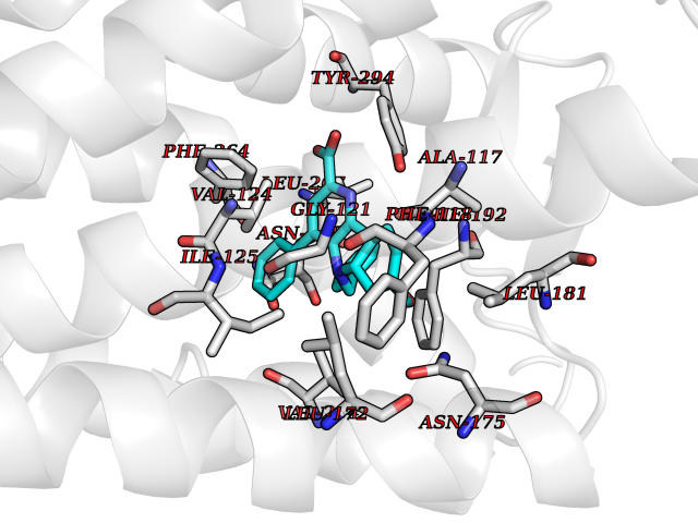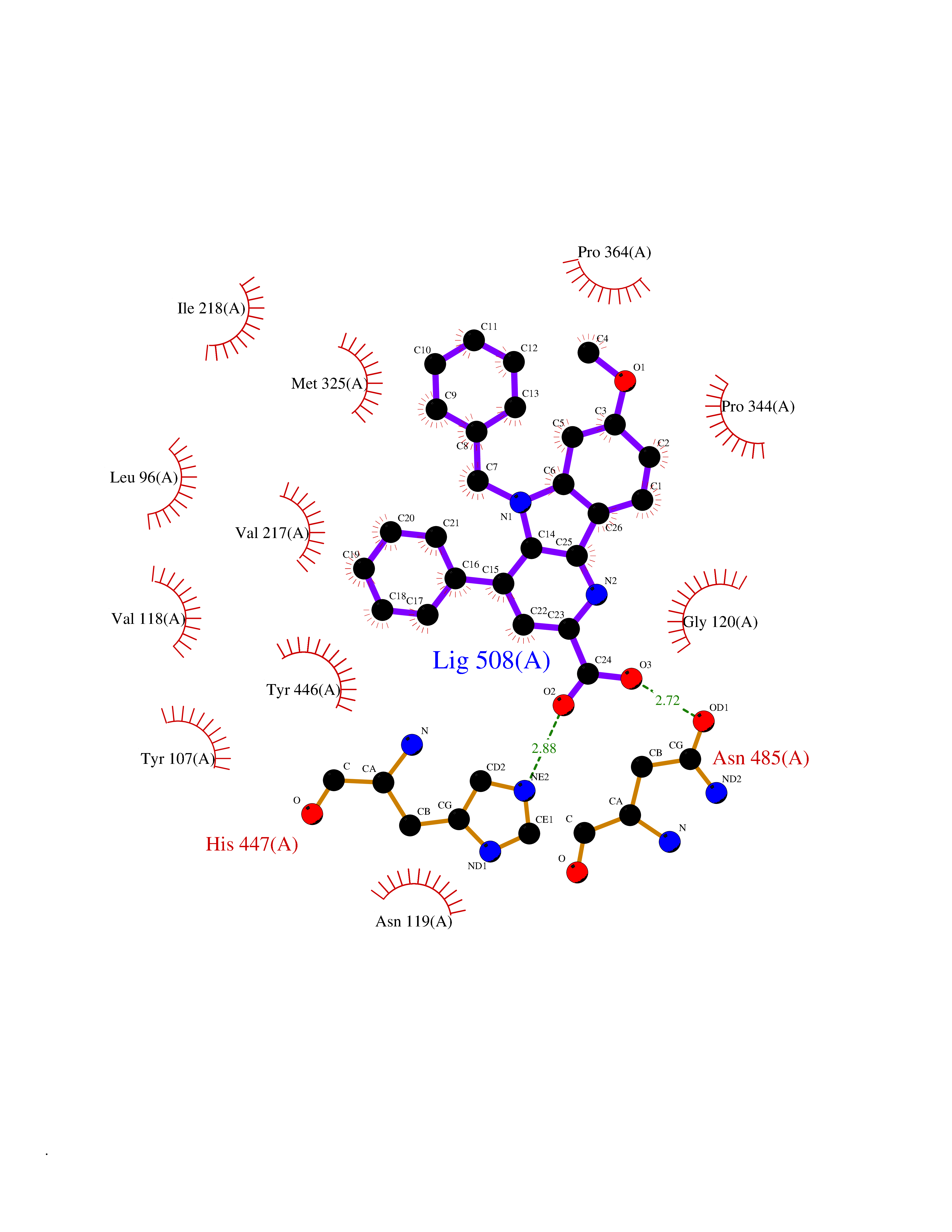 | Target general information Gen name OPRK1 Organism Homo sapiens (Human) Uniprot ID TTD ID Synonyms OPRK; Kappa-type opioid receptor; Kappa opioid receptor; KOR-1; KOR; K-OR-1 Protein family G-protein coupled receptor 1 family Biochemical class GPCR rhodopsin Function Functions as receptor for various synthetic opioids and for the psychoactive diterpene salvinorin A. Ligand binding causes a conformation change that triggers signaling via guanine nucleotide-binding proteins (G proteins) and modulates the activity of down-stream effectors, such as adenylate cyclase. Signaling leads to the inhibition of adenylate cyclase activity. Inhibits neurotransmitter release by reducing calcium ion currents and increasing potassium ion conductance. Plays a role in the perception of pain. Plays a role in mediating reduced physical activity upon treatment with synthetic opioids. Plays a role in the regulation of salivation in response to synthetic opioids. May play a role in arousal and regulation of autonomic and neuroendocrine functions. G-protein coupled opioid receptor that functions as receptor for endogenous alpha-neoendorphins and dynorphins, but has low affinity for beta-endorphins. Related diseases Defects in PPARG can lead to type 2 insulin-resistant diabetes and hyptertension. PPARG mutations may be associated with colon cancer. {ECO:0000269|PubMed:10394368}.; DISEASE: Obesity (OBESITY) [MIM:601665]: A condition characterized by an increase of body weight beyond the limitation of skeletal and physical requirements, as the result of excessive accumulation of body fat. {ECO:0000269|PubMed:9753710}. Disease susceptibility may be associated with variants affecting the gene represented in this entry.; DISEASE: Lipodystrophy, familial partial, 3 (FPLD3) [MIM:604367]: A form of lipodystrophy characterized by marked loss of subcutaneous fat from the extremities. Facial adipose tissue may be increased, decreased or normal. Affected individuals show an increased preponderance of insulin resistance, diabetes mellitus and dyslipidemia. {ECO:0000269|PubMed:11788685, ECO:0000269|PubMed:12453919}. The disease is caused by variants affecting the gene represented in this entry.; DISEASE: Glioma 1 (GLM1) [MIM:137800]: Gliomas are benign or malignant central nervous system neoplasms derived from glial cells. They comprise astrocytomas and glioblastoma multiforme that are derived from astrocytes, oligodendrogliomas derived from oligodendrocytes and ependymomas derived from ependymocytes. {ECO:0000269|PubMed:10851250}. Disease susceptibility may be associated with variants affecting the gene represented in this entry. Polymorphic PPARG alleles have been found to be significantly over-represented among a cohort of American patients with sporadic glioblastoma multiforme suggesting a possible contribution to disease susceptibility. Drugs (DrugBank ID) DB01571; DB01439; DB05443; DB06274; DB06288; DB00321; DB01238; DB05104; DB00289; DB00921; DB00611; DB09173; DB01535; DB00318; DB05155; DB00514; DB00647; DB01209; DB01452; DB11938; DB01565; DB01548; DB09272; DB01497; DB00813; DB00327; DB01221; DB06738; DB00555; DB00825; DB00854; DB00836; DB14146; DB00454; DB06800; DB06148; DB00370; DB00295; DB06409; DB00844; DB11691; DB06230; DB01183; DB00704; DB11130; DB00497; DB00652; DB11186; DB09209; DB00396; DB00899; DB12543; DB00708; DB06204; DB00193; DB05046 Interacts with P35414; Q9H0R8; Q16617 EC number NA Uniprot keywords 3D-structure; Alternative splicing; Behavior; Cell membrane; Disulfide bond; G-protein coupled receptor; Glycoprotein; Lipoprotein; Membrane; Palmitate; Proteomics identification; Receptor; Reference proteome; Transducer; Transmembrane; Transmembrane helix Protein physicochemical properties Chain ID A,B Molecular weight (Da) 29386.8 Length 261 Aromaticity 0.14 Instability index 33.75 Isoelectric point 7.45 Charge (pH=7) 0.55 3D Binding mode Sequence SPAIPVIITAVYSVVFVVGLVGNSLVMFVIIRYTKMKTATNIYIFNLALADALVTTTMPFQSTVYLMNSWPFGDVLCKIVLSIDYYNMFTSIFTLTMMSVDRYIAVCHPVKALDFRTPLKAKIINICIWLLSSSVGISAIVLGGTKVREDVDVIECSLQFPDDDYSWWDLFMKICVFIFAFVIPVLIIIVCYTLRRITRLVLVVVAVFVVCWTPIHIFILVEALGSTAALSSYYFCIALGYTNSSLNPILYAFLDENFKRC Hydrogen bonds contact Hydrophobic contact | ||||