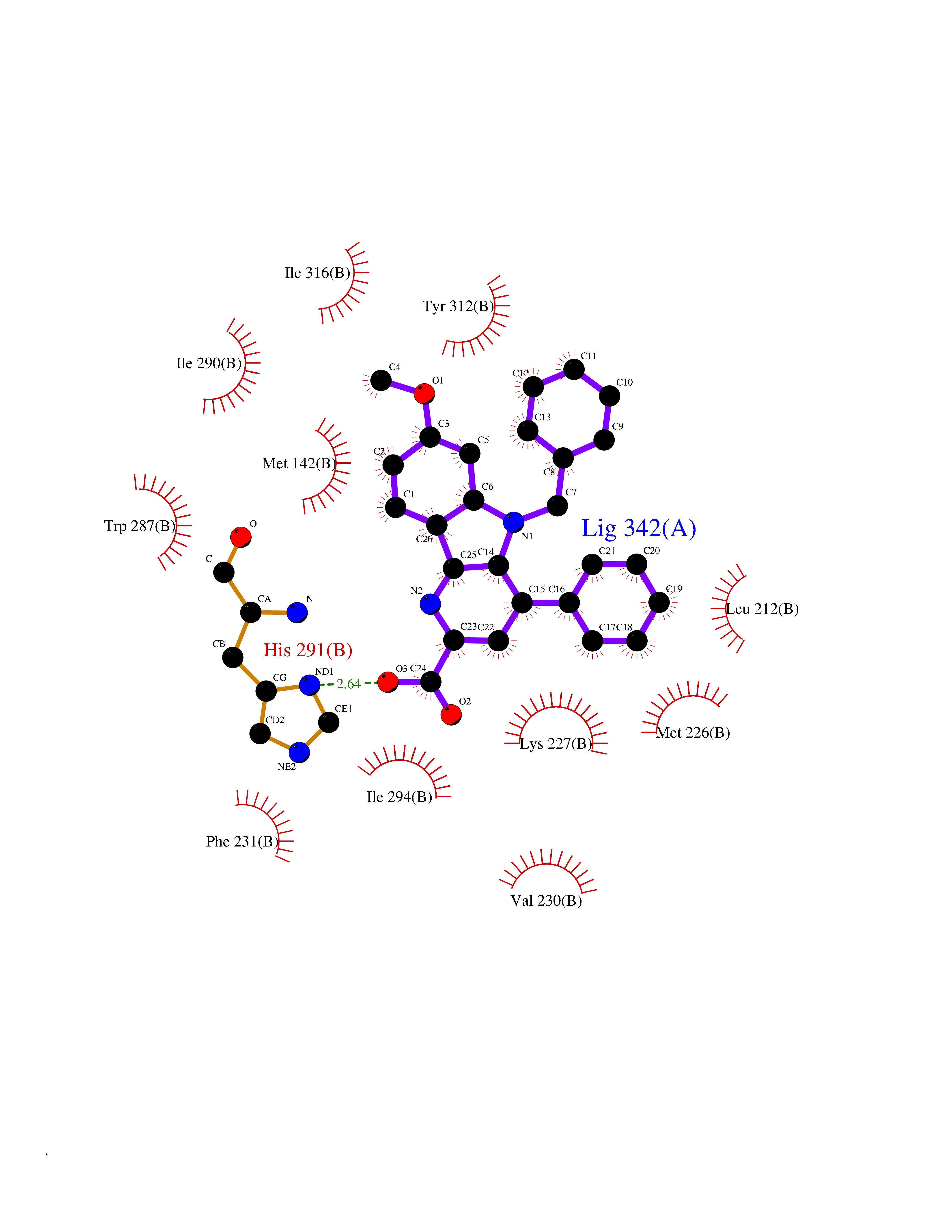 | Target general information Gen name HDC Organism Homo sapiens (Human) Uniprot ID TTD ID Synonyms Human histidine decarboxylase Protein family Group II decarboxylase family Biochemical class Carbon-carbon lyase Function Catalyzes the biosynthesis of histamine from histidine. Related diseases Corticosterone methyloxidase 1 deficiency (CMO-1 deficiency) [MIM:203400]: Autosomal recessive disorder of aldosterone biosynthesis. There are two biochemically different forms of selective aldosterone deficiency be termed corticosterone methyloxidase (CMO) deficiency type 1 and type 2. In CMO-1 deficiency, aldosterone is undetectable in plasma, while its immediate precursor, 18-hydroxycorticosterone, is low or normal. {ECO:0000269|PubMed:11238478, ECO:0000269|PubMed:8439335, ECO:0000269|PubMed:9177280}. The disease is caused by variants affecting the gene represented in this entry.; DISEASE: Corticosterone methyloxidase 2 deficiency (CMO-2 deficiency) [MIM:610600]: Autosomal recessive disorder of aldosterone biosynthesis. In CMO-2 deficiency, aldosterone can be low or normal, but at the expense of increased secretion of 18-hydroxycorticosterone. Consequently, patients have a greatly increased ratio of 18-hydroxycorticosterone to aldosterone and a low ratio of corticosterone to 18-hydroxycorticosterone in serum. {ECO:0000269|PubMed:12788848, ECO:0000269|PubMed:1346492, ECO:0000269|PubMed:1594605, ECO:0000269|PubMed:9625333, ECO:0000269|PubMed:9814506}. The disease is caused by variants affecting the gene represented in this entry. Drugs (DrugBank ID) DB00117; DB00114 Interacts with Q86UW9 EC number EC 4.1.1.22 Uniprot keywords 3D-structure; Alternative splicing; Catecholamine biosynthesis; Decarboxylase; Lyase; Proteomics identification; Pyridoxal phosphate; Reference proteome Protein physicochemical properties Chain ID A,B,C,D,E,F Molecular weight (Da) 107706 Length 956 Aromaticity 0.1 Instability index 55.17 Isoelectric point 6.23 Charge (pH=7) -9.63 3D Binding mode Sequence GSMEPEEYRERGREMVDYICQYLSTVRERRVTPDVQPGYLRAQLPESAPEDPDSWDSIFGDIERIIMPGVVHWQSPHMHAYYPALTSWPSLLGDMLADAINCLGFTWASSPACTELEMNVMDWLAKMLGLPEHFLHHHPSSQGGGVLQSTVSESTLIALLAARKNKILEMKTSEPDADESSLNARLVAYASDQAHSSVEKAGLISLVKMKFLPVDDNFSLRGEALQKAIEEDKQRGLVPVFVCATLGTTGVCAFDXLSELGPICAREGLWLHIDAAYAGTAFLCPEFRGFLKGIEYADSFTFNPSKWMMVHFDCTGFWVKDKYKLQQTFSVNPIYLRHANSGVATDFMHWQIPLSRRFRSVKLWFVIRSFGVKNLQAHVRHGTEMAKYFESLVRNDPSFEIPAKRHLGLVVFRLKGPNSLTENVLKEIAKAGRLFLIPATIQDKLIIRFTVTSQFTTRDDILRDWNLIRDAATLILSQGSMEPEEYRERGREMVDYICQYLSTVRERRVTPDVQPGYLRAQLPESAPEDPDSWDSIFGDIERIIMPGVVHWQSPHMHAYYPALTSWPSLLGDMLADAINCLGFTWASSPACTELEMNVMDWLAKMLGLPEHFLHHHPSSQGGGVLQSTVSESTLIALLAARKNKILEMKTSEPDADESSLNARLVAYASDQAHSSVEKAGLISLVKMKFLPVDDNFSLRGEALQKAIEEDKQRGLVPVFVCATLGTTGVCAFDXLSELGPICAREGLWLHIDAAYAGTAFLCPEFRGFLKGIEYADSFTFNPSKWMMVHFDCTGFWVKDKYKLQQTFSVNPIYLRHANSGVATDFMHWQIPLSRRFRSVKLWFVIRSFGVKNLQAHVRHGTEMAKYFESLVRNDPSFEIPAKRHLGLVVFRLKGPNSLTENVLKEIAKAGRLFLIPATIQDKLIIRFTVTSQFTTRDDILRDWNLIRDAATLILSQ Hydrogen bonds contact Hydrophobic contact | ||||