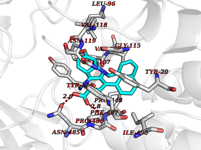 | Target general information Gen name pchF Organism Pseudomonas putida (Arthrobacter siderocapsulatus) Uniprot ID TTD ID NA Synonyms NA Protein family NA Biochemical class Oxidoreductase Function 4-cresol dehydrogenase (hydroxylating) activity.Flavin adenine dinucleotide binding.Oxidoreductase activity, acting on CH-OH group of donors. Related diseases Dihydrolipoamide dehydrogenase deficiency (DLDD) [MIM:246900]: An autosomal recessive metabolic disorder characterized biochemically by a combined deficiency of the branched-chain alpha-keto acid dehydrogenase complex (BCKDC), pyruvate dehydrogenase complex (PDC), and alpha-ketoglutarate dehydrogenase complex (KGDC). Clinically, affected individuals have lactic acidosis and neurologic deterioration due to sensitivity of the central nervous system to defects in oxidative metabolism. {ECO:0000269|PubMed:10448086, ECO:0000269|PubMed:11687750, ECO:0000269|PubMed:12925875, ECO:0000269|PubMed:15712224, ECO:0000269|PubMed:16442803, ECO:0000269|PubMed:16770810, ECO:0000269|PubMed:17404228, ECO:0000269|PubMed:20160912, ECO:0000269|PubMed:8506365, ECO:0000269|PubMed:8968745, ECO:0000269|PubMed:9540846, ECO:0000269|PubMed:9934985}. The disease is caused by variants affecting the gene represented in this entry. Drugs (DrugBank ID) DB03147 Interacts with NA EC number 1.17.9.1 Uniprot keywords 3D-structure; Direct protein sequencing; FAD; Flavoprotein; Oxidoreductase; Plasmid Protein physicochemical properties Chain ID A Molecular weight (Da) 57240.8 Length 515 Aromaticity 0.1 Instability index 30.94 Isoelectric point 6.06 Charge (pH=7) -4.42 3D Binding mode Sequence AVLPKGVTQGEFNKAVQKFRALLGDDNVLVESDQLVPYNKIMMPVENAAHAPSAAVTATTVEQVQGVVKICNEHKIPIWTISTGRNFGYGSAAPVQRGQVILDLKKMNKIIKIDPEMCYALVEPGVTFGQMYDYIQENNLPVMLSFSAPSAIAGPVGNTMDRGVGYTPYGEHFMMQCGMEVVLANGDVYRTGMGGVPGSNTWQIFKWGYGPTLDGMFTQANYGICTKMGFWLMPKPPVFKPFEVIFEDEADIVEIVDALRPLRMSNTIPNSVVIASTLWEAGSAHLTRAQYTTEPGHTPDSVIKQMQKDTGMGAWNLYAALYGTQEQVDVNWKIVTDVFKKLGKGRIVTQEEAGDTQPFKYRAQLMSGVPNLQEFGLYNWRGGGGSMWFAPVSEARGSECKKQAAMAKRVLHKYGLDYVAEFIVAPRDMHHVIDVLYDRTNPEETKRADACFNELLDEFEKEGYAVYRVNTRFQDRVAQSYGPVKRKLEHAIKRAVDPNNILAPGRSGIDLNNDF Hydrogen bonds contact Hydrophobic contact | ||||