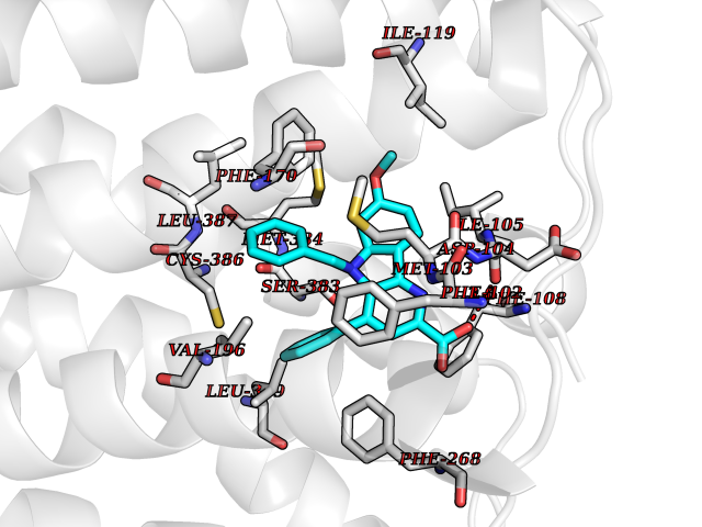 | Target general information Gen name MTNR1B Organism Homo sapiens (Human) Uniprot ID TTD ID Synonyms Mel1b receptor; Mel1b melatonin receptor; Mel-1B-R Protein family G-protein coupled receptor 1 family Biochemical class GPCR rhodopsin Function Likely to mediate the reproductive and circadian actions of melatonin. The activity of this receptor is mediated by pertussis toxin sensitive G proteins that inhibit adenylate cyclase activity. High affinity receptor for melatonin. Related diseases Insulin-like growth factor 1 resistance (IGF1RES) [MIM:270450]: A disorder characterized by intrauterine growth retardation, poor postnatal growth and increased plasma IGF1 levels. {ECO:0000269|PubMed:14657428, ECO:0000269|PubMed:15928254, ECO:0000269|PubMed:25040157}. The disease is caused by variants affecting the gene represented in this entry. Drugs (DrugBank ID) DB06594; DB01065; DB00980; DB02709; DB09071; DB15133 Interacts with P28335; P48039; O76081; Q14669 EC number NA Uniprot keywords 3D-structure; Cell membrane; Disulfide bond; G-protein coupled receptor; Glycoprotein; Membrane; Receptor; Reference proteome; Transducer; Transmembrane; Transmembrane helix Protein physicochemical properties Chain ID A Molecular weight (Da) 50184.9 Length 448 Aromaticity 0.11 Instability index 37.2 Isoelectric point 5.72 Charge (pH=7) -5.68 3D Binding mode Sequence ADLEDNWETLNDNLKVIEKADNAAQVKDALTKMRAAALDAQKATPPKLEDKSPDSPEMKDFRHGFDILVGQIDDALKLANEGKVKEAQAAAEQLKTTRNAYIQKYLGDGARPSWVAPALSAVLIVTTAVDVVGNLLVILSVLRNRKLRNAGNLFLVSLALANLVVAFYPYPLILVAIFYDGWAFGEEHCKASAFVMGLSVIGSVWNITAIAIDRYLYICHSMAYHRIYRRWHTPLHICLIWLLTVVALLPNFFVGSLEYDPRIYSCTFIQTASTQYTAAVVVIHFLLPIAVVSFCYLRIWVLVLQARMKKYTCTVCGYIYNPEDGDPDNGVNPGTDFKDIPDDWVCPLCGVGKDQFEEVECLKPSDLRSFLTMFVVFVIFAICFAPLNCIGLAVAINPQEMAPQIPEGLFVTSYLLAYFNSCLNPIVYGLLDQNFRREYKRILLALWN Hydrogen bonds contact Hydrophobic contact | ||||