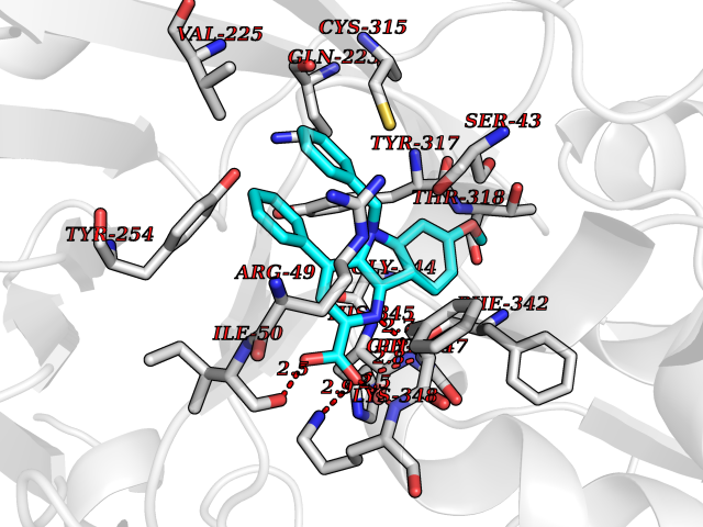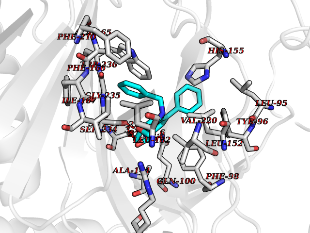 | Target general information Gen name AKR1C1 Organism Homo sapiens (Human) Uniprot ID TTD ID NA Synonyms DDH1;DDH Protein family Aldo/keto reductase family Biochemical class Oxidoreductase Function 17-alpha,20-alpha-dihydroxypregn-4-en-3-one dehydrogenase activity.Alditol:NADP+ 1-oxidoreductase activity.Aldo-keto reductase (NADP) activity.Androsterone dehydrogenase (B-specific) activity.Bile acid binding.Carboxylic acid binding.Indanol dehydrogenase activity.Ketosteroid monooxygenase activity.Oxidoreductase activity, acting on NAD(P)H, quinone or similar compound as acceptor.Phenanthrene 9,10-monooxygenase activity.Trans-1,2-dihydrobenzene-1,2-diol dehydrogenase activity. Related diseases Fibrodysplasia ossificans progressiva (FOP) [MIM:135100]: A rare autosomal dominant connective tissue disorder resulting in skeletal malformations and progressive extraskeletal ossification. Heterotopic ossification begins in childhood and can be induced by trauma or may occur without warning. Bone formation is episodic and progressive, leading to a debilitating ankylosis of all major joints of the axial and appendicular skeleton, rendering movement impossible. {ECO:0000269|PubMed:16642017, ECO:0000269|PubMed:19085907, ECO:0000269|PubMed:19330033}. The disease is caused by variants affecting the gene represented in this entry. Drugs (DrugBank ID) DB04674; DB00945; DB07768; DB01039; DB07931; DB06077; DB00959; DB00461; DB00157; DB03467; DB03461; DB00776; DB12612; DB00936 Interacts with P51857; P26045; Q7Z699 EC number 1.1.1.-; 1.1.1.112; 1.1.1.149; 1.1.1.209; 1.1.1.210; 1.1.1.357; 1.1.1.51; 1.1.1.53; 1.1.1.62; 1.3.1.20 Uniprot keywords 3D-structure; Cytoplasm; Direct protein sequencing; Lipid metabolism; NADP; Oxidoreductase; Proteomics identification; Reference proteome Protein physicochemical properties Chain ID A Molecular weight (Da) 36784.9 Length 323 Aromaticity 0.09 Instability index 42.07 Isoelectric point 8.06 Charge (pH=7) 2.42 3D Binding mode Sequence QDSKYQCVKLNDGHFMPVLGFGTYAPAEVPKSKALEATKLAIEAGFRHIDSAHLYNNEEQVGLAIRSKIADGSVKREDIFYTSKLWCNSHRPELVRPALERSLKNLQLDYVDLYLIHFPVSVKPGEEVIPKDENGKILFDTVDLCATWEAVEKCKDAGLAKSIGVSNFNRRQLEMILNKPGLKYKPVCNQVECHPYFNQRKLLDFCKSKDIVLVAYSALGSHREEPWVDPNSPVLLEDPVLCALAKKHKRTPALIALRYQLQRGVVVLAKSYNEQRIRQNVQVFEFQLTSEEMKAIDGLNRNVRYLTLDIFAGPPNYPFSDEY Hydrogen bonds contact Hydrophobic contact | ||||