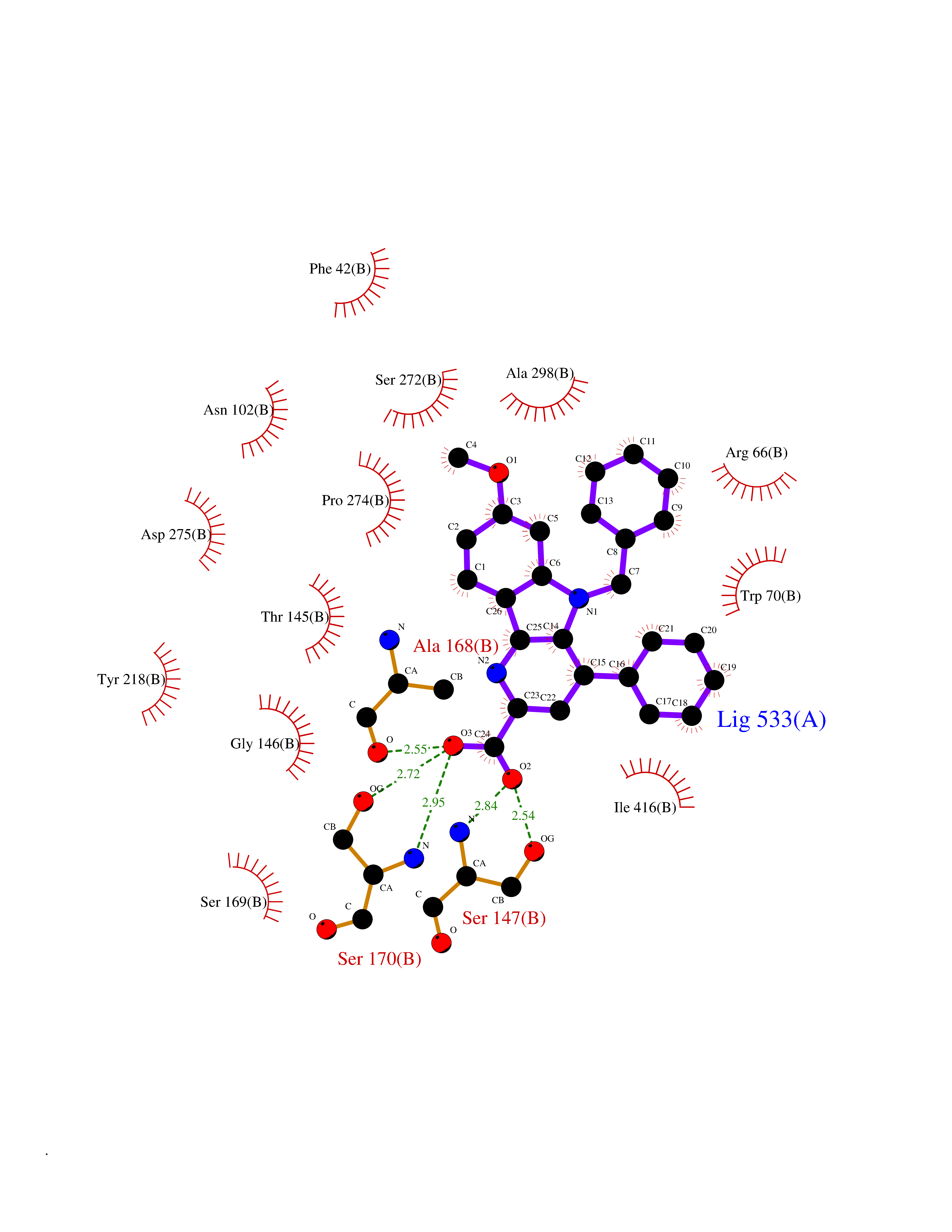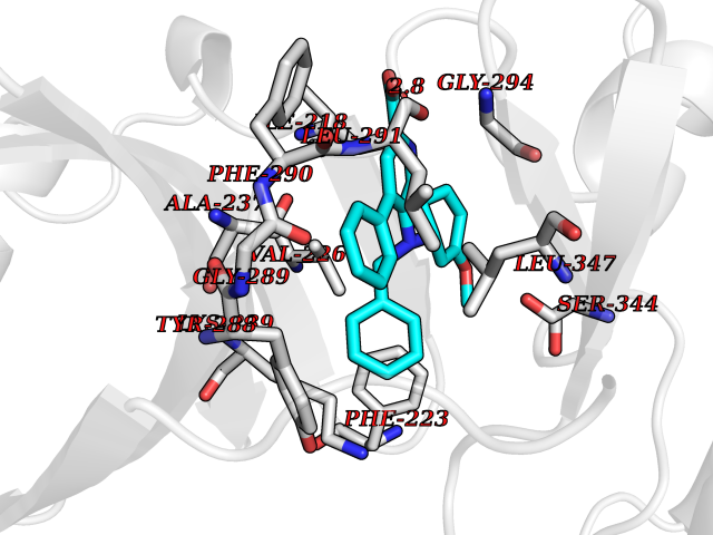 | Target general information Gen name AKR1C3 Organism Homo sapiens (Human) Uniprot ID TTD ID NA Synonyms PGFS;DDH1;HSD17B5;KIAA0119 Protein family Aldo/keto reductase family Biochemical class Oxidoreductase Function 15-hydroxyprostaglandin-D dehydrogenase (NADP+) activity.Alditol:NADP+ 1-oxidoreductase activity.Aldo-keto reductase (NADP) activity.Androsterone dehydrogenase activity.Delta4-3-oxosteroid 5beta-reductase activity.Dihydrotestosterone 17-beta-dehydrogenase activity.Geranylgeranyl reductase activity.Indanol dehydrogenase activity.Ketoreductase activity.Ketosteroid monooxygenase activity.NADP-retinol dehydrogenase activity.Oxidoreductase activity, acting on NAD(P)H, quinone or similar compound as acceptor.Phenanthrene 9,10-monooxygenase activity.Prostaglandin D2 11-ketoreductase activity.Prostaglandin-F synthase activity.Prostaglandin H2 endoperoxidase reductase activity.Retinal dehydrogenase activity.Retinol dehydrogenase activity.Testosterone 17-beta-dehydrogenase (NADP+) activity.Testosterone dehydrogenase (NAD+) activity.Trans-1,2-dihydrobenzene-1,2-diol dehydrogenase activity. Related diseases Neurodevelopmental disorder with language impairment and behavioral abnormalities (NEDLIB) [MIM:618917]: A neurodevelopmental disorder characterized by global developmental delay, impaired intellectual development, poor or absent speech, and behavioral abnormalities, such as autism spectrum disorder, repetitive behaviors, and hyperactivity. Some patients develop seizures and manifest developmental regression. {ECO:0000269|PubMed:31300657}. The disease is caused by variants affecting the gene represented in this entry. The genetic variation producing the missense variant p.Q607E, associated with NEDLIB, is predicted to deeply affect RNA editing. In a physiological context, the adenosine (A) residue of the original glutamine (Q) codon CAG is post-transcriptionaly edited to inosine (I) by ADAR2, leading to a codon recognized by the ribosome as arginine (R). The glutamate (E) codon GAG, resulting from the genetic variation, is predicted to be edited 90% less than the normal CAG codon. If edited, the codon GIG would be translated as p.Q607G. {ECO:0000305|PubMed:31300657}. Drugs (DrugBank ID) DB07700; DB01561; DB01536; DB00997; DB01039; DB02266; DB13751; DB00328; DB06077; DB00959; DB00157; DB03461; DB09074; DB00776; DB02056; DB01698; DB02901 Interacts with P17516 EC number 1.1.1.-; 1.1.1.188; 1.1.1.210; 1.1.1.239; 1.1.1.357; 1.1.1.53; 1.1.1.62; 1.1.1.64 Uniprot keywords 3D-structure; Alternative splicing; Cytoplasm; Lipid metabolism; NAD; NADP; Oxidoreductase; Proteomics identification; Reference proteome Protein physicochemical properties Chain ID A Molecular weight (Da) 35846.8 Length 315 Aromaticity 0.09 Instability index 47.59 Isoelectric point 8.54 Charge (pH=7) 4.51 3D Binding mode Sequence QCVKLNDGHFMPVLGFGTYAPPEVPRSKALEVTKLAIEAGFRHIDSAHLYNNEEQVGLAIRSKIADGSVKREDIFYTSKLWSTFHRPELVRPALENSLKKAQLDYVDLYLIHSPMSLKPGEELSPTDENGKVIFDIVDLCTTWEAMEKCKDAGLAKSIGVSNFNRRQLEMILNKPGLKYKPVCNQVECHPYFNRSKLLDFCKSKDIVLVAYSALGSQRDKRWVDPNSPVLLEDPVLCALAKKHKRTPALIALRYQLQRGVVVLAKSYNEQRIRQNVQVFEFQLTAEDMKAIDGLDRNLHYFNSDSFASHPNYPYS Hydrogen bonds contact Hydrophobic contact | ||||