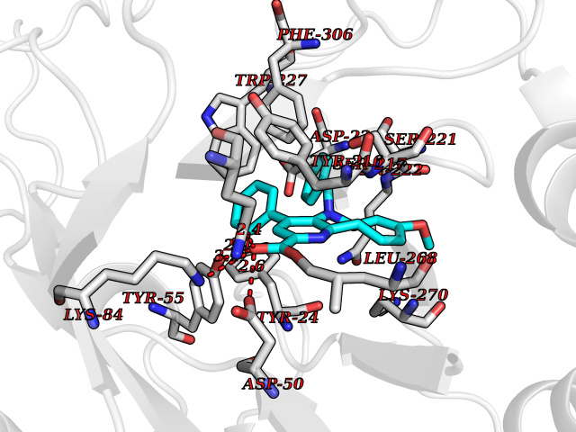 | Target general information Gen name choA Organism Streptomyces sp. (strain SA-COO) Uniprot ID TTD ID NA Synonyms NA Protein family GMC oxidoreductase family Biochemical class Oxidoreductase Function Cholesterol oxidase activity.Flavin adenine dinucleotide binding.Steroid delta-isomerase activity. Related diseases Bothnia retinal dystrophy (BRD) [MIM:607475]: A type of retinitis punctata albescens. Affected individuals show night blindness from early childhood with features consistent with retinitis punctata albescens and macular degeneration. {ECO:0000269|PubMed:10102298}. The disease is caused by variants affecting the gene represented in this entry.; DISEASE: Rod-cone dystrophy Newfoundland (NFRCD) [MIM:607476]: A rod-cone dystrophy reminiscent of retinitis punctata albescens but with a substantially lower age at onset and more-rapid and distinctive progression. Rod-cone dystrophies results from initial loss of rod photoreceptors, later followed by cone photoreceptors loss. {ECO:0000269|PubMed:11868161}. The disease is caused by variants affecting the gene represented in this entry.; DISEASE: Retinitis punctata albescens (RPA) [MIM:136880]: A form of fleck retina disease characterized by aggregation of white flecks posteriorly in the retina, causing night blindness and delayed dark adaptation. It differs from fundus albipunctatus in being progressive and evolving to generalized atrophy of the retina. {ECO:0000269|PubMed:10102299, ECO:0000269|PubMed:11453974, ECO:0000269|PubMed:9326942}. The disease is caused by variants affecting the gene represented in this entry. Drugs (DrugBank ID) DB03147; DB02332 Interacts with NA EC number 1.1.3.6; 5.3.3.1 Uniprot keywords 3D-structure; Cholesterol metabolism; Direct protein sequencing; FAD; Flavoprotein; Isomerase; Lipid metabolism; Oxidoreductase; Secreted; Signal; Steroid metabolism; Sterol metabolism Protein physicochemical properties Chain ID A Molecular weight (Da) 54367.8 Length 498 Aromaticity 0.1 Instability index 30.62 Isoelectric point 6.69 Charge (pH=7) -0.71 3D Binding mode Sequence GYVPAVVIGTGYGAAVSALRLGEAGVQTLMLEMGQLWNQPGPDGNIFCGMLNPDKRSSWFKNRTEAPLGSFLWLDVVNRNIDPYAGVLDRVNYDQMSVYVGRGVGGGSLVNGGMAVEPKRSYFEEILPRVDSSEMYDRYFPRANSMLRVNHIDTKWFEDTEWYKFARVSREQAGKAGLGTVFVPNVYDFGYMQREAAGEVPKSALATEVIYGNNHGKQSLDKTYLAAALGTGKVTIQTLHQVKTIRQTKDGGYALTVEQKDTDGKLLATKEISCRYLFLGAGSLGSTELLVRARDTGTLPNLNSEVGAGWGPNGNIMTARANHMWNPTGAHQSSIPALGIDAWDNSDSSVFAEIAPMPAGLETWVSLYLAITKNPQRGTFVYDAATDRAKLNWTRDQNAPAVNAAKALFDRINKANGTIYRYDLFGTQLKAFADDFCYHPLGGCVLGKATDDYGRVAGYKNLYVTDGSLIPGSVGVNPFVTITALAERNVERIIKQDV Hydrogen bonds contact Hydrophobic contact | ||||