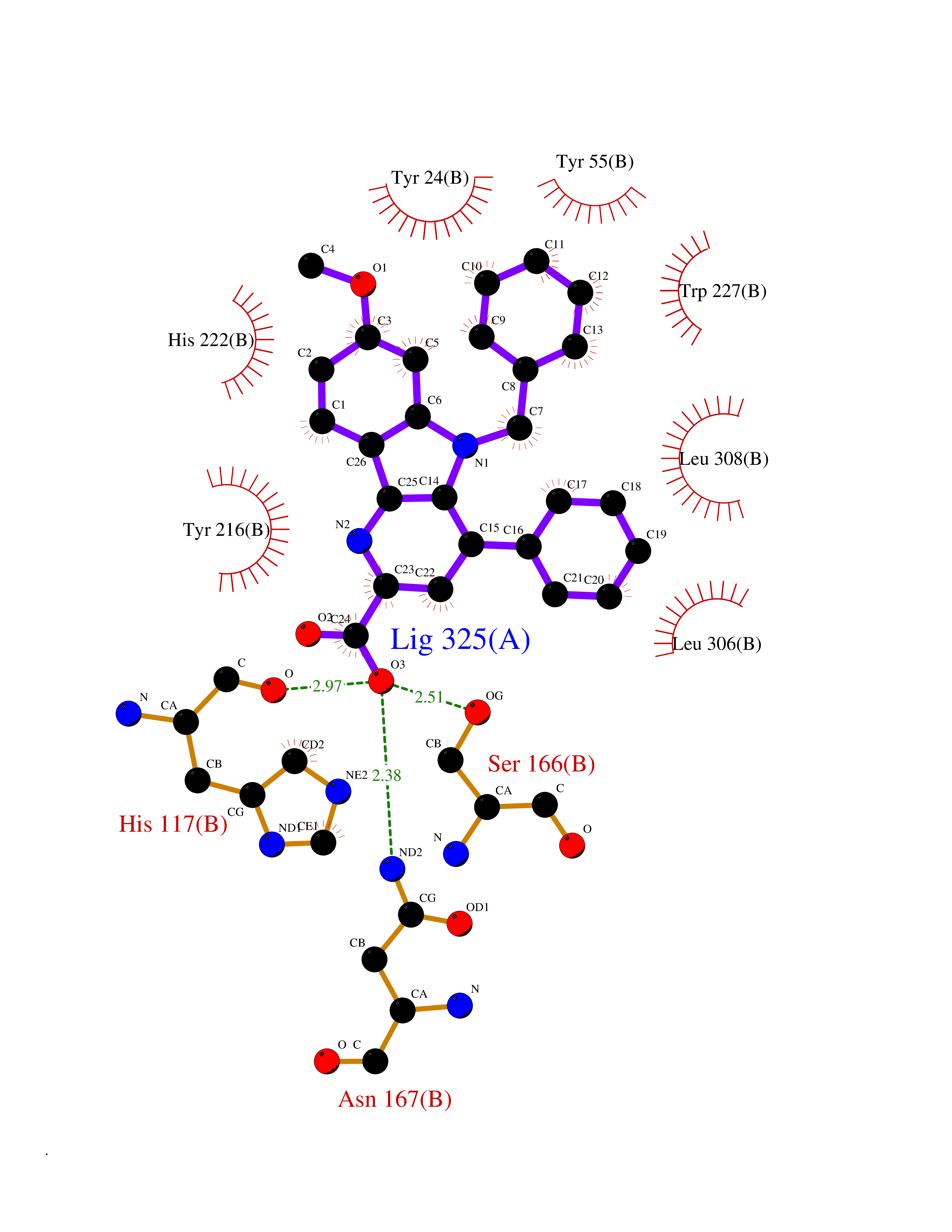 | Target general information Gen name HDC Organism Homo sapiens (Human) Uniprot ID TTD ID Synonyms Human histidine decarboxylase Protein family Group II decarboxylase family Biochemical class Carbon-carbon lyase Function Catalyzes the biosynthesis of histamine from histidine. Related diseases Corticosterone methyloxidase 1 deficiency (CMO-1 deficiency) [MIM:203400]: Autosomal recessive disorder of aldosterone biosynthesis. There are two biochemically different forms of selective aldosterone deficiency be termed corticosterone methyloxidase (CMO) deficiency type 1 and type 2. In CMO-1 deficiency, aldosterone is undetectable in plasma, while its immediate precursor, 18-hydroxycorticosterone, is low or normal. {ECO:0000269|PubMed:11238478, ECO:0000269|PubMed:8439335, ECO:0000269|PubMed:9177280}. The disease is caused by variants affecting the gene represented in this entry.; DISEASE: Corticosterone methyloxidase 2 deficiency (CMO-2 deficiency) [MIM:610600]: Autosomal recessive disorder of aldosterone biosynthesis. In CMO-2 deficiency, aldosterone can be low or normal, but at the expense of increased secretion of 18-hydroxycorticosterone. Consequently, patients have a greatly increased ratio of 18-hydroxycorticosterone to aldosterone and a low ratio of corticosterone to 18-hydroxycorticosterone in serum. {ECO:0000269|PubMed:12788848, ECO:0000269|PubMed:1346492, ECO:0000269|PubMed:1594605, ECO:0000269|PubMed:9625333, ECO:0000269|PubMed:9814506}. The disease is caused by variants affecting the gene represented in this entry. Drugs (DrugBank ID) DB00117; DB00114 Interacts with Q86UW9 EC number EC 4.1.1.22 Uniprot keywords 3D-structure; Alternative splicing; Catecholamine biosynthesis; Decarboxylase; Lyase; Proteomics identification; Pyridoxal phosphate; Reference proteome Protein physicochemical properties Chain ID A,B,C,D,E,F Molecular weight (Da) 107706 Length 956 Aromaticity 0.1 Instability index 55.17 Isoelectric point 6.23 Charge (pH=7) -9.63 3D Binding mode Sequence GSMEPEEYRERGREMVDYICQYLSTVRERRVTPDVQPGYLRAQLPESAPEDPDSWDSIFGDIERIIMPGVVHWQSPHMHAYYPALTSWPSLLGDMLADAINCLGFTWASSPACTELEMNVMDWLAKMLGLPEHFLHHHPSSQGGGVLQSTVSESTLIALLAARKNKILEMKTSEPDADESSLNARLVAYASDQAHSSVEKAGLISLVKMKFLPVDDNFSLRGEALQKAIEEDKQRGLVPVFVCATLGTTGVCAFDXLSELGPICAREGLWLHIDAAYAGTAFLCPEFRGFLKGIEYADSFTFNPSKWMMVHFDCTGFWVKDKYKLQQTFSVNPIYLRHANSGVATDFMHWQIPLSRRFRSVKLWFVIRSFGVKNLQAHVRHGTEMAKYFESLVRNDPSFEIPAKRHLGLVVFRLKGPNSLTENVLKEIAKAGRLFLIPATIQDKLIIRFTVTSQFTTRDDILRDWNLIRDAATLILSQGSMEPEEYRERGREMVDYICQYLSTVRERRVTPDVQPGYLRAQLPESAPEDPDSWDSIFGDIERIIMPGVVHWQSPHMHAYYPALTSWPSLLGDMLADAINCLGFTWASSPACTELEMNVMDWLAKMLGLPEHFLHHHPSSQGGGVLQSTVSESTLIALLAARKNKILEMKTSEPDADESSLNARLVAYASDQAHSSVEKAGLISLVKMKFLPVDDNFSLRGEALQKAIEEDKQRGLVPVFVCATLGTTGVCAFDXLSELGPICAREGLWLHIDAAYAGTAFLCPEFRGFLKGIEYADSFTFNPSKWMMVHFDCTGFWVKDKYKLQQTFSVNPIYLRHANSGVATDFMHWQIPLSRRFRSVKLWFVIRSFGVKNLQAHVRHGTEMAKYFESLVRNDPSFEIPAKRHLGLVVFRLKGPNSLTENVLKEIAKAGRLFLIPATIQDKLIIRFTVTSQFTTRDDILRDWNLIRDAATLILSQ Hydrogen bonds contact Hydrophobic contact | ||||