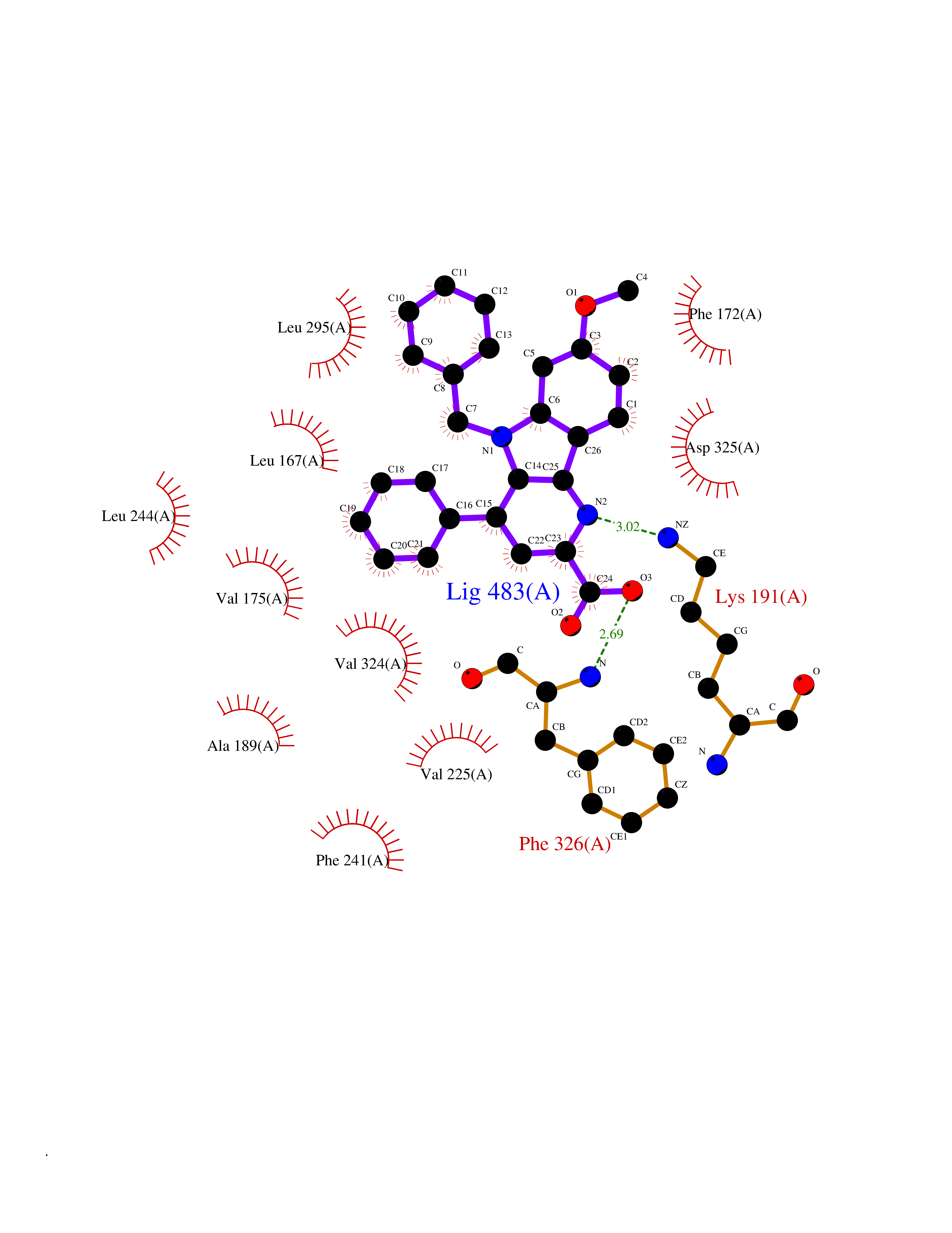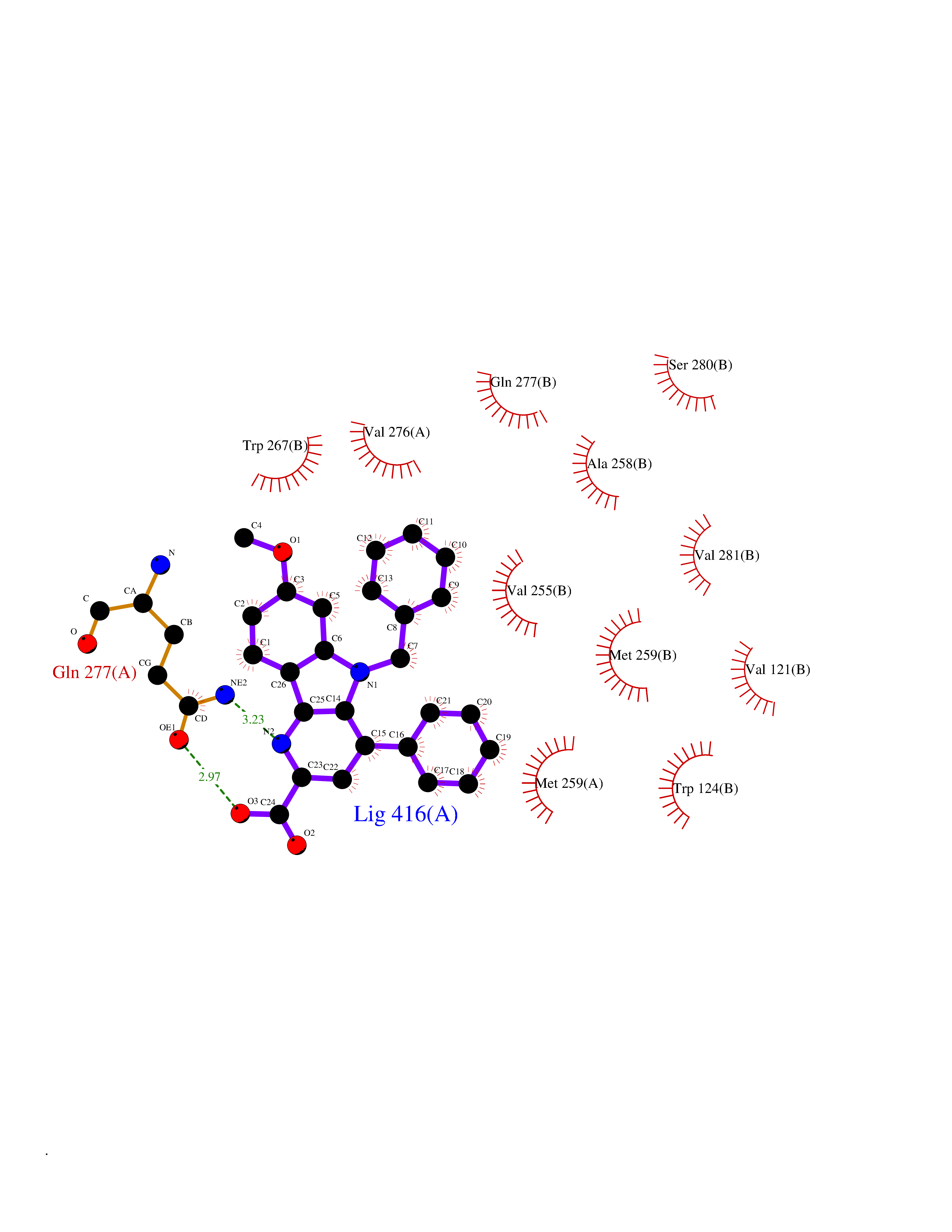 | Target general information Gen name OGFOD1 Organism Homo sapiens (Human) Uniprot ID TTD ID NA Synonyms TPA1;KIAA1612 Protein family TPA1 family Biochemical class Oxidoreductase / oxidoreductase inhibitor Function Iron ion binding.L-ascorbic acid binding.Peptidyl-proline 3-dioxygenase activity.Peptidyl-proline dioxygenase activity. Related diseases Long QT syndrome 10 (LQT10) [MIM:611819]: A heart disorder characterized by a prolonged QT interval on the ECG and polymorphic ventricular arrhythmias. They cause syncope and sudden death in response to exercise or emotional stress, and can present with a sentinel event of sudden cardiac death in infancy. {ECO:0000269|PubMed:17592081}. The disease is caused by variants affecting the gene represented in this entry.; DISEASE: Atrial fibrillation, familial, 17 (ATFB17) [MIM:611819]: A familial form of atrial fibrillation, a common sustained cardiac rhythm disturbance. Atrial fibrillation is characterized by disorganized atrial electrical activity and ineffective atrial contraction promoting blood stasis in the atria and reduces ventricular filling. It can result in palpitations, syncope, thromboembolic stroke, and congestive heart failure. {ECO:0000269|PubMed:23604097}. The disease is caused by variants affecting the gene represented in this entry. Drugs (DrugBank ID) DB00126 Interacts with Q9BSK4; P62266 EC number 1.14.11.- Uniprot keywords 3D-structure; Alternative splicing; Cytoplasm; Dioxygenase; Iron; Metal-binding; Nucleus; Oxidoreductase; Proteomics identification; Reference proteome; Vitamin C Protein physicochemical properties Chain ID A,B,C,D Molecular weight (Da) 54223.9 Length 461 Aromaticity 0.13 Instability index 56.42 Isoelectric point 5.23 Charge (pH=7) -23.5 3D Binding mode Sequence AEFSDAVTEETLKKQVAEAWSRRTPFSHEVIVMDMDPFLHCVIPNFIQSQDFLEGLQKELMNLDFHEKYNDLYKFQQSDDLKKRREPHISTLRKILFEDFRSWLSDISKIDLESTIDMSCAKYEFTDALLCHDDELEGRRIAFILYLVPPWDRSMGGTLDLYSIDEHFQPKQIVKSLIPSWNKLVFFEVSPVSFHQVSEVLSEEKSRLSISGWFHGPSLTRPPNYFEPPIPRSPHIPQDHEILYDWINPTYLDMDYQVQIQEEFEESSEILLKEFLKPEKFTKVCEALEHGHVEWSSRGPPNKRFYEKAEESKLPEILKECMKLFRSEALFLLLSNFTGLKLHFLAPSSSVPMCQGELRHWKTGHYTLIHDHSKAEFALDLILYCGCEGWEPEYGGFTSYIAKGEDEELLTVNPESNSLALVYRDRETLKFVKHINHRSLEQKKTFPNRTGFWDFSFIYYE Hydrogen bonds contact Hydrophobic contact | ||||