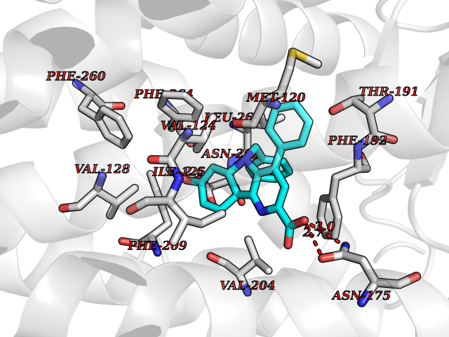 | Target general information Gen name soxA Organism Bacillus sp. (strain B-0618) Uniprot ID TTD ID NA Synonyms sox Protein family MSOX/MTOX family, MSOX subfamily Biochemical class Oxidoreductase Function Sarcosine oxidase activity. Related diseases Defects in PPARG can lead to type 2 insulin-resistant diabetes and hyptertension. PPARG mutations may be associated with colon cancer. {ECO:0000269|PubMed:10394368}.; DISEASE: Obesity (OBESITY) [MIM:601665]: A condition characterized by an increase of body weight beyond the limitation of skeletal and physical requirements, as the result of excessive accumulation of body fat. {ECO:0000269|PubMed:9753710}. Disease susceptibility may be associated with variants affecting the gene represented in this entry.; DISEASE: Lipodystrophy, familial partial, 3 (FPLD3) [MIM:604367]: A form of lipodystrophy characterized by marked loss of subcutaneous fat from the extremities. Facial adipose tissue may be increased, decreased or normal. Affected individuals show an increased preponderance of insulin resistance, diabetes mellitus and dyslipidemia. {ECO:0000269|PubMed:11788685, ECO:0000269|PubMed:12453919}. The disease is caused by variants affecting the gene represented in this entry.; DISEASE: Glioma 1 (GLM1) [MIM:137800]: Gliomas are benign or malignant central nervous system neoplasms derived from glial cells. They comprise astrocytomas and glioblastoma multiforme that are derived from astrocytes, oligodendrogliomas derived from oligodendrocytes and ependymomas derived from ependymocytes. {ECO:0000269|PubMed:10851250}. Disease susceptibility may be associated with variants affecting the gene represented in this entry. Polymorphic PPARG alleles have been found to be significantly over-represented among a cohort of American patients with sporadic glioblastoma multiforme suggesting a possible contribution to disease susceptibility. Drugs (DrugBank ID) DB03098; DB01918; DB03517; DB03147; DB03366; DB02083; DB02543 Interacts with NA EC number 1.5.3.1 Uniprot keywords 3D-structure; Cytoplasm; Direct protein sequencing; FAD; Flavoprotein; Oxidoreductase Protein physicochemical properties Chain ID A,B Molecular weight (Da) 42606.4 Length 385 Aromaticity 0.1 Instability index 26.97 Isoelectric point 5.27 Charge (pH=7) -17.18 3D Binding mode Sequence STHFDVIVVGAGSMGMAAGYQLAKQGVKTLLVDAFDPPHTNGSHHGDTRIIRHAYGEGREYVPLALRSQELWYELEKETHHKIFTKTGVLVFGPKGESAFVAETMEAAKEHSLTVDLLEGDEINKRWPGITVPENYNAIFEPNSGVLFSENCIRAYRELAEARGAKVLTHTRVEDFDISPDSVKIETANGSYTADKLIVSMGAWNSKLLSKLNLDIPLQPYRQVVGFFESDESKYSNDIDFPGFMVEVPNGIYYGFPSFGGCGLKLGYHTFGQKIDPDTINREFGVYPEDESNLRAFLEEYMPGANGELKRGAVCMYTKTLDEHFIIDLHPEHSNVVIAAGFSGHGFKFSSGVGEVLSQLALTGKTEHDISIFSINRPALKESLQ Hydrogen bonds contact Hydrophobic contact | ||||