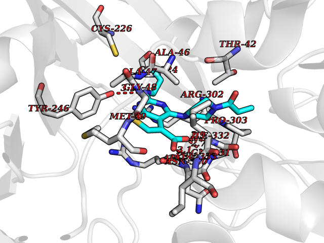 | Target general information Gen name soxA Organism Bacillus sp. (strain B-0618) Uniprot ID TTD ID NA Synonyms sox Protein family MSOX/MTOX family, MSOX subfamily Biochemical class Oxidoreductase Function Sarcosine oxidase activity. Related diseases Defects in PPARG can lead to type 2 insulin-resistant diabetes and hyptertension. PPARG mutations may be associated with colon cancer. {ECO:0000269|PubMed:10394368}.; DISEASE: Obesity (OBESITY) [MIM:601665]: A condition characterized by an increase of body weight beyond the limitation of skeletal and physical requirements, as the result of excessive accumulation of body fat. {ECO:0000269|PubMed:9753710}. Disease susceptibility may be associated with variants affecting the gene represented in this entry.; DISEASE: Lipodystrophy, familial partial, 3 (FPLD3) [MIM:604367]: A form of lipodystrophy characterized by marked loss of subcutaneous fat from the extremities. Facial adipose tissue may be increased, decreased or normal. Affected individuals show an increased preponderance of insulin resistance, diabetes mellitus and dyslipidemia. {ECO:0000269|PubMed:11788685, ECO:0000269|PubMed:12453919}. The disease is caused by variants affecting the gene represented in this entry.; DISEASE: Glioma 1 (GLM1) [MIM:137800]: Gliomas are benign or malignant central nervous system neoplasms derived from glial cells. They comprise astrocytomas and glioblastoma multiforme that are derived from astrocytes, oligodendrogliomas derived from oligodendrocytes and ependymomas derived from ependymocytes. {ECO:0000269|PubMed:10851250}. Disease susceptibility may be associated with variants affecting the gene represented in this entry. Polymorphic PPARG alleles have been found to be significantly over-represented among a cohort of American patients with sporadic glioblastoma multiforme suggesting a possible contribution to disease susceptibility. Drugs (DrugBank ID) DB03098; DB01918; DB03517; DB03147; DB03366; DB02083; DB02543 Interacts with NA EC number 1.5.3.1 Uniprot keywords 3D-structure; Cytoplasm; Direct protein sequencing; FAD; Flavoprotein; Oxidoreductase Protein physicochemical properties Chain ID A,B Molecular weight (Da) 42606.4 Length 385 Aromaticity 0.1 Instability index 26.97 Isoelectric point 5.27 Charge (pH=7) -17.18 3D Binding mode Sequence STHFDVIVVGAGSMGMAAGYQLAKQGVKTLLVDAFDPPHTNGSHHGDTRIIRHAYGEGREYVPLALRSQELWYELEKETHHKIFTKTGVLVFGPKGESAFVAETMEAAKEHSLTVDLLEGDEINKRWPGITVPENYNAIFEPNSGVLFSENCIRAYRELAEARGAKVLTHTRVEDFDISPDSVKIETANGSYTADKLIVSMGAWNSKLLSKLNLDIPLQPYRQVVGFFESDESKYSNDIDFPGFMVEVPNGIYYGFPSFGGCGLKLGYHTFGQKIDPDTINREFGVYPEDESNLRAFLEEYMPGANGELKRGAVCMYTKTLDEHFIIDLHPEHSNVVIAAGFSGHGFKFSSGVGEVLSQLALTGKTEHDISIFSINRPALKESLQ Hydrogen bonds contact Hydrophobic contact | ||||