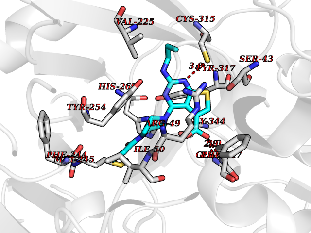 | Target general information Gen name TRBC1 Organism Homo sapiens (Human) Uniprot ID TTD ID Synonyms TCRBC1; BV05S1J2.2 Protein family NA Biochemical class NA Function Alpha-beta T cell receptors are antigen specific receptors which are essential to the immune response and are present on the cell surface of T lymphocytes. Recognize peptide-major histocompatibility (MH) (pMH) complexes that are displayed by antigen presenting cells (APC), a prerequisite for efficient T cell adaptive immunity against pathogens. Binding of alpha-beta TR to pMH complex initiates TR-CD3 clustering on the cell surface and intracellular activation of LCK that phosphorylates the ITAM motifs of CD3G, CD3D, CD3E and CD247 enabling the recruitment of ZAP70. In turn, ZAP70 phosphorylates LAT, which recruits numerous signaling molecules to form the LAT signalosome. The LAT signalosome propagates signal branching to three major signaling pathways, the calcium, the mitogen-activated protein kinase (MAPK) kinase and the nuclear factor NF-kappa-B (NF-kB) pathways, leading to the mobilization of transcription factors that are critical for gene expression and essential for T cell growth and differentiation. The T cell repertoire is generated in the thymus, by V-(D)-J rearrangement. This repertoire is then shaped by intrathymic selection events to generate a peripheral T cell pool of self-MH restricted, non-autoaggressive T cells. Post-thymic interaction of alpha-beta TR with the pMH complexes shapes TR structural and functional avidity. Constant region of T cell receptor (TR) alpha chain. Related diseases Immunodeficiency 57 with autoinflammation (IMD57) [MIM:618108]: An autosomal recessive primary immunodeficiency characterized by lymphopenia and recurrent viral, bacterial, and fungal infections. Patients exhibit early-onset inflammatory bowel disease involving the upper and lower gastrointestinal tract, and develop progressive polyarthritis. {ECO:0000269|PubMed:30026316}. The disease is caused by variants affecting the gene represented in this entry. RIPK1-deficient immune cells from IMD57 patients have impaired proinflammatory signaling leading to dysregulated cytokine secretion and are prone to necroptosis. {ECO:0000269|PubMed:30026316}.; DISEASE: Autoinflammation with episodic fever and lymphadenopathy (AIEFL) [MIM:618852]: An autosomal dominant immunologic disorder characterized by early onset of recurrent episodes of unexplained fever, lymphadenopathy, hepatosplenomegaly, and increased levels of inflammatory cytokines and chemokines in patient serum. {ECO:0000269|PubMed:31827280, ECO:0000269|PubMed:31827281}. The disease is caused by variants affecting the gene represented in this entry. Drugs (DrugBank ID) DB02740 Interacts with NA EC number NA Uniprot keywords 3D-structure; Adaptive immunity; Cell membrane; Disulfide bond; Glycoprotein; Immunity; Immunoglobulin domain; Membrane; Proteomics identification; Receptor; Reference proteome; T cell receptor; Transmembrane; Transmembrane helix Protein physicochemical properties Chain ID C,B,A Molecular weight (Da) 84668.2 Length 736 Aromaticity 0.13 Instability index 39.96 Isoelectric point 5.8 Charge (pH=7) -14.36 3D Binding mode Sequence IQRPPKIQVYSRHPPNYLNCYVYGFHPPQIEIDLLKIKSEQSDLSFSKDWSFYLLSHATPNSKDQYSCRVKHVTLEQPRIVKWDRTHSLRYFRLGISEIPEFISAGYVDSHPITMYNSVSQLKEPRALWMEENLAPDHWERYTQLLRGWQQMFKVELKQLQHHYNHSGFHTYQRMIGCELLEDGSITGFLQYAYDGQDFLIFNKDTLSWMAMDNVADIIRRVWEANQHELLYQKNWLEEECIAWLKRFLEYGKDALQRTEPPKVRVNHKTTLYCRAYGFYPPEISINWMKNGEEIFQDTDYGGILPSGDGTYQTWVSVELGDIYSCHVEHGGVHMVLQGFQQNIDQPTEMTATEGAIVQINCTYQTSGFNGLFWYQQHAGEAPTFLSYNVLDGLEEKGRFSSFLSRSKGYSYLLLKELQMKDSASYLCAVKDSNYQLIWGAGTKLIIKPNIQNPDPAVYQLRDSKSSDKSVCLFTDFDKDSDVYITDKKSNSAVAWSNAGVTQTPKFQVLKTGQSMTLQCAQDMNHNSMYWYRQDPGMGLRLIYYSASEGTTDKGEVPNGYNVSRLNKREFSLRLESAAPSQTSVYFCASSVWTGEGSGELFFGEGSRLTVLEDLKNVFPPEVAVFEPSEAEISHTQKATLVCLATGFYPDHVELSWWVNGKEVHSGVCTDPQPLKEQPALNDSRYALSSRLRVSATFWQNPRNHFRCQVQFYGLSENDEWKPVTQIVSAEAWGRA Hydrogen bonds contact Hydrophobic contact | ||||