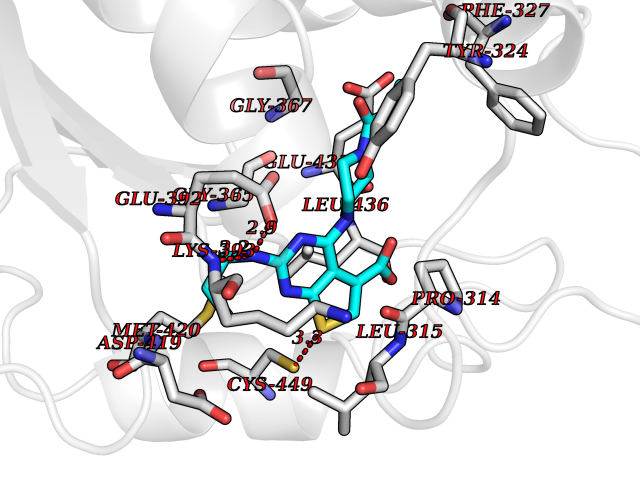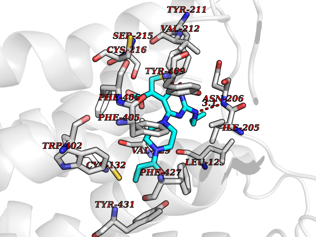 | Target general information Gen name LIMK2 Organism Homo sapiens (Human) Uniprot ID TTD ID Synonyms LIMK-2; LIM domain kinase 2 Protein family Protein kinase superfamily, TKL Ser/Thr protein kinase family Biochemical class Kinase Function Displays serine/threonine-specific phosphorylation of myelin basic protein and histone (MBP) in vitro. Related diseases Intellectual developmental disorder, autosomal recessive 80, with variant lissencephaly (MRT80) [MIM:620653]: An autosomal recessive disorder characterized by global developmental delay, mildly to moderately impaired intellectual development, attention deficit-hyperactivity disorder, hypotonia, seizure, poor social skills, and autistic traits. Brain imaging shows fronto-temporal lissencephaly and pachygyria. {ECO:0000269|PubMed:37880421}. The disease is caused by variants affecting the gene represented in this entry. Drugs (DrugBank ID) DB11718; DB12010 Interacts with Q16543; P08238; Q96C90; P62258 EC number EC 2.7.11.1 Uniprot keywords 3D-structure; Alternative splicing; ATP-binding; Cytoplasm; Cytoskeleton; Kinase; LIM domain; Metal-binding; Nucleotide-binding; Nucleus; Phosphoprotein; Proteomics identification; Reference proteome; Repeat; Serine/threonine-protein kinase; Transferase; Zinc Protein physicochemical properties Chain ID A Molecular weight (Da) 32109.2 Length 283 Aromaticity 0.1 Instability index 27.28 Isoelectric point 6.01 Charge (pH=7) -3.93 3D Binding mode Sequence MDLIHGEVLGKGFFGQAIKVTHKATGKVMVMKELIRCDEETQKTFLTEVKVMRSLDHPNVLKFIGVLYKDKKLNLLTEYIEGGTLKDFLRSMDPFPWQQKVRFAKGIASGMAYLHSMCIIHRDLNSHNCLIKLDKTVVVADFGLSRLIVDRKKRYTVVGNPYWMAPEMLNGKSYDETVDIFSFGIVLCEIIGQVYADPDCLPRTLDFGLNVKLFWEKFVPTDCPPAFFPLAAICCRLEPESRPAFSKLEDSFEALSLYLGELGIPLPAELEELDHTVSMQYGL Hydrogen bonds contact Hydrophobic contact | ||||