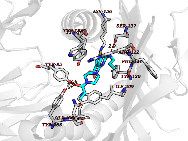 | Target general information Gen name PTPRZ1 Organism Homo sapiens (Human) Uniprot ID TTD ID Synonyms Receptor protein tyrosine phosphatase zeta; R-PTP-zeta; PTPRZ1 Protein family Protein-tyrosine phosphatase family, Receptor class 5 subfamily Biochemical class Phosphoric monoester hydrolase Function Protein tyrosine phosphatase that negatively regulates oligodendrocyte precursor proliferation in the embryonic spinal cord. Required for normal differentiation of the precursor cells into mature, fully myelinating oligodendrocytes. May play a role in protecting oligondendrocytes against apoptosis. May play a role in the establishment of contextual memory, probably via the dephosphorylation of proteins that are part of important signaling cascades. Related diseases Optic atrophy 1 (OPA1) [MIM:165500]: A condition that features progressive visual loss in association with optic atrophy. Atrophy of the optic disk indicates a deficiency in the number of nerve fibers which arise in the retina and converge to form the optic disk, optic nerve, optic chiasm and optic tracts. OPA1 is characterized by an insidious onset of visual impairment in early childhood with moderate to severe loss of visual acuity, temporal optic disk pallor, color vision deficits, and centrocecal scotoma of variable density. {ECO:0000269|PubMed:11017079, ECO:0000269|PubMed:11017080, ECO:0000269|PubMed:11440988, ECO:0000269|PubMed:11440989, ECO:0000269|PubMed:11810270, ECO:0000269|PubMed:12036970, ECO:0000269|PubMed:12566046, ECO:0000269|PubMed:14961560, ECO:0000269|PubMed:15948788, ECO:0000269|PubMed:16513463, ECO:0000269|PubMed:16617242, ECO:0000269|PubMed:18204809, ECO:0000269|PubMed:18360822, ECO:0000269|PubMed:19319978, ECO:0000269|PubMed:19325939, ECO:0000269|PubMed:19969356, ECO:0000269|PubMed:20185555, ECO:0000269|PubMed:22382025, ECO:0000269|PubMed:22857269, ECO:0000269|PubMed:23401657}. The disease is caused by variants affecting the gene represented in this entry.; DISEASE: Dominant optic atrophy plus syndrome (DOA+) [MIM:125250]: A neurologic disorder characterized most commonly by an insidious onset of visual loss and sensorineural hearing loss in childhood with variable presentation of other clinical manifestations including progressive external ophthalmoplegia, muscle cramps, hyperreflexia, and ataxia. There appears to be a wide range of intermediate phenotypes. {ECO:0000269|PubMed:15531309, ECO:0000269|PubMed:16240368, ECO:0000269|PubMed:18065439, ECO:0000269|PubMed:18158317, ECO:0000269|PubMed:18195150, ECO:0000269|PubMed:20185555, ECO:0000269|PubMed:21112924, ECO:0000269|PubMed:23387428}. The disease is caused by variants affecting the gene represented in this entry.; DISEASE: Behr syndrome (BEHRS) [MIM:210000]: An autosomal recessive syndrome characterized by optic atrophy beginning in early childhood associated with ataxia, pyramidal signs, spasticity, intellectual disability, and posterior column sensory loss. The ataxia, spasticity, and muscle contractures, mainly of the hip adductors, hamstrings, and soleus, are progressive and become more prominent in the second decade. {ECO:0000269|PubMed:21636302, ECO:0000269|PubMed:25012220, ECO:0000269|PubMed:25146916}. The disease is caused by variants affecting the gene represented in this entry.; DISEASE: Mitochondrial DNA depletion syndrome 14, cardioencephalomyopathic type (MTDPS14) [MIM:616896]: An autosomal recessive mitochondrial disorder characterized by lethal infantile encephalopathy, hypertrophic cardiomyopathy and optic atrophy. Skeletal muscle biopsies show significant mtDNA depletion and abnormal mitochondria. {ECO:0000269|PubMed:26561570}. The disease is caused by variants affecting the gene represented in this entry. Drugs (DrugBank ID) NA Interacts with Q9UM73; Q12860 EC number EC 3.1.3.48 Uniprot keywords 3D-structure; Alternative splicing; Cell membrane; Disulfide bond; Glycoprotein; Hydrolase; Membrane; Phosphoprotein; Protein phosphatase; Proteoglycan; Proteomics identification; Reference proteome; Repeat; Secreted; Signal; Transmembrane; Transmembrane helix Protein physicochemical properties Chain ID A Molecular weight (Da) 32208.1 Length 282 Aromaticity 0.11 Instability index 38.98 Isoelectric point 7.35 Charge (pH=7) 0.89 3D Binding mode Sequence GPAIPIKHFPKHVADLHASSGFTEEFEEVQSCTVDLGITADSSNHPDNKHKNRYINIVAYDHSRVKLAQLAEKDGKLTDYINANYVDGYNRPKAYIAAQGPLKSTAEDFWRMIWEHNVEVIVMITNLVEKGRRKCDQYWPADGSEEYGNFLVTQKSVQVLAYYTVRNFTLRNTKIRVVTQYHYTQWPDMGVPEYSLPVLTFVRKAAYAKRHAVGPVVVHCSAGVGRTGTYIVLDSMLQQIQHEGTVNIFGFLKHIRSQRNYLVQTEEQYVFIHDTLVEAILS Hydrogen bonds contact Hydrophobic contact | ||||