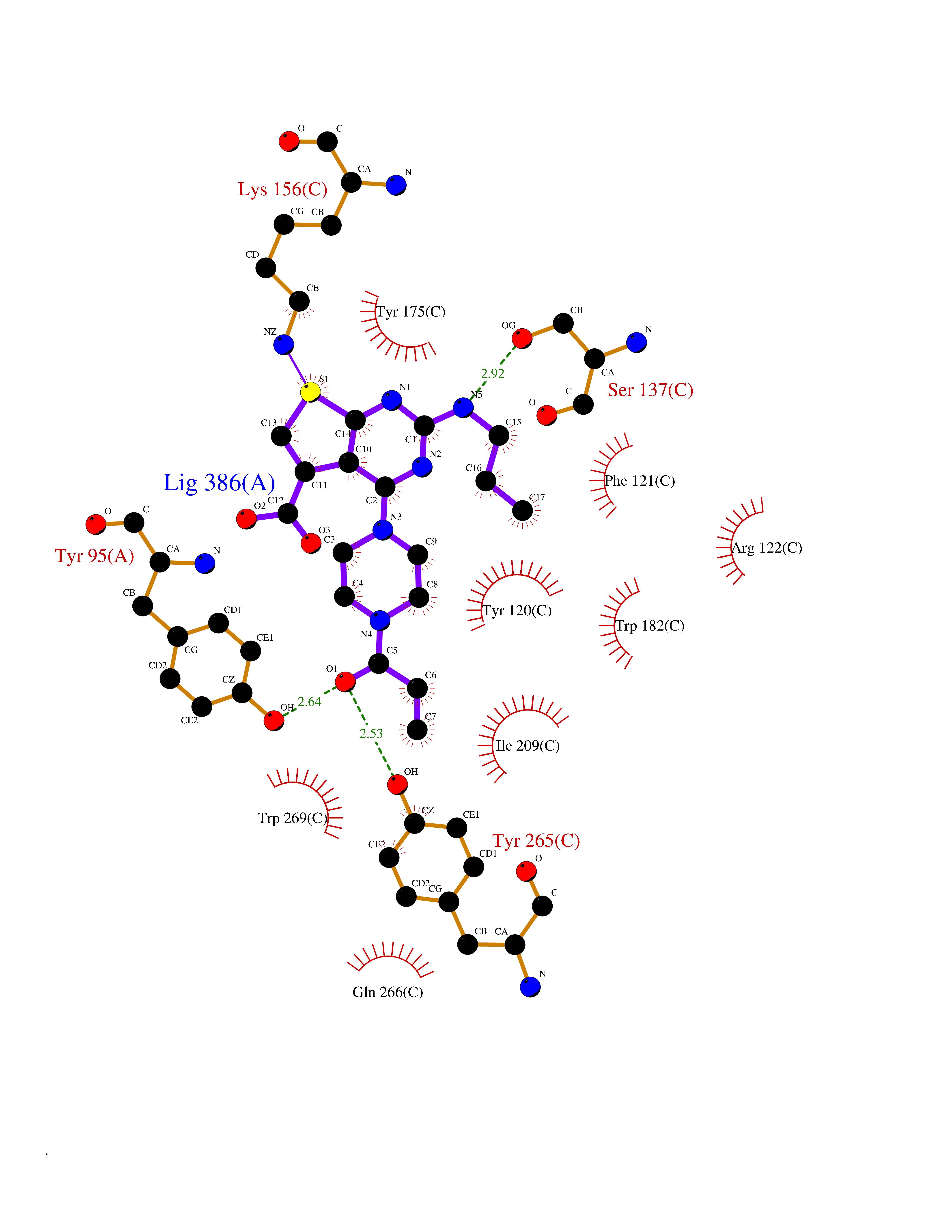 | Target general information Gen name PRMT5 Organism Homo sapiens (Human) Uniprot ID TTD ID Synonyms Shk1 kinase-binding protein 1 homolog; SKB1Hs; SKB1 homolog; SKB1; Protein arginine N-methyltransferase 5; Jak-binding protein 1; JBP1; IBP72; Histone-arginine N-methyltransferase PRMT5; HRMT1L5; 72 k Protein family Class I-like SAM-binding methyltransferase superfamily, Protein arginine N-methyltransferase family Biochemical class Methyltransferase Function Specifically mediates the symmetrical dimethylation of arginine residues in the small nuclear ribonucleoproteins Sm D1 (SNRPD1) and Sm D3 (SNRPD3); such methylation being required for the assembly and biogenesis of snRNP core particles. Methylates SUPT5H and may regulate its transcriptional elongation properties. Mono- and dimethylates arginine residues of myelin basic protein (MBP) in vitro. May play a role in cytokine-activated transduction pathways. Negatively regulates cyclin E1 promoter activity and cellular proliferation. Methylates histone H2A and H4 'Arg-3' during germ cell development. Methylates histone H3 'Arg-8', which may repress transcription. Methylates the Piwi proteins (PIWIL1, PIWIL2 and PIWIL4), methylation of Piwi proteins being required for the interaction with Tudor domain-containing proteins and subsequent localization to the meiotic nuage. Methylates RPS10. Attenuates EGF signaling through the MAPK1/MAPK3 pathway acting at 2 levels. First, monomethylates EGFR; this enhances EGFR 'Tyr-1197' phosphorylation and PTPN6 recruitment, eventually leading to reduced SOS1 phosphorylation. Second, methylates RAF1 and probably BRAF, hence destabilizing these 2 signaling proteins and reducing their catalytic activity. Required for induction of E-selectin and VCAM-1, on the endothelial cells surface at sites of inflammation. Methylates HOXA9. Methylates and regulates SRGAP2 which is involved in cell migration and differentiation. Acts as a transcriptional corepressor in CRY1-mediated repression of the core circadian component PER1 by regulating the H4R3 dimethylation at the PER1 promoter. Methylates GM130/GOLGA2, regulating Golgi ribbon formation. Methylates H4R3 in genes involved in glioblastomagenesis in a CHTOP- and/or TET1-dependent manner. Symmetrically methylates POLR2A, a modification that allows the recruitment to POLR2A of proteins including SMN1/SMN2 and SETX. This is required for resolving RNA-DNA hybrids created by RNA polymerase II, that form R-loop in transcription terminal regions, an important step in proper transcription termination. Along with LYAR, binds the promoter of gamma-globin HBG1/HBG2 and represses its expression. Symmetrically methylates NCL. Methylates TP53; methylation might possibly affect TP53 target gene specificity. Arginine methyltransferase that can both catalyze the formation of omega-N monomethylarginine (MMA) and symmetrical dimethylarginine (sDMA), with a preference for the formation of MMA. Related diseases Epilepsy, nocturnal frontal lobe, 3 (ENFL3) [MIM:605375]: An autosomal dominant focal epilepsy characterized by nocturnal seizures with hyperkinetic automatisms and poorly organized stereotyped movements. {ECO:0000269|PubMed:11062464, ECO:0000269|PubMed:11104662}. The disease is caused by variants affecting the gene represented in this entry. Drugs (DrugBank ID) NA Interacts with P01019; Q9NX04; Q8WUW1; Q08289; P78371; Q16543; Q8N8U2; P54105; P21964-2; Q9NQ92; Q16526; Q9Y6K1; Q01094; Q08426; P38919; Q14241; O15197-2; Q6ZV65; P01100; O95995; P62993; Q8TE85; Q9BX10; P62805; P31269; Q00613; Q63ZY3; P03952; Q8TBB1; P06858; Q86UQ8-1; Q96HA8; Q8WVJ2; P24928; O14744; Q86U06; Q9BRS2; O75044; Q96RU7; P31930; P40337-2; Q9BQA1; P63104; Q96E35; Q91XC0; P03418; Q6ZV65-2 EC number EC 2.1.1.320 Uniprot keywords 3D-structure; Acetylation; Alternative splicing; Biological rhythms; Chromatin regulator; Chromosome; Cytoplasm; Direct protein sequencing; Golgi apparatus; Methyltransferase; Nucleus; Proteomics identification; Reference proteome; Repressor; S-adenosyl-L-methionine; Transcription; Transcription regulation; Transferase Protein physicochemical properties Chain ID A Molecular weight (Da) 71188.3 Length 621 Aromaticity 0.11 Instability index 44.6 Isoelectric point 5.95 Charge (pH=7) -9.68 3D Binding mode Sequence RVSSGRDLNCVPEIADTLGAVAKQGFDFLCMPVFHPRFKREFIQEPAKNRPGPQTRSDLLLSGRDWNTLIVGKLSPWIRPDSKVEKIRRNSEAAMLQELNFGAYLGLPAFLLPLNQEDNTNLARVLTNHIHTGHHSSMFWMRVPLVAPEDLRDDIIENAPTTHTEEYSGEEKTWMWWHNFRTLCDYSKRIAVALEIGADLPSNHVIDRWLGEPIKAAILPTSIFLTNKKGFPVLSKMHQRLIFRLLKLEVQFIITGTNHHSCSYLQYLEYLSQNRPPPNAYELFAKGYEDYLQSPLQPLMDNLESQTYEVFEKDPIKYSQYQQAIYKCLLDRVPEEEKDTNVQVLMVLGAGRGPLVNASLRAAKQADRRIKLYAVEKNPNAVVTLENWQFEEWGSQVTVVSSDMREWVAPEKADIIVSELLGSFADNELSPECLDGAQHFLKDDGVSIPGEYTSFLAPISSSKLYNEVRACREKDRDPEAQFEMPYVVRLHNFHQLSAPQPCFTFSHPNRDPMIDNNRYCTLEFPVEVNTVLHGFAGYFETVLYQDITLSIRPETHSPGMFSWFPILFPIKQPITVREGQTICVRFWRCSNSKKVWYEWAVTAPVCSAIHNPTGRSYTIGL Hydrogen bonds contact Hydrophobic contact | ||||