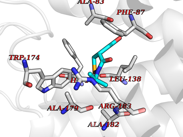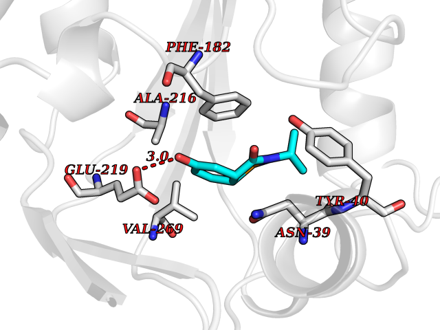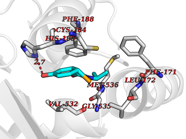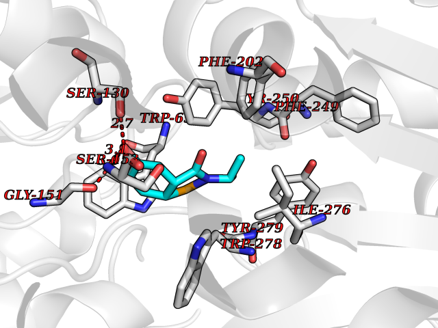 | Target general information Gen name PNMT Organism Homo sapiens (Human) Uniprot ID TTD ID Synonyms PNMTase; PENT; Noradrenaline N-methyltransferase Protein family Class I-like SAM-binding methyltransferase superfamily, NNMT/PNMT/TEMT family Biochemical class NA Function Converts noradrenaline to adrenaline. Related diseases A chromosomal aberration involving TRIM24/TIF1 is found in papillary thyroid carcinomas (PTCs). Translocation t(7;10)(q32;q11) with RET. The translocation generates the TRIM24/RET (PTC6) oncogene. {ECO:0000269|PubMed:10439047}. Drugs (DrugBank ID) DB08129; DB08128; DB07739; DB07798; DB07747; DB03468; DB08550; DB03824; DB04273; DB07906; DB07597; DB09571; DB00968; DB08631; DB01752; DB08654 Interacts with Q9P2G9-2; Q8TBB1 EC number EC 2.1.1.28 Uniprot keywords 3D-structure; Catecholamine biosynthesis; Direct protein sequencing; Methyltransferase; Phosphoprotein; Proteomics identification; Reference proteome; S-adenosyl-L-methionine; Transferase Protein physicochemical properties Chain ID A Molecular weight (Da) 29198.9 Length 264 Aromaticity 0.09 Instability index 54.33 Isoelectric point 5.91 Charge (pH=7) -3.69 3D Binding mode Sequence APGQAAVASAYQRFEPRAYLRNNYAPPRGDLCNPNGVGPWKLRCLAQTFATGEVSGRTLIDIGSGPTVYQLLSACSHFEDITMTDFLEVNRQELGRWLQEEPGAFNWSMYSQHACLIEGKGECWQDKERQLRARVKRVLPIDVHQPQPLGAGSPAPLPADALVSAFCLEAVSPDLASFQRALDHITTLLRPGGHLLLIGALEESWYLAGEARLTVVPVSEEEVREALVRSGYKVRDLRTYIMPAHLQTGVDDVKGVFFAWAQKV Hydrogen bonds contact Hydrophobic contact | ||||