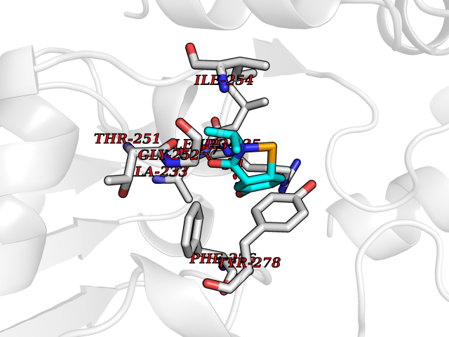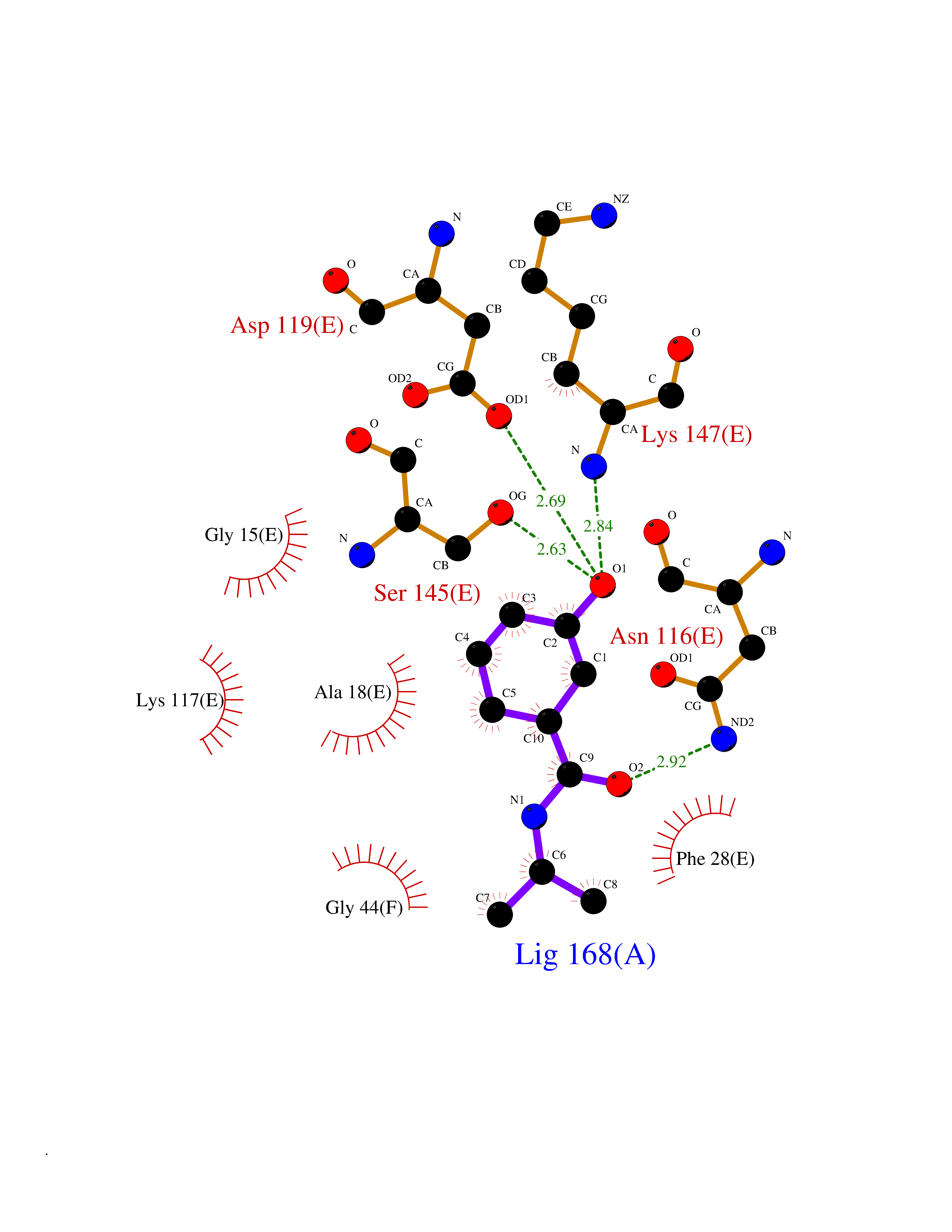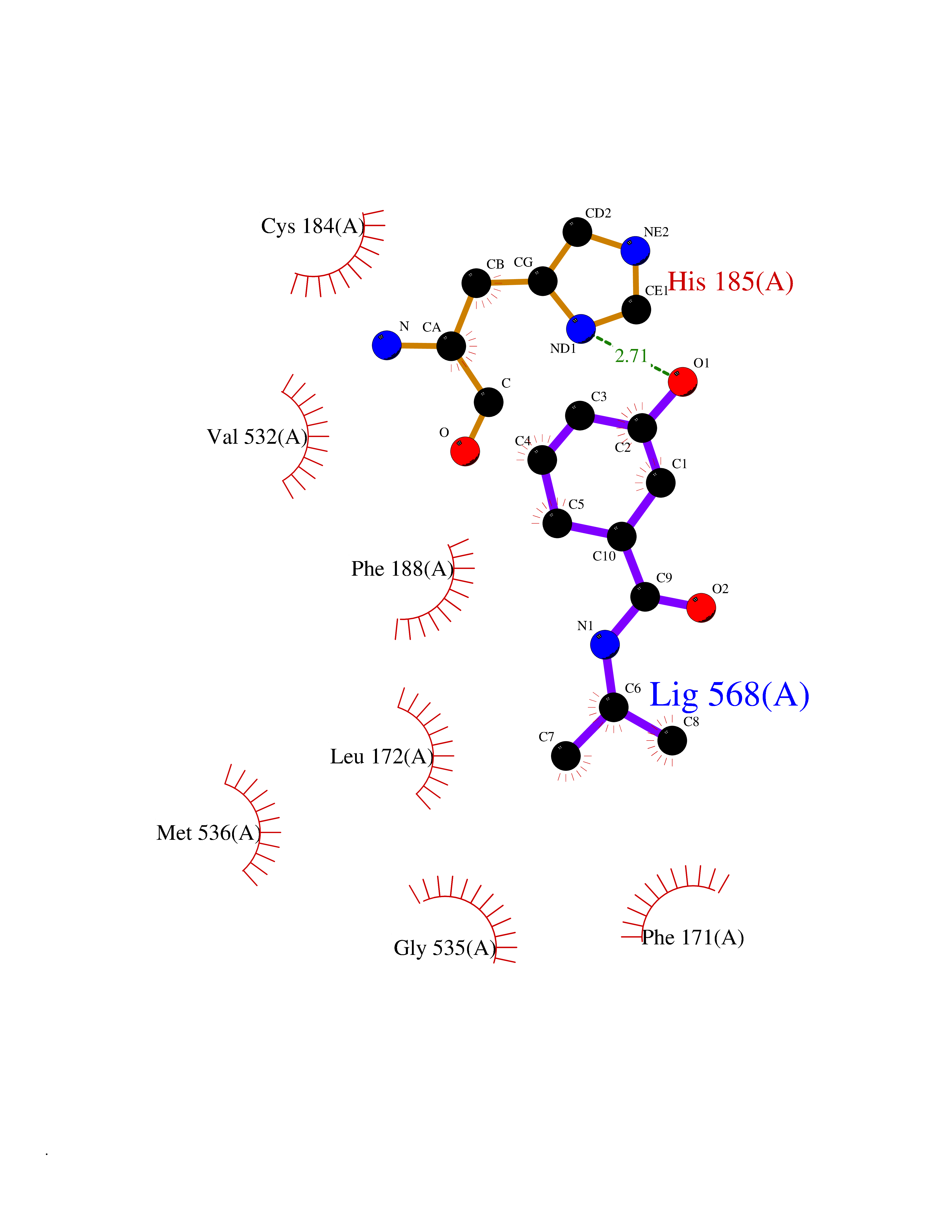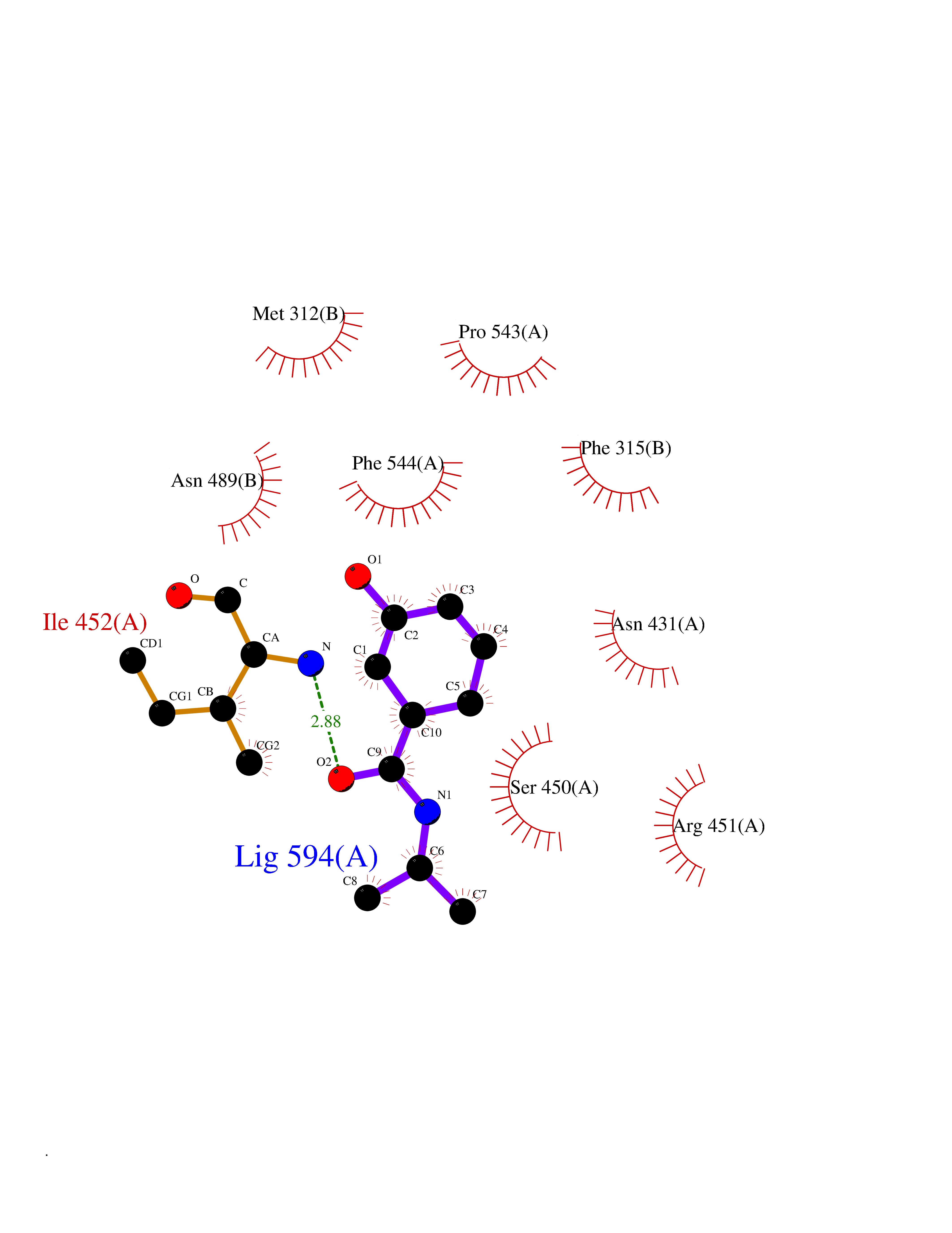| Target general information Gen name ATIC Organism Homo sapiens (Human) Uniprot ID TTD ID Synonyms PURH; OK/SW-cl.86; Bifunctional purine biosynthesis protein PURH Protein family PurH family Biochemical class Methyltransferase Function Bifunctional enzyme that catalyzes 2 steps in purine biosynthesis. Related diseases AICA-ribosuria due to ATIC deficiency (AICAR) [MIM:608688]: A neurologically devastating inborn error of purine biosynthesis. Patients excrete massive amounts of AICA-riboside in the urine and accumulate AICA-ribotide and its derivatives in erythrocytes and fibroblasts. Clinical features include profound intellectual disability, epilepsy, dysmorphic features and congenital blindness. AICAR inheritance is autosomal recessive. {ECO:0000269|PubMed:15114530}. The disease is caused by variants affecting the gene represented in this entry. Drugs (DrugBank ID) DB02309; DB03442; DB01700; DB01972; DB00563; DB04057; DB00642; DB00116 Interacts with NA EC number NA Uniprot keywords 3D-structure; Acetylation; Alternative splicing; Cytoplasm; Direct protein sequencing; Disease variant; Epilepsy; Hydrolase; Intellectual disability; Multifunctional enzyme; Proteomics identification; Purine biosynthesis; Reference proteome; Transferase Protein physicochemical properties Chain ID A,B Molecular weight (Da) 128556 Length 1177 Aromaticity 0.07 Instability index 38.21 Isoelectric point 6.28 Charge (pH=7) -7.98 3D Binding mode Sequence GQLALFSVSDKTGLVEFARNLTALGLNLVASGGTAKALRDAGLAVRDVSELTGFPEMLGGRVKTLHPAVHAGILARNIPEDNADMARLDFNLIRVVACNLYPFVKTVASPGVTVEEAVEQIDIGGVTLLRAAAKNHARVTVVCEPEDYVVVSTEMQSSESKDTSLETRRQLALKAFTHTAQYDEAISDYFRKQYSKGVSQMPLRYGMNPHQTPAQLYTLQPKLPITVLNGAPGFINLCDALNAWQLVKELKEALGIPAAASFKHVSPAGAAVGIPLSEDEAKVCMVYDLYKTLTPISAAYARARGADRMSSFGDFVALSDVCDVPTAKIISREVSDGIIAPGYEEEALTILSKKKNGNYCVLQMDQSYKPDENEVRTLFGLHLSQKRNNGVVDKSLFSNVVTKNKDLPESALRDLIVATIAVKYTQSNSVCYAKNGQVIGIGAGQQSRIHCTRLAGDKANYWWLRHHPQVLSMKFKTGVKRAEISNAIDQYVTGTIGEDEDLIKWKALFEEVPELLTEAEKKEWVEKLTEVSISSDAFFPFRDNVDRAKRSGVAYIAAPSGSAADKVVIEACDELGIILAHTNLRLFHHQLALFSVSDKTGLVEFARNLTALGLNLVASGGTAKALRDAGLAVRDVSELTGFPEMLGGRVKTLHPAVHAGILARNIPEDNADMARLDFNLIRVVACNLYPFVKTVASPGVTVEEAVEQIDIGGVTLLRAAAKNHARVTVVCEPEDYVVVSTEMQSSESKDTSLETRRQLALKAFTHTAQYDEAISDYFRKQYSKGVSQMPLRYGMNPHQTPAQLYTLQPKLPITVLNGAPGFINLCDALNAWQLVKELKEALGIPAAASFKHVSPAGAAVGIPLSEDEAKVCMVYDLYKTLTPISAAYARARGADRMSSFGDFVALSDVCDVPTAKIISREVSDGIIAPGYEEEALTILSKKKNGNYCVLQMDQSYKPDENEVRTLFGLHLSQKRNNGVVDKSLFSNVVTKNKDLPESALRDLIVATIAVKYTQSNSVCYAKNGQVIGIGAGQQSRIHCTRLAGDKANYWWLRHHPQVLSMKFKTGVKRAEISNAIDQYVTGTIGEDEDLIKWKALFEEVPELLTEAEKKEWVEKLTEVSISSDAFFPFRDNVDRAKRSGVAYIAAPSGSAADKVVIEACDELGIILAHTNLRLFHH Hydrogen bonds contact Hydrophobic contact | ||||