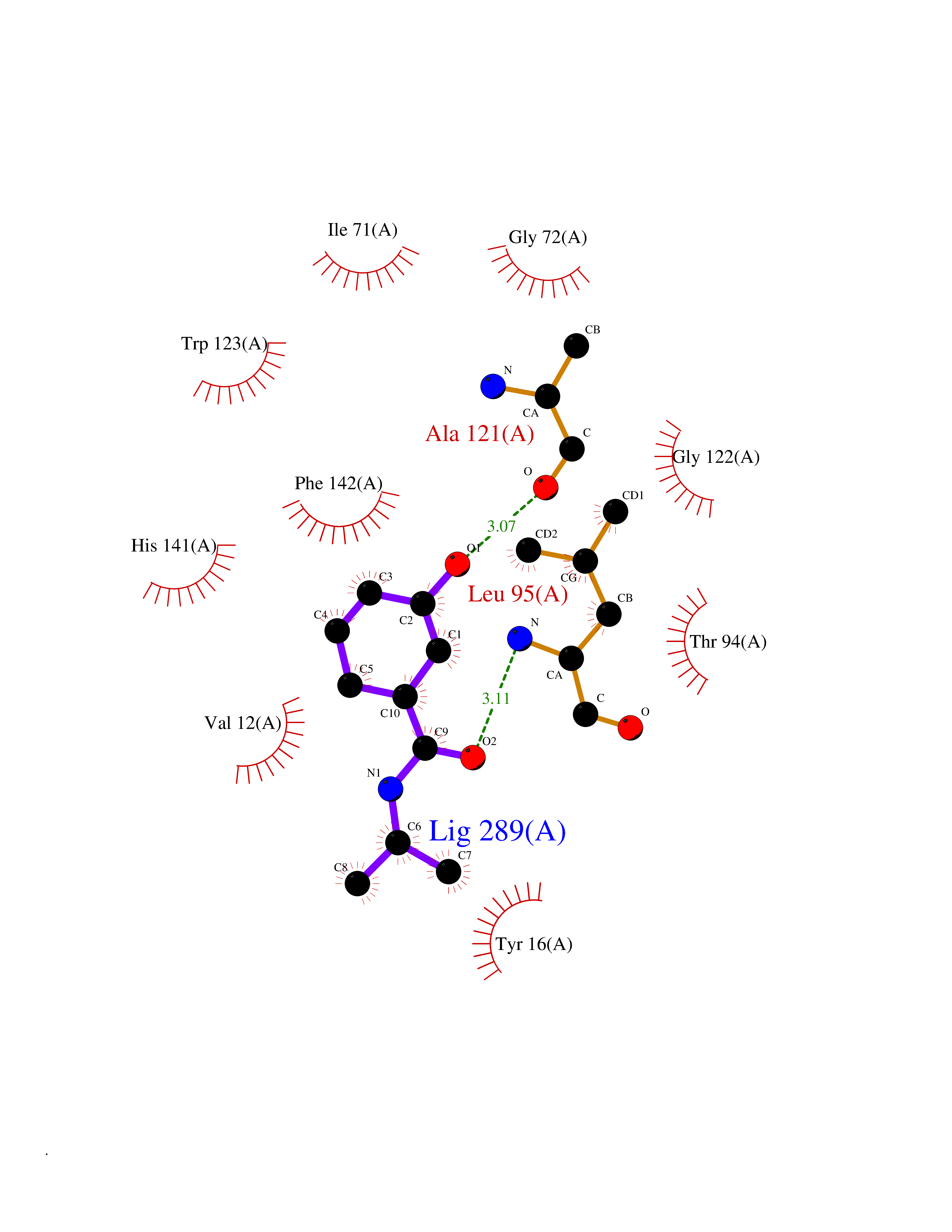 | Target general information Gen name FFAR1 Organism Homo sapiens (Human) Uniprot ID TTD ID NA Synonyms GPR40 Protein family G-protein coupled receptor 1 family Biochemical class Fatty acid binding protein / hydrolase Function Bioactive lipid receptor activity.G-protein coupled receptor activity.Guanyl-nucleotide exchange factor activity.Lipid binding. Related diseases Refsum disease (RD) [MIM:266500]: A rare autosomal recessive peroxisomal disorder characterized by the accumulation of the branched-chain fatty acid, phytanic acid, in blood and tissues. Cardinal clinical features are retinitis pigmentosa, peripheral neuropathy, cerebellar ataxia, and elevated protein levels in the cerebrospinal fluid (CSF). Half of all patients exhibit generalized, mild to moderate ichthyosis resembling ichthyosis vulgaris. Less constant features are nerve deafness, anosmia, skeletal abnormalities, cataracts and cardiac impairment. {ECO:0000269|PubMed:10709665, ECO:0000269|PubMed:10767344, ECO:0000269|PubMed:14974078, ECO:0000269|PubMed:9326939, ECO:0000269|PubMed:9326940}. The disease is caused by variants affecting the gene represented in this entry. Drugs (DrugBank ID) DB00159 Interacts with NA EC number NA Uniprot keywords 3D-structure; Cell membrane; Disulfide bond; G-protein coupled receptor; Glycoprotein; Lipid-binding; Membrane; Receptor; Reference proteome; Transducer; Transmembrane; Transmembrane helix Protein physicochemical properties Chain ID A Molecular weight (Da) 28319.1 Length 272 Aromaticity 0.11 Instability index 27.3 Isoelectric point 9.07 Charge (pH=7) 6.85 3D Binding mode Sequence MDLPPQLSFGLYVAAFALGFPLNVLAIRGATAHARLRLTPSAVYALNLGCSDLLLTVSLPLKAVEALASGAWPLPASLCPVFAVAHFAPLYAGGGFLAALSAARYLGAAFPPCYSWGVCAAIWALVLCHLGLVFGLEAPGGWLDHSNTSLGINTPVNGSPVCLEAWDPASAGPARFSLSLLLFFLPLAITAFCFVGCLRALARGSLTHRRKLRAAWVAGGALLTLLLCVGPYNASNVASFLYPNLGGSWRKLGLITGAWSVVLNPLVTGYLG Hydrogen bonds contact Hydrophobic contact | ||||