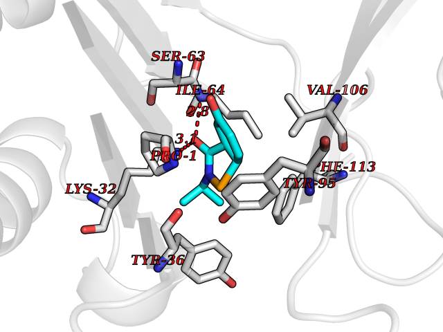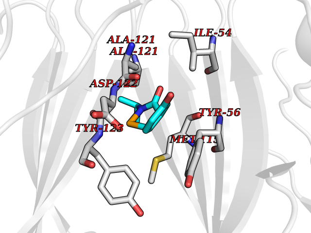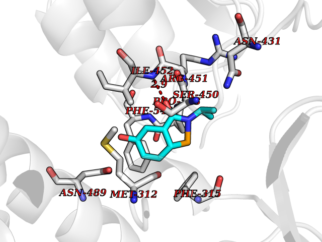 | Target general information Gen name MIF Organism Homo sapiens (Human) Uniprot ID TTD ID Synonyms Phenylpyruvate tautomerase; MMIF; L-dopachrome tautomerase; L-dopachrome isomerase; Glycosylation-inhibiting factor; GLIF; GIF Protein family MIF family Biochemical class Intramolecular oxidoreductase Function Involved in the innate immune response to bacterial pathogens. The expression of MIF at sites of inflammation suggests a role as mediator in regulating the function of macrophages in host defense. Counteracts the anti-inflammatory activity of glucocorticoids. Has phenylpyruvate tautomerase and dopachrome tautomerase activity (in vitro), but the physiological substrate is not known. It is not clear whether the tautomerase activity has any physiological relevance, and whether it is important for cytokine activity. Pro-inflammatory cytokine. Related diseases Rheumatoid arthritis systemic juvenile (RASJ) [MIM:604302]: An inflammatory articular disorder with systemic onset beginning before the age of 16. It represents a subgroup of juvenile arthritis associated with severe extraarticular features and occasionally fatal complications. During active phases of the disorder, patients display a typical daily spiking fever, an evanescent macular rash, lymphadenopathy, hepatosplenomegaly, serositis, myalgia and arthritis. {ECO:0000269|PubMed:11508429}. Disease susceptibility is associated with variants affecting the gene represented in this entry. Drugs (DrugBank ID) DB01880; DB07888; DB08334; DB08335; DB08333; DB07718; DB08765; DB02728 Interacts with O43521-2; P00533; Q92743; P14174; Q96HA8 EC number EC 5.3.2.1 Uniprot keywords 3D-structure; Acetylation; Cytokine; Cytoplasm; Direct protein sequencing; Immunity; Inflammatory response; Innate immunity; Isomerase; Proteomics identification; Reference proteome; Secreted Protein physicochemical properties Chain ID A,C Molecular weight (Da) 24671.9 Length 228 Aromaticity 0.09 Instability index 31.45 Isoelectric point 8.37 Charge (pH=7) 2.26 3D Binding mode Sequence PMFIVNTNVPRASVPDGFLSELTQQLAQATGKPPQYIAVHVVPDQLMAFGGSSEPCALCSLHSIGKIGGAQNRSYSKLLCGLLAERLRISPDRVYINYYDMNAANVGWNNSTFAPMFIVNTNVPRASVPDGFLSELTQQLAQATGKPPQYIAVHVVPDQLMAFGGSSEPCALCSLHSIGKIGGAQNRSYSKLLCGLLAERLRISPDRVYINYYDMNAANVGWNNSTFA Hydrogen bonds contact Hydrophobic contact | ||||