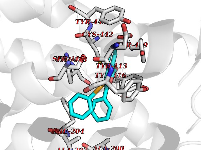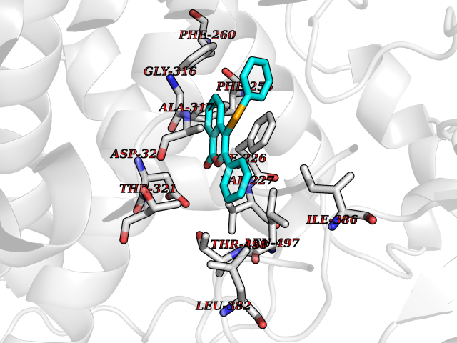 Target general information Gen name CYP1A2 Organism Homo sapiens (Human) Uniprot ID TTD ID NA Synonyms NA Protein family Cytochrome P450 family Biochemical class Oxidoreductase Function Aromatase activity.Caffeine oxidase activity.Demethylase activity.Electron carrier activity.Enzyme binding.Heme binding.Iron ion binding.Monooxygenase activity.Oxidoreductase activity.Oxidoreductase activity, acting on paired donors, with incorporation or reduction of molecular oxygen, reduced flavin or flavoprotein as one donor, and incorporation of one atom of oxygen.Oxygen binding. Related diseases Myeloperoxidase deficiency (MPOD) [MIM:254600]: A disorder characterized by decreased myeloperoxidase activity in neutrophils and monocytes that results in disseminated candidiasis. {ECO:0000269|PubMed:37198333, ECO:0000269|PubMed:7904599, ECO:0000269|PubMed:8142659, ECO:0000269|PubMed:8621627, ECO:0000269|PubMed:9354683, ECO:0000269|PubMed:9637725}. The disease is caused by variants affecting the gene represented in this entry. Drugs (DrugBank ID) DB08496; DB01667; DB14132; DB04356; DB02489; DB11932; DB12001; DB05812; DB13573; DB01418; DB00316; DB15568; DB06594; DB00518; DB05396; DB00969; DB07453; DB01424; DB01223; DB01118; DB00321; DB00261; DB01217; DB01435; DB06605; DB05676; DB06413; DB06216; DB01072; DB15011; DB06442; DB06626; DB00993; DB00972; DB13203; DB05015; DB16703; DB06769; DB01086; DB06770; DB06771; DB06732; DB00195; DB04889; DB11967; DB13975; DB00188; DB12151; DB01558; DB14018; DB13812; DB00201; DB09061; DB14737; DB11791; DB06774; DB00564; DB06016; DB01136; DB12814; DB00477; DB00356; DB01166; DB00501; DB01012; DB00568; DB00827; DB00537; DB00215; DB12499; DB14025; DB00349; DB01242; DB00575; DB00758; DB00363; DB00286; DB11672; DB14635; DB00924; DB08912; DB00851; DB06292; DB01254; DB01609; DB01151; DB16650; DB12161; DB01191; DB00633; DB11994; DB00586; DB11511; DB12945; DB00280; DB01184; DB09167; DB05928; DB01142; DB09273; DB00470; DB00476; DB00625; DB15444; DB06210; DB13874; DB11718; DB00467; DB11404; DB00530; DB00783; DB13952; DB13953; DB13954; DB13955; DB13956; DB00655; DB04574; DB13592; DB00330; DB00898; DB00977; DB00773; DB01628; DB00927; DB04854; DB01482; DB00574; DB12265; DB15669; DB01195; DB08972; DB04841; DB00544; DB00472; DB00499; DB00176; DB01320; DB00998; DB14029; DB06160; DB01044; DB01241; DB01155; DB01645; DB01381; DB00986; DB00365; DB00400; DB05708; DB00629; DB00502; DB01094; DB14999; DB04076; DB11737; DB00619; DB00458; DB11564; DB01306; DB09456; DB09564; DB01307; DB00047; DB01309; DB00030; DB00046; DB11567; DB00071; DB11568; DB05258; DB00034; DB00105; DB15131; DB00011; DB00018; DB00069; DB00060; DB00068; DB00033; DB00951; DB11757; DB09570; DB01026; DB01097; DB16217; DB09078; DB01002; DB05667; DB00281; DB12406; DB09198; DB04948; DB00978; DB06448; DB16220; DB01601; DB00455; DB04871; DB06077; DB01283; DB00772; DB00934; DB06234; DB14009; DB00784; DB01065; DB00170; DB00454; DB00532; DB00333; DB00763; DB00553; DB01028; DB09241; DB01233; DB00379; DB06148; DB01388; DB06595; DB00370; DB16236; DB00745; DB11763; DB00218; DB06510; DB14011; DB00461; DB00607; DB00779; DB00788; DB06600; DB00238; DB06803; DB00184; DB01115; DB11793; DB00435; DB05115; DB00717; DB01059; DB00540; DB05990; DB01165; DB00334; DB16267; DB00338; DB00904; DB11632; DB11443; DB01173; DB11837; DB09330; DB01303; DB11697; DB00377; DB00715; DB06589; DB11774; DB00487; DB00008; DB00022; DB09122; DB13634; DB00806; DB11198; DB08883; DB00850; DB03783; DB01174; DB00388; DB00252; DB11450; DB01100; DB13823; DB04951; DB17472; DB11642; DB08910; DB15822; DB01058; DB01087; DB00794; DB00420; DB09288; DB01182; DB06479; DB00818; DB00571; DB13449; DB11892; DB04216; DB00908; DB00468; DB01129; DB00980; DB09290; DB00863; DB01367; DB00409; DB02709; DB13174; DB01045; DB11753; DB00740; DB14924; DB00503; DB00533; DB01656; DB15119; DB00268; DB00296; DB00412; DB00817; DB12332; DB13772; DB06654; DB11491; DB00418; DB01037; DB11689; DB06290; DB13261; DB15093; DB00052; DB00398; DB01208; DB09118; DB00428; DB06820; DB00382; DB00675; DB06083; DB09071; DB05488; DB09256; DB01079; DB01405; DB00857; DB08880; DB11712; DB01412; DB00277; DB00730; DB01623; DB00208; DB06137; DB00697; DB01056; DB06264; DB00752; DB00384; DB12245; DB00831; DB15442; DB00440; DB00685; DB08867; DB14989; DB13609; DB06235; DB00313; DB08881; DB00661; DB09185; DB12026; DB00682; DB02134; DB00549; DB00744; DB00315; DB00425; DB09225; DB09120 Interacts with O95870 EC number 1.14.14.1; 4.2.1.152 Uniprot keywords 3D-structure; Direct protein sequencing; Endoplasmic reticulum; Fatty acid metabolism; Glycoprotein; Heme; Iron; Lipid metabolism; Lyase; Membrane; Metal-binding; Microsome; Monooxygenase; Oxidoreductase; Proteomics identification; Reference proteome; Steroid metabolism; Sterol metabolism Protein physicochemical properties Chain ID A Molecular weight (Da) 54475 Length 480 Aromaticity 0.1 Instability index 40.43 Isoelectric point 9.16 Charge (pH=7) 9.89 3D Binding mode Sequence RVPKGLKSPPEPWGWPLLGHVLTLGKNPHLALSRMSQRYGDVLQIRIGSTPVLVLSRLDTIRQALVRQGDDFKGRPDLYTSTLITDGQSLTFSTDSGPVWAARRRLAQNALNTFSIASDPASSSSCYLEEHVSKEAKALISRLQELMAGPGHFDPYNQVVVSVANVIGAMCFGQHFPESSDEMLSLVKNTHEFVETASSGNPLDFFPILRYLPNPALQRFKAFNQRFLWFLQKTVQEHYQDFDKNSVRDITGALFKHSKKGPRASGNLIPQEKIVNLVNDIFGAGFDTVTTAISWSLMYLVTKPEIQRKIQKELDTVIGRERRPRLSDRPQLPYLEAFILETFRHSSFLPFTIPHSTTRDTTLNGFYIPKKCCVFVNQWQVNHDPELWEDPSEFRPERFLTADGTAINKPLSEKMMLFGMGKRRCIGEVLAKWEIFLFLAILLQQLEFSVPPGVKVDLTPIYGLTMKHARCEHVQARRFS Hydrogen bonds contact Hydrophobic contact | ||||