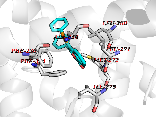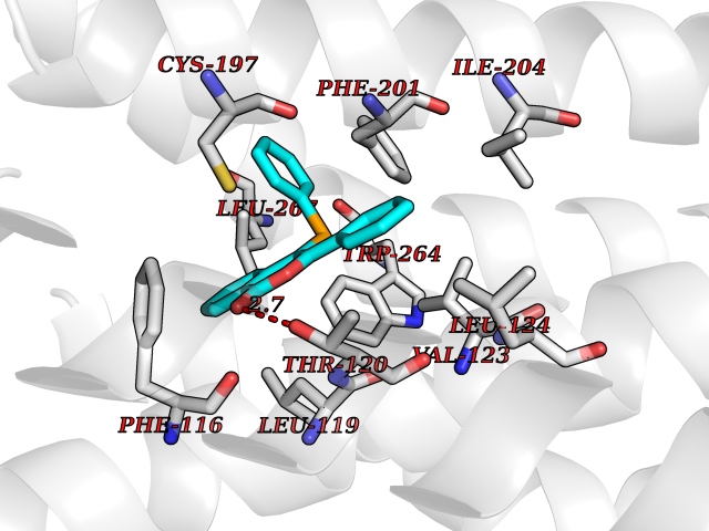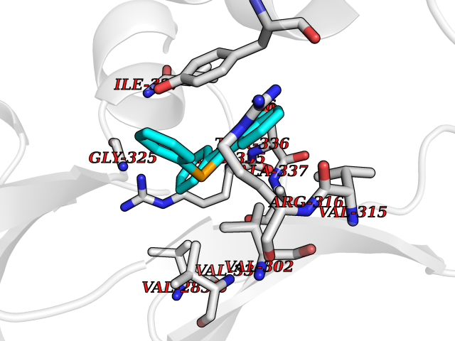 Target general information Gen name CHRM4 Organism Homo sapiens (Human) Uniprot ID TTD ID Synonyms M4 receptor; CHRM4 Protein family G-protein coupled receptor 1 family, Muscarinic acetylcholine receptor subfamily, CHRM4 sub-subfamily Biochemical class GPCR rhodopsin Function The muscarinic acetylcholine receptor mediates various cellular responses, including inhibition of adenylate cyclase, breakdown of phosphoinositides and modulation of potassium channels through the action of G proteins. Primary transducing effect is inhibition of adenylate cyclase. Related diseases Leukodystrophy, hypomyelinating, 15 (HLD15) [MIM:617951]: An autosomal recessive disorder characterized by hypomyelinating leukodystrophy with thinning of the corpus callosum. Clinical features include motor and cognitive impairment appearing in the first or second decade of life, dystonia, ataxia, spasticity, and dysphagia. Most patients develop severe optic atrophy, and some have hearing loss. {ECO:0000269|PubMed:29576217}. The disease may be caused by variants affecting the gene represented in this entry. Drugs (DrugBank ID) DB03128; DB08897; DB05752; DB00321; DB00543; DB01238; DB14185; DB00572; DB00767; DB01019; DB00835; DB00411; DB01239; DB00568; DB00363; DB00496; DB01151; DB09167; DB01142; DB00366; DB09194; DB06702; DB00986; DB06787; DB11181; DB00725; DB00424; DB00458; DB01625; DB01221; DB00408; DB00934; DB00454; DB06709; DB00940; DB01403; DB00340; DB00622; DB00540; DB00334; DB00715; DB01085; DB00387; DB01069; DB00777; DB12278; DB01224; DB11855; DB13581; DB00747; DB01591; DB00342; DB11235; DB01409; DB01036; DB00376; DB09089; DB00726; DB00809; DB09076; DB09185; DB00246 Interacts with NA EC number NA Uniprot keywords 3D-structure; Cell membrane; Disulfide bond; G-protein coupled receptor; Glycoprotein; Membrane; Phosphoprotein; Postsynaptic cell membrane; Proteomics identification; Receptor; Reference proteome; Synapse; Transducer; Transmembrane; Transmembrane helix Protein physicochemical properties Chain ID A,B Molecular weight (Da) 32545.4 Length 287 Aromaticity 0.14 Instability index 30.63 Isoelectric point 9.34 Charge (pH=7) 11.91 3D Binding mode Sequence HNRYETVEMVFIATVTGSLSLVTVVGNILVMLSIKVNRQLQTVNNYFLFSLACADLIIGAFSMNLYTVYIIKGYWPLGAVVCDLWLALDYVVSNASVMNLLIISFDRYFCVTKPLTYPARRTTKMAGLMIAAAWVLSFVLWAPAILFWQFVVGKRTVPDNQCFIQFLSNPAVTFGTAIAAFYLPVVIMTVLYIHISLASRSRVQMAARERKVTRTIFAILLAFILTWTPYNVMVLVNTFCQSCIPDTVWSIGYWLCYVNSTINPACYALCNATFKKTFRHLLLCQYR Hydrogen bonds contact Hydrophobic contact | ||||