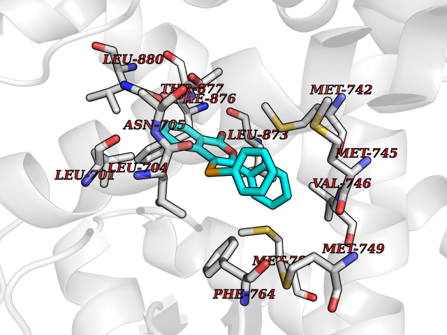 Target general information Gen name THRA Organism Homo sapiens (Human) Uniprot ID TTD ID Synonyms V-erbA-related protein 7; THRA2; THRA1; Nuclear receptor subfamily 1 group A member 1; NR1A1; ERBA1; EAR7; EAR-7; C-erbA-alpha; C-erbA-1 Protein family Nuclear hormone receptor family, NR1 subfamily Biochemical class Nuclear hormone receptor Function High affinity receptor for thyroid hormones, including triiodothyronine and thyroxine. Isoform Alpha-1: Nuclear hormone receptor that can act as a repressor or activator of transcription. Related diseases Hypothyroidism, congenital, non-goitrous, 6 (CHNG6) [MIM:614450]: A disease characterized by growth retardation, developmental retardation, skeletal dysplasia, borderline low thyroxine levels and high triiodothyronine levels. There is differential sensitivity to thyroid hormone action, with retention of hormone responsiveness in the hypothalamic pituitary axis and liver but skeletal, gastrointestinal, and myocardial resistance. {ECO:0000269|PubMed:22168587, ECO:0000269|PubMed:24969835, ECO:0000269|PubMed:25670821, ECO:0000269|PubMed:26037512}. The disease is caused by variants affecting the gene represented in this entry. Drugs (DrugBank ID) DB01118; DB00509; DB04855; DB05035; DB03176; DB00451; DB00279; DB01583; DB05235; DB09100 Interacts with Q9Y2J4; Q9Y2J4-4; O95971; Q8TAP6; Q96JM7; Q15648; Q6FHY5; P31321; Q96A49; O75410-7; Q9JLI4 EC number NA Uniprot keywords 3D-structure; Alternative splicing; Congenital hypothyroidism; Cytoplasm; Disease variant; DNA-binding; Metal-binding; Nucleus; Proteomics identification; Receptor; Reference proteome; Transcription; Transcription regulation; Zinc; Zinc-finger Protein physicochemical properties Chain ID A Molecular weight (Da) 29910.1 Length 267 Aromaticity 0.07 Instability index 52.75 Isoelectric point 5.31 Charge (pH=7) -11.32 3D Binding mode Sequence GSHMEEMIRSLQQRPEPTPEEWDLIHIATEAHRSTNAQGSHWKQRRKFLPDDIGQSPIVSMPDGDKVDLEAFSEFTKIITPAITRVVDFAKKLPMFSELPXEDQIILLKGCCMEIMSLRAAVRYDPESDTLTLSGEMAVKREQLKNGGLGVVSDAIFELGKSLSAFNLDDTEVALLQAVLLMSTDRSGLLXVDKIEKSQEAYLLAFEHYVNHRKHNIPHFWPKLLMKVTDLRMIGAXHASRFLHMKVEXPTELFPPLFLEVFEDQEV Hydrogen bonds contact Hydrophobic contact | ||||