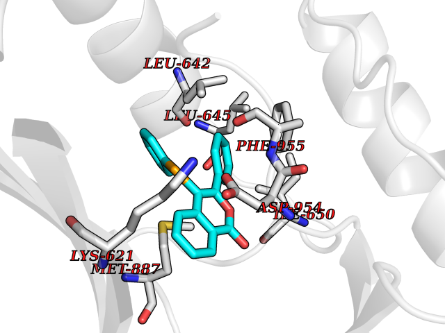 Target general information Gen name EIF2AK3 Organism Homo sapiens (Human) Uniprot ID TTD ID Synonyms PEK Protein family Protein kinase superfamily, Ser/Thr protein kinase family, GCN2 subfamily Biochemical class Kinase Function Converts phosphorylated eIF-2-alpha/EIF2S1 either in a global protein synthesis inhibitor, leading to a reduced overall utilization of amino acids, or to a translation initiation activator of specific mRNAs, such as the transcriptional activator ATF4, and hence allowing ATF4-mediated reprogramming of amino acid biosynthetic gene expression to alleviate nutrient depletion. Serves as a critical effector of unfolded protein response (UPR)-induced G1 growth arrest due to the loss of cyclin-D1 (CCND1). Involved in control of mitochondrial morphology and function. Metabolic-stress sensing protein kinase that phosphorylates the alpha subunit of eukaryotic translation initiation factor 2 (eIF-2-alpha/EIF2S1) on 'Ser-52' during the unfolded protein response (UPR) and in response to low amino acid availability. Related diseases Wolcott-Rallison syndrome (WRS) [MIM:226980]: A rare autosomal recessive disorder, characterized by permanent neonatal or early infancy insulin-dependent diabetes and, at a later age, epiphyseal dysplasia, osteoporosis, growth retardation and other multisystem manifestations, such as hepatic and renal dysfunctions, intellectual disability and cardiovascular abnormalities. {ECO:0000269|PubMed:10932183, ECO:0000269|PubMed:12086964, ECO:0000269|PubMed:12960215, ECO:0000269|PubMed:16813601, ECO:0000269|PubMed:24168455, ECO:0000269|PubMed:24194294, ECO:0000269|PubMed:27145240, ECO:0000269|PubMed:28220546, ECO:0000269|PubMed:30906465, ECO:0000269|PubMed:30922274, ECO:0000269|PubMed:32216767, ECO:0000269|PubMed:34123975}. The disease is caused by variants affecting the gene represented in this entry. Drugs (DrugBank ID) NA Interacts with Q9NZJ5; P11021 EC number EC 2.7.11.1 Uniprot keywords 3D-structure; ADP-ribosylation; ATP-binding; Diabetes mellitus; Disease variant; Endoplasmic reticulum; Glycoprotein; Kinase; Membrane; Nucleotide-binding; Phosphoprotein; Proteomics identification; Reference proteome; Serine/threonine-protein kinase; Signal; Stress response; Transferase; Translation regulation; Transmembrane; Transmembrane helix; Tyrosine-protein kinase; Unfolded protein response Protein physicochemical properties Chain ID A Molecular weight (Da) 29033.5 Length 248 Aromaticity 0.1 Instability index 43.71 Isoelectric point 7.75 Charge (pH=7) 1.27 3D Binding mode Sequence GRYLTDFEPIQCLGRGGVVFEAKNKVDDCNYAIKRIRLPNRELAREKVMREVKALAKLEHPGIVRYFNAWLEKNKVYLYIQMQLCRKENLKDWMNGRCTIEERERSVCLHIFLQIAEAVEFLHSKGLMHRDLKPSNIFFTMDDVVKVGDFGLVGTKLYMSPEQIHGNSYSHKVDIFSLGLILFELLYPFSTQMERVRTLTDVRNLKFPPLFTQKYPCEYVMVQDMLSPSPMERPEAINIIENAVFEDL Hydrogen bonds contact Hydrophobic contact | ||||