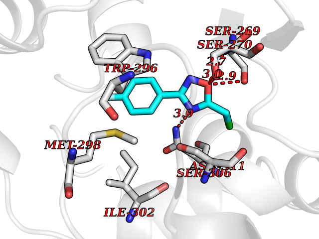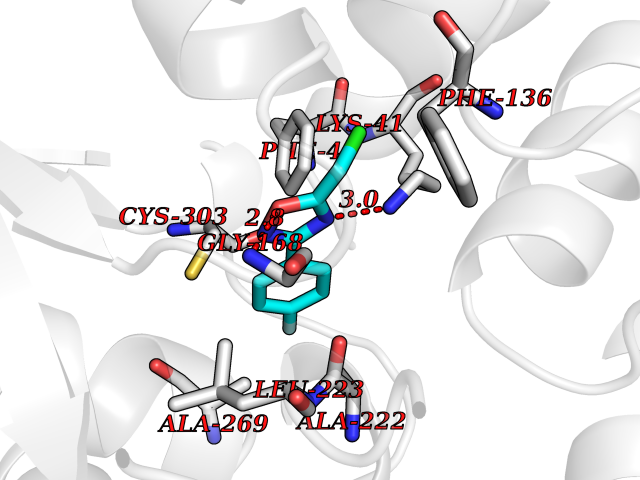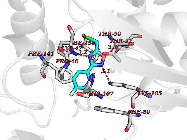 Target general information Gen name Malaria DXR Organism Plasmodium falciparum (isolate HB3) Uniprot ID TTD ID Synonyms IspC; DXR; DXP reductoisomerase; DOXP reductoisomerase; 2-C-Methyl-d-erythritol 4-phosphate synthase; 1-deoxyxylulose-5-phosphate reductoisomerase Protein family DXR family Biochemical class Short-chain dehydrogenases reductase Function Catalyzes the NADP-dependent rearrangement and reduction of 1-deoxy-D-xylulose-5-phosphate (DXP) to 2-C-methyl-D-erythritol 4-phosphate (MEP). Related diseases Ichthyosis, congenital, autosomal recessive 11 (ARCI11) [MIM:602400]: A form of autosomal recessive congenital ichthyosis, a disorder of keratinization with abnormal differentiation and desquamation of the epidermis, resulting in abnormal skin scaling over the whole body. The main skin phenotypes are lamellar ichthyosis (LI) and non-bullous congenital ichthyosiform erythroderma (NCIE), although phenotypic overlap within the same patient or among patients from the same family can occur. Lamellar ichthyosis is a condition often associated with an embedment in a collodion-like membrane at birth; skin scales later develop, covering the entire body surface. Non-bullous congenital ichthyosiform erythroderma characterized by fine whitish scaling on an erythrodermal background; larger brownish scales are present on the buttocks, neck and legs. {ECO:0000269|PubMed:17273967, ECO:0000269|PubMed:18843291}. The disease is caused by variants affecting the gene represented in this entry. Drugs (DrugBank ID) NA Interacts with NA EC number EC 1.1.1.267 Uniprot keywords 3D-structure; Apicoplast; Isoprene biosynthesis; Magnesium; Manganese; Metal-binding; NADP; Oxidoreductase; Plastid; Transit peptide Protein physicochemical properties Chain ID A Molecular weight (Da) 46644.4 Length 410 Aromaticity 0.09 Instability index 36.77 Isoelectric point 6.95 Charge (pH=7) -0.14 3D Binding mode Sequence PINVAIFGSTGSIGTNALNIIRECNKIENVFNVKALYVNKSVNELYEQAREFLPEYLCIHDKSVYEELKELVKNIKDYKPIILCGDEGMKEICSSNSIDKIVIGIDSFQGLYSTMYAIMNNKIVALANKESIVSAGFFLKKLLNIHKNAKIIPVDSEHSAIFQCLDNNKVLKTKCLQDNFSKINNINKIFLCSSGGPFQNLTMDELKNVTSENALKHPKWKMGKKITIDSATMMNKGLEVIETHFLFDVDYNDIEVIVHKECIIHSCVEFIDKSVISQMYYPDMQIPILYSLTWPDRIKTNLKPLDLAQVSTLTFHKPSLEHFPCIKLAYQAGIKGNFYPTVLNASNEIANNLFLNNKIKYFDISSIISQVLESFNSQKVSENSEDLMKQILQIHSWAKDKATDIYNKHN Hydrogen bonds contact Hydrophobic contact | ||||