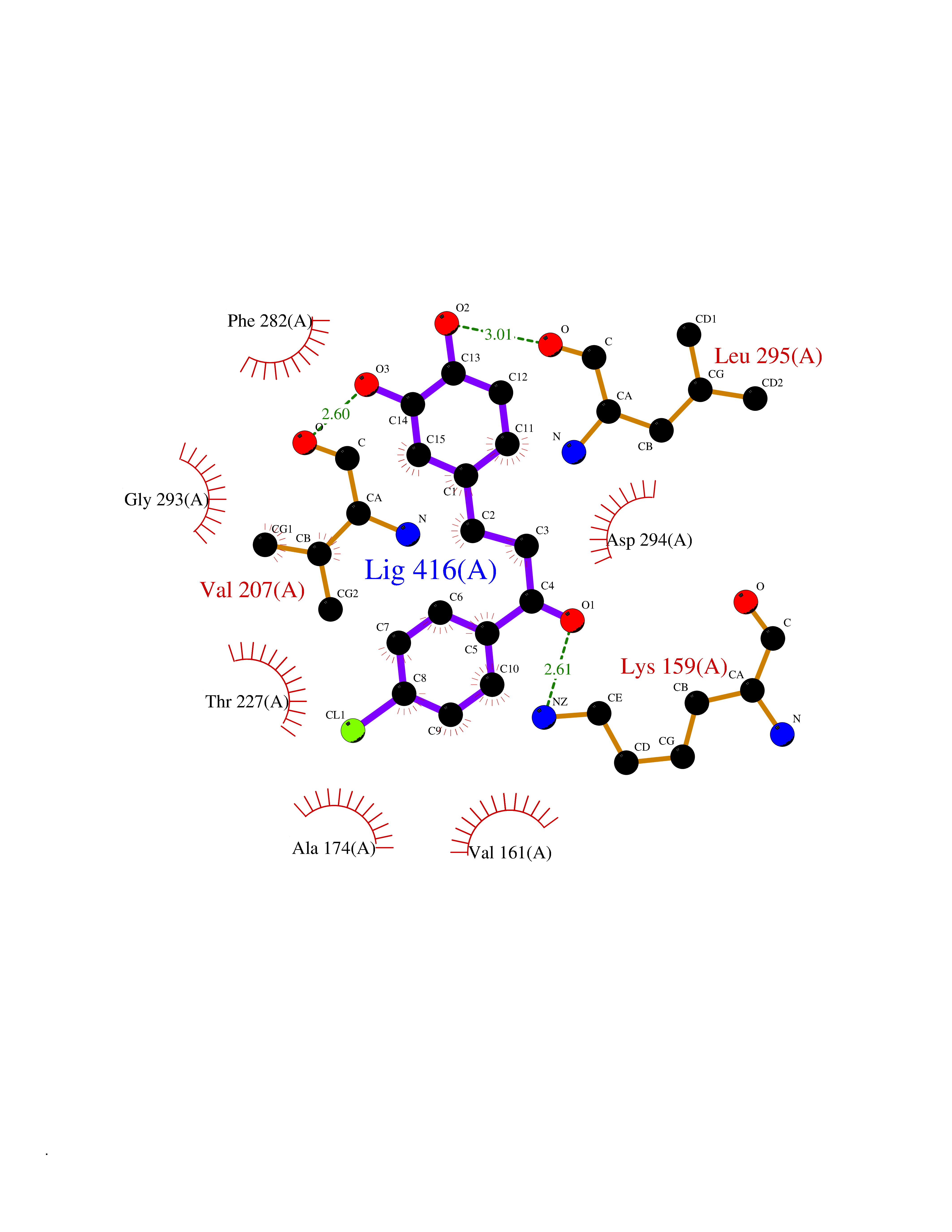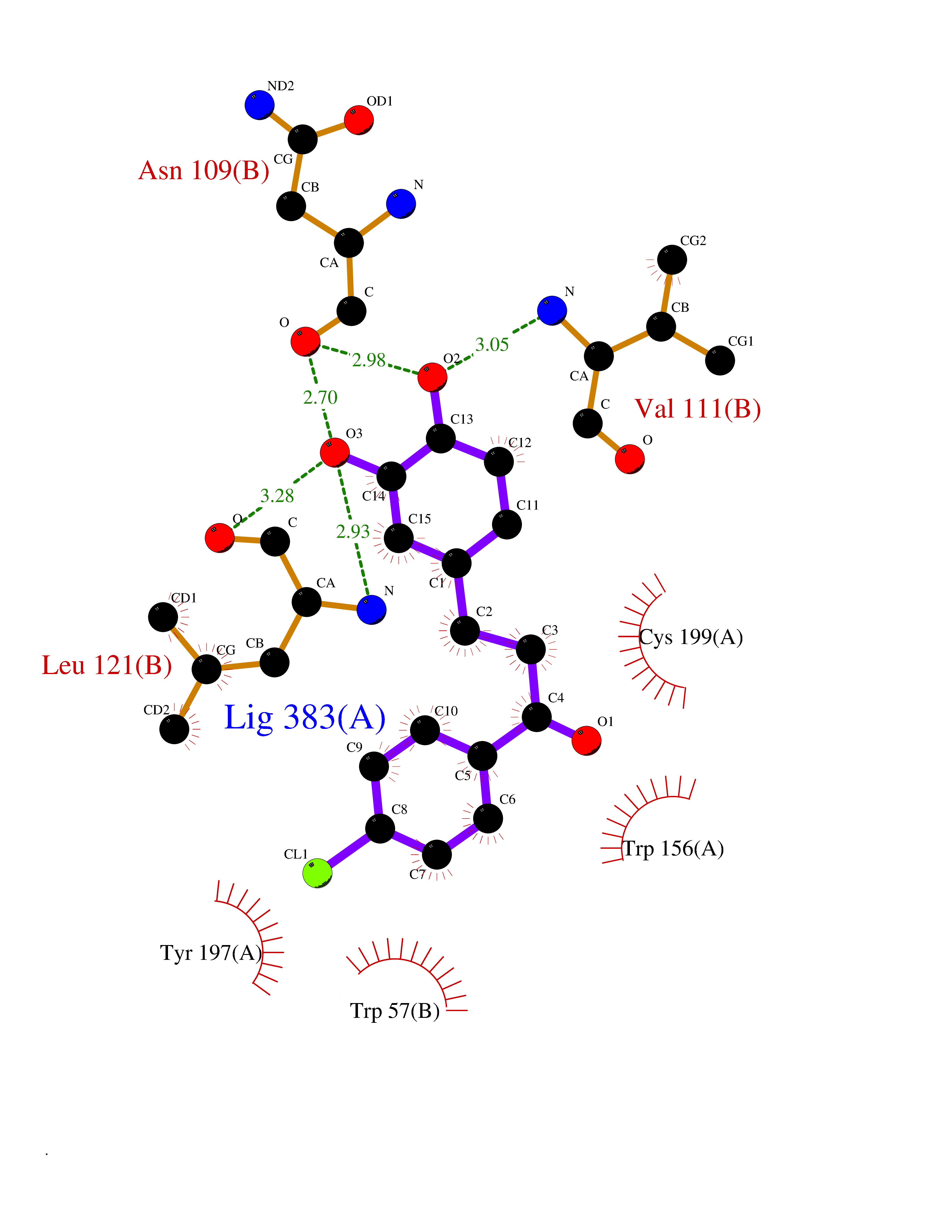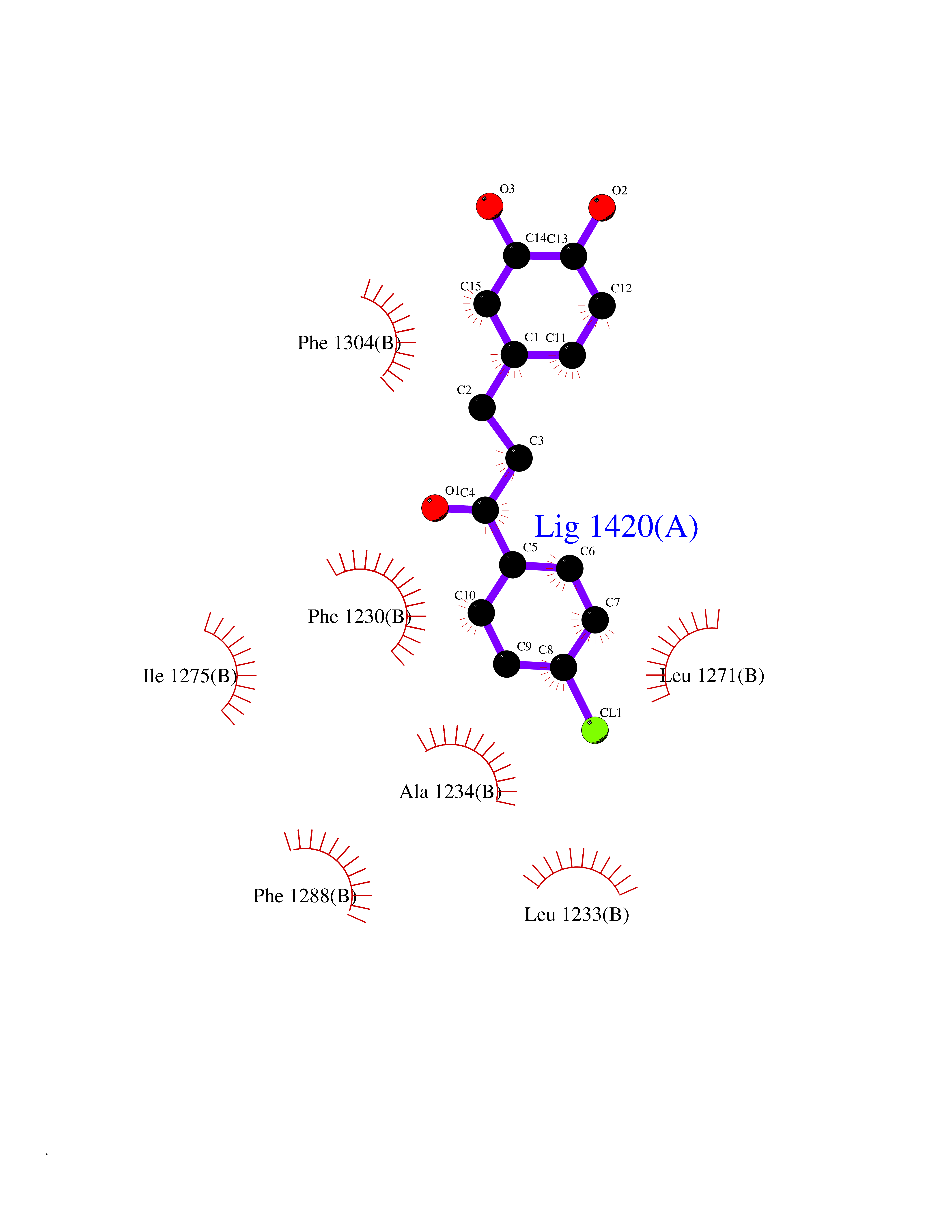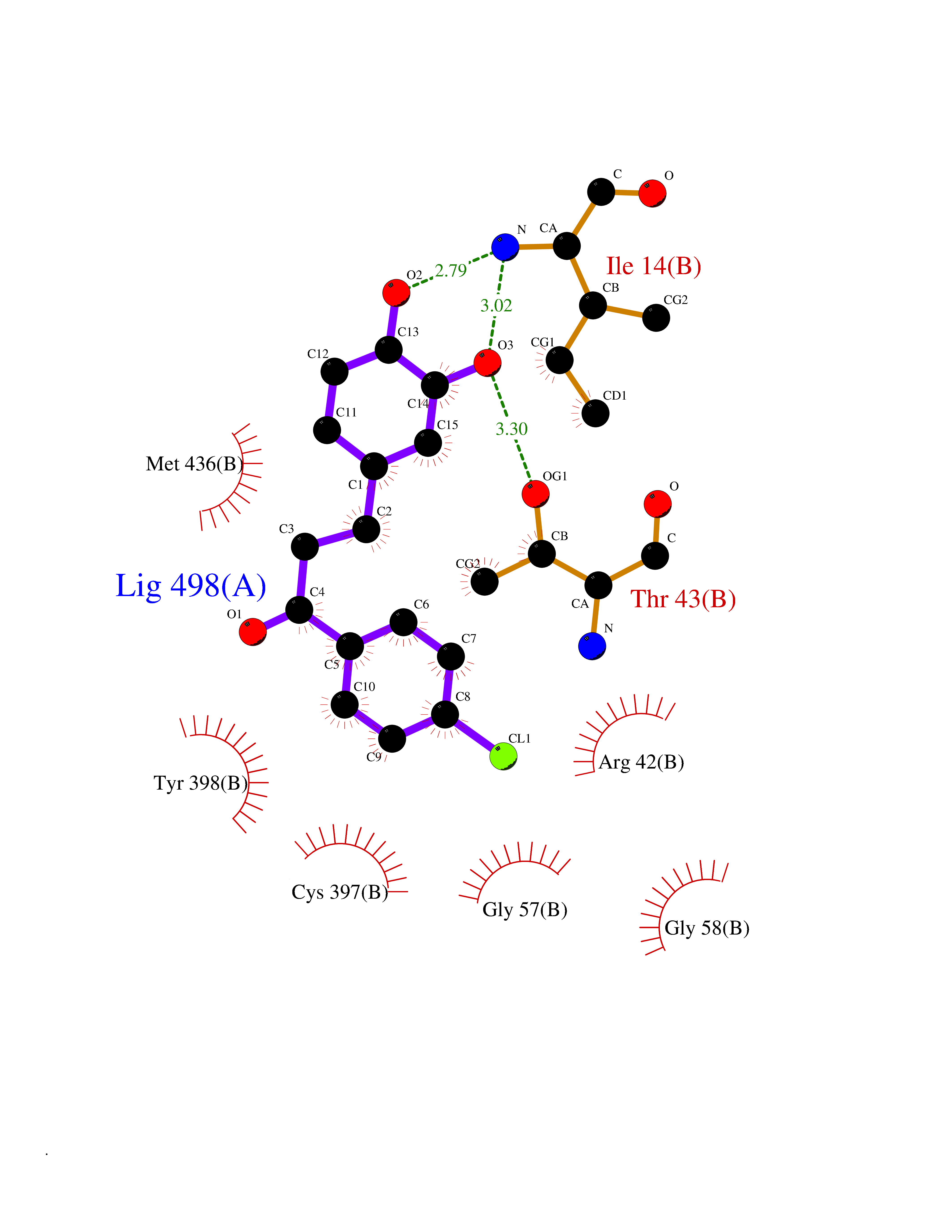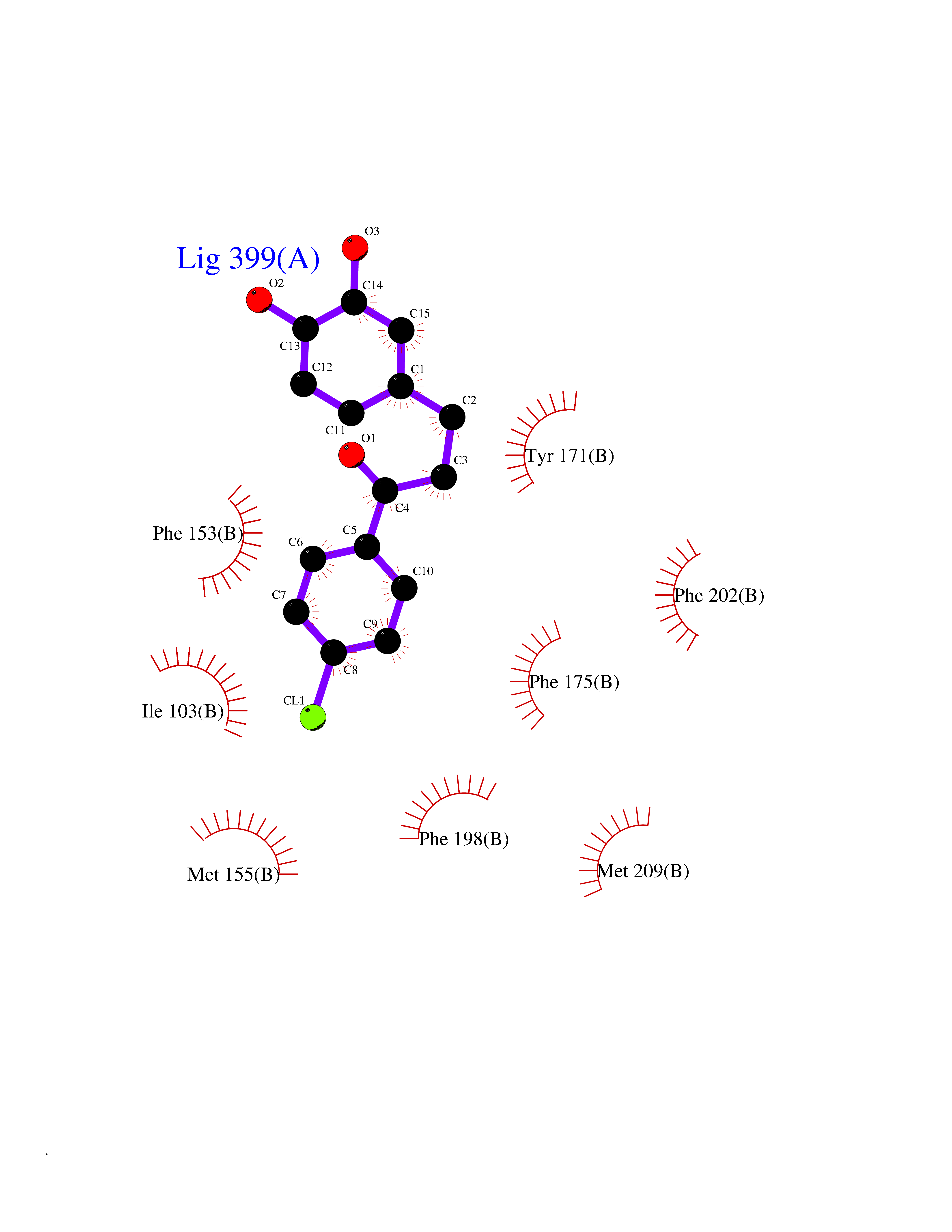 Target general information Gen name Bact fabF Organism Escherichia coli (strain K12) Uniprot ID TTD ID Synonyms KASB; KAS II; KAS 2; FabF; Condensing enzyme FabF; Beta-ketoacyl-acyl carrier protein synthase B; Beta-ketoacyl-ACP synthase II; Beta-ketoacyl-ACP synthase 2; 3-oxoacyl-[acyl-carrier-protein] synthase Protein family Thiolase-like superfamily, Beta-ketoacyl-ACP synthases family Biochemical class Acyltransferase Function Catalyzes the condensation reaction of fatty acid synthesis by the addition to an acyl acceptor of two carbons from malonyl-ACP. Has a preference for short chain acid substrates and may function to supply the octanoic substrates for lipoic acid biosynthesis. Related diseases Pigmentary disorder, reticulate, with systemic manifestations, X-linked (PDR) [MIM:301220]: An X-linked recessive disorder characterized by recurrent infections and sterile inflammation in various organs. Diffuse skin hyperpigmentation with a distinctive reticulate pattern is universally evident by early childhood. This is later followed in many patients by hypohidrosis, corneal inflammation and scarring, enterocolitis that resembles inflammatory bowel disease, and recurrent urethral strictures. Melanin and amyloid deposition is present in the dermis. Affected males also have a characteristic facies with frontally upswept hair and flared eyebrows. Female carriers have only restricted pigmentary changes along Blaschko's lines. {ECO:0000269|PubMed:27019227}. The disease is caused by variants affecting the gene represented in this entry. XLPDR is caused by a recurrent intronic mutation that results in missplicing and reduced POLA1 expression. This leads to a decrease in cytosolic RNA:DNA hybrids and constitutive activation of type I interferon responses, but has no effect on cell replication. {ECO:0000269|PubMed:27019227}.; DISEASE: Van Esch-O'Driscoll syndrome (VEODS) [MIM:301030]: An X-linked recessive syndrome characterized by different degrees of intellectual disability, moderate to severe short stature, microcephaly, hypogonadism, and variable congenital malformations. {ECO:0000269|PubMed:31006512}. The disease is caused by variants affecting the gene represented in this entry. Drugs (DrugBank ID) DB08366; DB01034; DB03017; DB08407 Interacts with P0A6Y8 EC number EC 2.3.1.179 Uniprot keywords 3D-structure; Acyltransferase; Direct protein sequencing; Fatty acid biosynthesis; Fatty acid metabolism; Lipid biosynthesis; Lipid metabolism; Reference proteome; Transferase Protein physicochemical properties Chain ID A Molecular weight (Da) 42852 Length 411 Aromaticity 0.06 Instability index 31.41 Isoelectric point 5.72 Charge (pH=7) -7.34 3D Binding mode Sequence KRRVVVTGLGMLSPVGNTVESTWKALLAGQSGISLIDHFDTSAYATKFAGLVKDFNCEDIISRKEQRKMDAFIQYGIVAGVQAMQDSGLEITEENATRIGAAIGSGIGGLGLIEENHTSLMNGGPRKISPFFVPSTIVNMVAGHLTIMYGLRGPSISIATAQTSGVHNIGHAARIIAYGDADVMVAGGAEKASTPLGVGGFGAARALSTRNDNPQAASRPWDKERDGFVLGDGAGMLVLEEYEHAKKRGAKIYAELVGFGMSSDAYHMTSPPENGAGAALAMANALRDAGIEASQIGYVNAHGTSTPAGDKAEAQAVKTIFGEAASRVLVSSTKSMTGHLLGAAGAVESIYSILALRDQAVPPTINLDNPDEGCDLDFVPHEARQVSGMEYTLCNSFGFGGTNGSLIFKKI Hydrogen bonds contact Hydrophobic contact | ||||