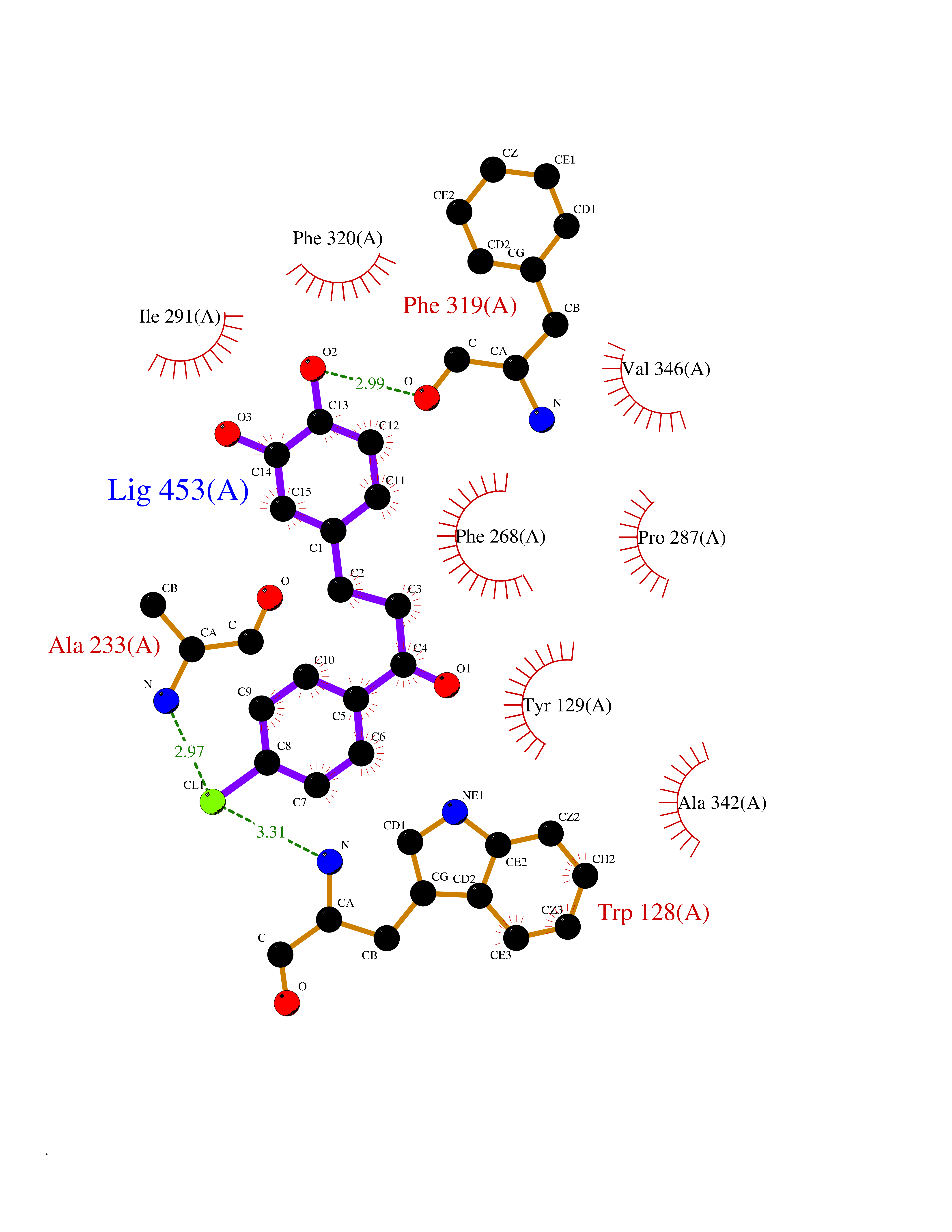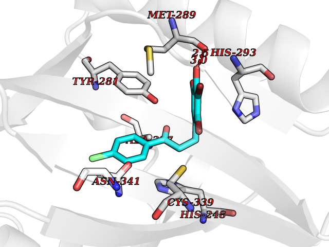 Target general information Gen name HDC Organism Homo sapiens (Human) Uniprot ID TTD ID Synonyms Human histidine decarboxylase Protein family Group II decarboxylase family Biochemical class Carbon-carbon lyase Function Catalyzes the biosynthesis of histamine from histidine. Related diseases Corticosterone methyloxidase 1 deficiency (CMO-1 deficiency) [MIM:203400]: Autosomal recessive disorder of aldosterone biosynthesis. There are two biochemically different forms of selective aldosterone deficiency be termed corticosterone methyloxidase (CMO) deficiency type 1 and type 2. In CMO-1 deficiency, aldosterone is undetectable in plasma, while its immediate precursor, 18-hydroxycorticosterone, is low or normal. {ECO:0000269|PubMed:11238478, ECO:0000269|PubMed:8439335, ECO:0000269|PubMed:9177280}. The disease is caused by variants affecting the gene represented in this entry.; DISEASE: Corticosterone methyloxidase 2 deficiency (CMO-2 deficiency) [MIM:610600]: Autosomal recessive disorder of aldosterone biosynthesis. In CMO-2 deficiency, aldosterone can be low or normal, but at the expense of increased secretion of 18-hydroxycorticosterone. Consequently, patients have a greatly increased ratio of 18-hydroxycorticosterone to aldosterone and a low ratio of corticosterone to 18-hydroxycorticosterone in serum. {ECO:0000269|PubMed:12788848, ECO:0000269|PubMed:1346492, ECO:0000269|PubMed:1594605, ECO:0000269|PubMed:9625333, ECO:0000269|PubMed:9814506}. The disease is caused by variants affecting the gene represented in this entry. Drugs (DrugBank ID) DB00117; DB00114 Interacts with Q86UW9 EC number EC 4.1.1.22 Uniprot keywords 3D-structure; Alternative splicing; Catecholamine biosynthesis; Decarboxylase; Lyase; Proteomics identification; Pyridoxal phosphate; Reference proteome Protein physicochemical properties Chain ID A,B,C,D,E,F Molecular weight (Da) 107706 Length 956 Aromaticity 0.1 Instability index 55.17 Isoelectric point 6.23 Charge (pH=7) -9.63 3D Binding mode Sequence GSMEPEEYRERGREMVDYICQYLSTVRERRVTPDVQPGYLRAQLPESAPEDPDSWDSIFGDIERIIMPGVVHWQSPHMHAYYPALTSWPSLLGDMLADAINCLGFTWASSPACTELEMNVMDWLAKMLGLPEHFLHHHPSSQGGGVLQSTVSESTLIALLAARKNKILEMKTSEPDADESSLNARLVAYASDQAHSSVEKAGLISLVKMKFLPVDDNFSLRGEALQKAIEEDKQRGLVPVFVCATLGTTGVCAFDXLSELGPICAREGLWLHIDAAYAGTAFLCPEFRGFLKGIEYADSFTFNPSKWMMVHFDCTGFWVKDKYKLQQTFSVNPIYLRHANSGVATDFMHWQIPLSRRFRSVKLWFVIRSFGVKNLQAHVRHGTEMAKYFESLVRNDPSFEIPAKRHLGLVVFRLKGPNSLTENVLKEIAKAGRLFLIPATIQDKLIIRFTVTSQFTTRDDILRDWNLIRDAATLILSQGSMEPEEYRERGREMVDYICQYLSTVRERRVTPDVQPGYLRAQLPESAPEDPDSWDSIFGDIERIIMPGVVHWQSPHMHAYYPALTSWPSLLGDMLADAINCLGFTWASSPACTELEMNVMDWLAKMLGLPEHFLHHHPSSQGGGVLQSTVSESTLIALLAARKNKILEMKTSEPDADESSLNARLVAYASDQAHSSVEKAGLISLVKMKFLPVDDNFSLRGEALQKAIEEDKQRGLVPVFVCATLGTTGVCAFDXLSELGPICAREGLWLHIDAAYAGTAFLCPEFRGFLKGIEYADSFTFNPSKWMMVHFDCTGFWVKDKYKLQQTFSVNPIYLRHANSGVATDFMHWQIPLSRRFRSVKLWFVIRSFGVKNLQAHVRHGTEMAKYFESLVRNDPSFEIPAKRHLGLVVFRLKGPNSLTENVLKEIAKAGRLFLIPATIQDKLIIRFTVTSQFTTRDDILRDWNLIRDAATLILSQ Hydrogen bonds contact Hydrophobic contact | ||||