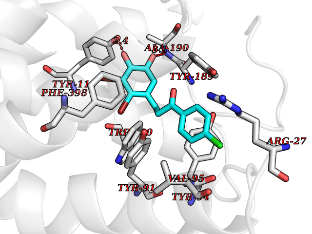 Target general information Gen name GRIK1 Organism Homo sapiens (Human) Uniprot ID TTD ID Synonyms Glutamate receptor 5; GluR5 kainate receptor; GluR5; GluR-5; GRIK1; Excitatory amino acid receptor 3; EAA3 Protein family Glutamate-gated ion channel (TC 1.A.10.1) family, GRIK1 subfamily Biochemical class Glutamate-gated ion channel Function Ionotropic glutamate receptor. L-glutamate acts as an excitatory neurotransmitter at many synapses in the central nervous system. Binding of the excitatory neurotransmitter L- glutamate induces a conformation change, leading tothe opening of the cation channel, and thereby converts the chemical signal to an electrical impulse. The receptor then desensitizes rapidly and enters a transient inactive state, characterized by the presence of bound agonist. May be involved in the transmission of light information from the retina to the hypothalamus. Related diseases Defects in PPARG can lead to type 2 insulin-resistant diabetes and hyptertension. PPARG mutations may be associated with colon cancer. {ECO:0000269|PubMed:10394368}.; DISEASE: Obesity (OBESITY) [MIM:601665]: A condition characterized by an increase of body weight beyond the limitation of skeletal and physical requirements, as the result of excessive accumulation of body fat. {ECO:0000269|PubMed:9753710}. Disease susceptibility may be associated with variants affecting the gene represented in this entry.; DISEASE: Lipodystrophy, familial partial, 3 (FPLD3) [MIM:604367]: A form of lipodystrophy characterized by marked loss of subcutaneous fat from the extremities. Facial adipose tissue may be increased, decreased or normal. Affected individuals show an increased preponderance of insulin resistance, diabetes mellitus and dyslipidemia. {ECO:0000269|PubMed:11788685, ECO:0000269|PubMed:12453919}. The disease is caused by variants affecting the gene represented in this entry.; DISEASE: Glioma 1 (GLM1) [MIM:137800]: Gliomas are benign or malignant central nervous system neoplasms derived from glial cells. They comprise astrocytomas and glioblastoma multiforme that are derived from astrocytes, oligodendrogliomas derived from oligodendrocytes and ependymomas derived from ependymocytes. {ECO:0000269|PubMed:10851250}. Disease susceptibility may be associated with variants affecting the gene represented in this entry. Polymorphic PPARG alleles have been found to be significantly over-represented among a cohort of American patients with sporadic glioblastoma multiforme suggesting a possible contribution to disease susceptibility. Drugs (DrugBank ID) DB00237; DB00142; DB06354; DB00273 Interacts with NA EC number NA Uniprot keywords 3D-structure; Alternative splicing; Cell membrane; Disulfide bond; Glycoprotein; Ion channel; Ion transport; Ligand-gated ion channel; Membrane; Phosphoprotein; Postsynaptic cell membrane; Proteomics identification; Receptor; Reference proteome; RNA editing; Signal; Synapse; Transmembrane; Transmembrane helix; Transport Protein physicochemical properties Chain ID A,B Molecular weight (Da) 29057.1 Length 256 Aromaticity 0.1 Instability index 24.38 Isoelectric point 8.3 Charge (pH=7) 1.97 3D Binding mode Sequence ANRTLIVTTILEEPYVMYRKSDKPLYGNDRFEGYCLDLLKELSNILGFIYDVKLVPDGKYGAQNDKGEWNGMVKELIDHRADLAVAPLTITYVREKVIDFSKPFMTLGISILYRKGTPIDSADDLAKQTKIEYGAVRDGSTMTFFKKSKISTYEKMWAFMSSRQQTALVRNSDEGIQRVLTTDYALLMESTSIEYVTQRNCNLTQIGGLIDSKGYGVGTPIGSPYRDKITIAILQLQEEGKLHMMKEKWWRGNGCP Hydrogen bonds contact Hydrophobic contact | ||||