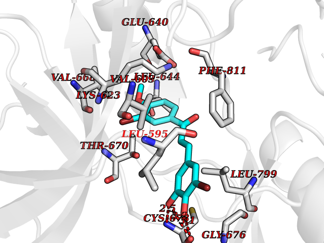Target general information Gen name BUB1 Organism Homo sapiens (Human) Uniprot ID TTD ID Synonyms hBUB1; Mitotic checkpoint serine/threonine-protein kinase BUB1; BUB1L; BUB1A Protein family Protein kinase superfamily, Ser/Thr protein kinase family, BUB1 subfamily Biochemical class Kinase Function Has a key role in the assembly of checkpoint proteins at the kinetochore, being required for the subsequent localization of CENPF, BUB1B, CENPE and MAD2L1. Required for the kinetochore localization of PLK1. Required for centromeric enrichment of AUKRB in prometaphase. Plays an important role in defining SGO1 localization and thereby affects sister chromatid cohesion. Acts as a substrate for anaphase-promoting complex or cyclosome (APC/C) in complex with its activator CDH1 (APC/C-Cdh1). Necessary for ensuring proper chromosome segregation and binding to BUB3 is essential for this function. Can regulate chromosome segregation in a kinetochore-independent manner. Can phosphorylate BUB3. The BUB1-BUB3 complex plays a role in the inhibition of APC/C when spindle-assembly checkpoint is activated and inhibits the ubiquitin ligase activity of APC/C by phosphorylating its activator CDC20. This complex can also phosphorylate MAD1L1. Kinase activity is essential for inhibition of APC/CCDC20 and for chromosome alignment but does not play a major role in the spindle-assembly checkpoint activity. Mediates cell death in response to chromosome missegregation and acts to suppress spontaneous tumorigenesis. Serine/threonine-protein kinase that performs 2 crucial functions during mitosis: it is essential for spindle-assembly checkpoint signaling and for correct chromosome alignment. Related diseases Microcephaly 30, primary, autosomal recessive (MCPH30) [MIM:620183]: A form of microcephaly, a disease defined as a head circumference more than 3 standard deviations below the age, sex and ethnically matched mean. Brain weight is markedly reduced and the cerebral cortex is disproportionately small. MCPH30 is characterized by small head, poor overall growth, and global developmental delay with variably impaired intellectual development. Affected individuals may also have variable congenital anomalies, including atrial septal defect, dysmorphic facial features, tracheal stenosis, and anomalies of the skin and teeth. {ECO:0000269|PubMed:35044816}. The disease is caused by variants affecting the gene represented in this entry. Drugs (DrugBank ID) NA Interacts with O95376; O60566; O43684; P46108; Q8NG31; Q8NG31-2; Q9GZQ8; P03070 EC number EC 2.7.11.1 Uniprot keywords 3D-structure; Alternative splicing; Apoptosis; ATP-binding; Cell cycle; Cell division; Centromere; Chromosome; Chromosome partition; Host-virus interaction; Intellectual disability; Kinase; Kinetochore; Mitosis; Nucleotide-binding; Nucleus; Phosphoprotein; Primary microcephaly; Proteomics identification; Reference proteome; Serine/threonine-protein kinase; Transferase; Ubl conjugation Protein physicochemical properties Chain ID A Molecular weight (Da) 39564.8 Length 343 Aromaticity 0.12 Instability index 31.17 Isoelectric point 8.49 Charge (pH=7) 4.7 3D Binding mode Sequence APNFIVGNPWDDKLIFKLLSGLSKPVSSYPNTFEWQCKLPAIKPKTEFQLGSKLVYVHHLLGEGAFAQVYEATQKNKQKFVLKVQKPANPWEFYIGTQLMERLKPSMQHMFMKFYSAHLFQNGSVLVGELYSYGTLLNAINLYKNTPEKVMPQGLVISFAMRMLYMIEQVHDCEIIHGDIKPDNFILGNGFLEQDDEDDLSAGLALIDLGQSIDMKLFPKGTIFTAKCETXGFQCVEMLSNKPWNYQIDYFGVAATVYCMLFGTYMKVKNEECKPEGLFRRLPHLDMWNEFFHVMLNIPDCHHLPSLDLLRQKLKKVFQQHYTNKIRALRNRLIVLLLECKRS Hydrogen bonds contact Hydrophobic contact | ||||