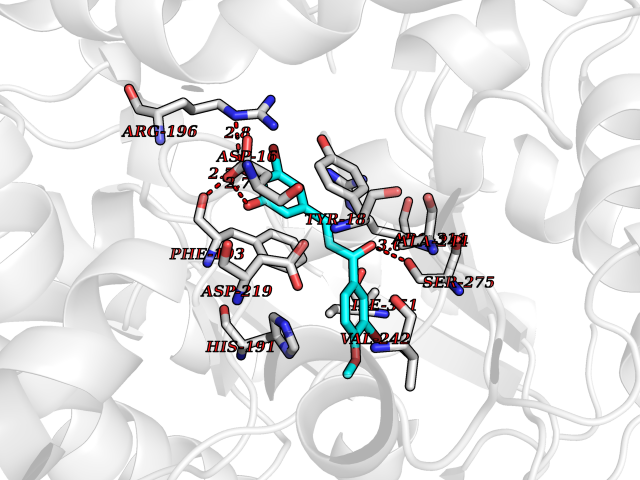 Target general information Gen name NAMPT Organism Homo sapiens (Human) Uniprot ID TTD ID Synonyms Visfatin; PreBcell colonyenhancing factor 1; PreB cellenhancing factor; Pre-B-cell colony-enhancing factor 1; Pre-B cell-enhancing factor; PBEF1; PBEF; Nampt; NAmPRTase Protein family NAPRTase family Biochemical class Glycosyltransferases Function It is the rate limiting component in the mammalian NAD biosynthesis pathway. The secreted form behaves both as a cytokine with immunomodulating properties and an adipokine with anti-diabetic properties, it has no enzymatic activity, partly because of lack of activation by ATP, which has a low level in extracellular space and plasma. Plays a role in the modulation of circadian clock function. NAMPT-dependent oscillatory production of NAD regulates oscillation of clock target gene expression by releasing the core clock component: CLOCK-ARNTL/BMAL1 heterodimer from NAD-dependent SIRT1-mediated suppression. Catalyzes the condensation of nicotinamide with 5-phosphoribosyl-1-pyrophosphate to yield nicotinamide mononucleotide, an intermediate in the biosynthesis of NAD. Related diseases Hemolytic anemia, non-spherocytic, due to glucose phosphate isomerase deficiency (HA-GPID) [MIM:613470]: A form of anemia in which there is no abnormal hemoglobin or spherocytosis. It is caused by glucose phosphate isomerase deficiency. {ECO:0000269|PubMed:28803808, ECO:0000269|PubMed:7989588, ECO:0000269|PubMed:8499925, ECO:0000269|PubMed:8822952, ECO:0000269|PubMed:8822954, ECO:0000269|PubMed:9446754, ECO:0000269|PubMed:9856489}. The disease is caused by variants affecting the gene represented in this entry. Drugs (DrugBank ID) DB12980; DB12731; DB05217 Interacts with P02792; Q01628; P03886; P43490; Q70CQ1-2 EC number EC 2.4.2.12 Uniprot keywords 3D-structure; Acetylation; Biological rhythms; Cytokine; Cytoplasm; Glycosyltransferase; Nucleus; Phosphoprotein; Proteomics identification; Pyridine nucleotide biosynthesis; Reference proteome; Secreted; Transferase Protein physicochemical properties Chain ID A,B Molecular weight (Da) 105483 Length 932 Aromaticity 0.11 Instability index 34.4 Isoelectric point 6.68 Charge (pH=7) -2.24 3D Binding mode Sequence EFNILLATDSYKVTHYKQYPPNTSKVYSYFECREKKYEETVFYGLQYILNKYLKGKVVTKEKIQEAKDVYKEHFQDDVFNEKGWNYILEKYDGHLPIEIKAVPEGFVIPRGNVLFTVENTDPECYWLTNWIETILVQSWYPITVATNSREQKKILAKYLLETSGNLDGLEYKLHDFGYRGVSSQETAGIGASAHLVNFKGTDTVAGLALIKKYYGTKDPVPGYSVPAAEHSTITAWGKDHEKDAFEHIVTQFSSVPVSVVSDSYDIYNACEKIWGEDLRHLIVSRSTQAPLIIRPDSGNPLDTVLKVLEILGKKFPVTENSKGYKLLPPYLRVIQGDGVDINTLQEIVEGMKQKMWSIENIAFGSGGGLLQKLTRDLLNCSFKCSYVVTNGLGINVFKDPVADPNKRSKKGRLSLHRTPAGNFVTLEEGKGDLEEYGQDLLHTVFKNGKVTKSYSFDEIRKNAQLNEFNILLATDSYKVTHYKQYPPNTSKVYSYFECREKKYEETVFYGLQYILNKYLKGKVVTKEKIQEAKDVYKEHFQDDVFNEKGWNYILEKYDGHLPIEIKAVPEGFVIPRGNVLFTVENTDPECYWLTNWIETILVQSWYPITVATNSREQKKILAKYLLETSGNLDGLEYKLHDFGYRGVSSQETAGIGASAHLVNFKGTDTVAGLALIKKYYGTKDPVPGYSVPAAEHSTITAWGKDHEKDAFEHIVTQFSSVPVSVVSDSYDIYNACEKIWGEDLRHLIVSRSTQAPLIIRPDSGNPLDTVLKVLEILGKKFPVTENSKGYKLLPPYLRVIQGDGVDINTLQEIVEGMKQKMWSIENIAFGSGGGLLQKLTRDLLNCSFKCSYVVTNGLGINVFKDPVADPNKRSKKGRLSLHRTPAGNFVTLEEGKGDLEEYGQDLLHTVFKNGKVTKSYSFDEIRKNAQLN Hydrogen bonds contact Hydrophobic contact | ||||