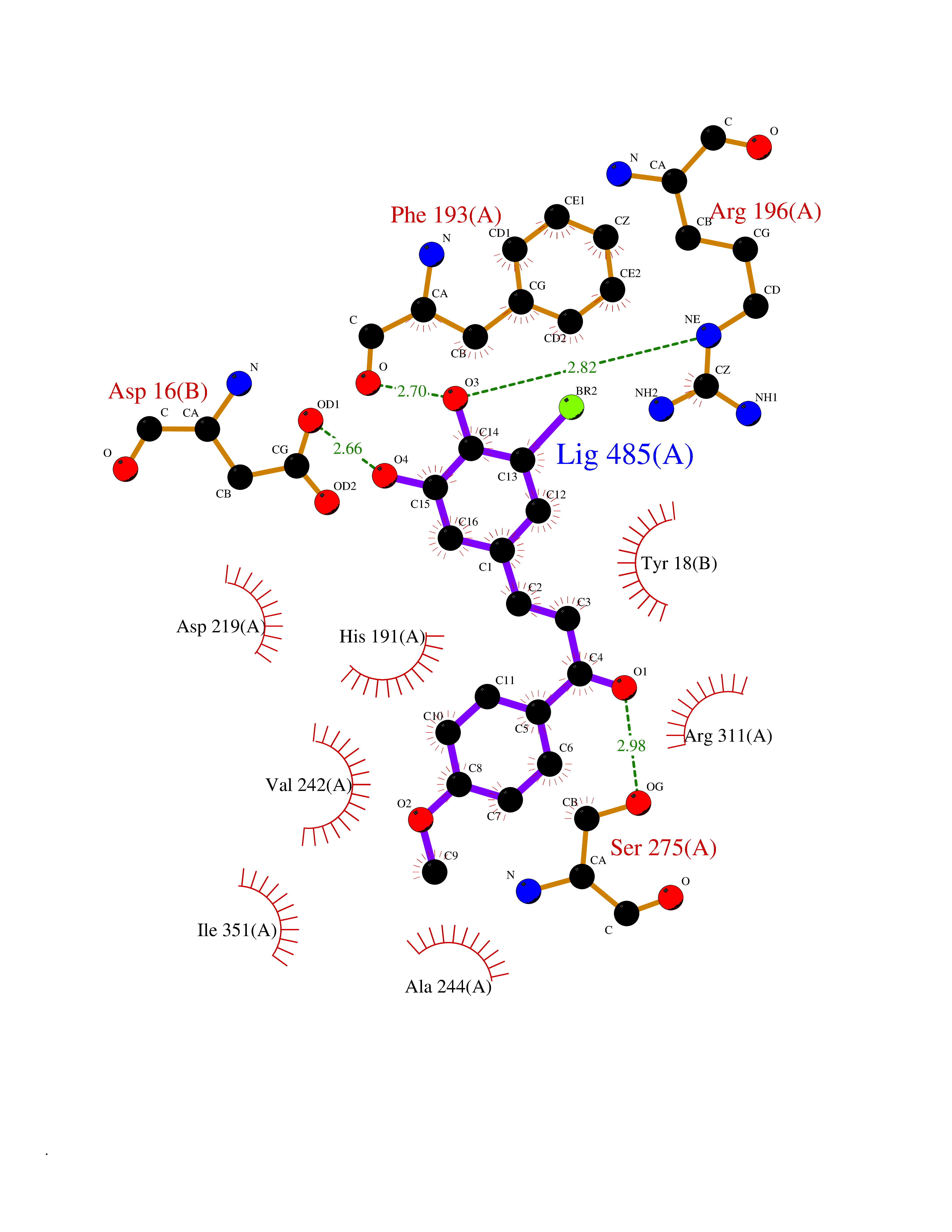 Target general information Gen name KDM1B Organism Homo sapiens (Human) Uniprot ID TTD ID Synonyms Lysine-specific histone demethylase 2; LSD2; Flavin-containing amine oxidase domain-containing protein 1; C6orf193; AOF1 Protein family Flavin monoamine oxidase family Biochemical class CH-NH(2) donor oxidoreductase Function Required for de novo DNA methylation of a subset of imprinted genes during oogenesis. Acts by oxidizing the substrate by FAD to generate the corresponding imine that is subsequently hydrolyzed. Demethylates both mono- and di-methylated 'Lys-4' of histone H3. Has no effect on tri-methylated 'Lys-4', mono-, di- or tri-methylated 'Lys-9', mono-, di- or tri-methylated 'Lys-27', mono-, di- or tri-methylated 'Lys-36' of histone H3, or on mono-, di- or tri-methylated 'Lys-20' of histone H4. Histone demethylase that demethylates 'Lys-4' of histone H3, a specific tag for epigenetic transcriptional activation, thereby acting as a corepressor. Related diseases Angioedema, hereditary, 1 (HAE1) [MIM:106100]: An autosomal dominant disorder characterized by episodic local swelling involving subcutaneous or submucous tissue of the upper respiratory and gastrointestinal tracts, face, extremities, and genitalia. Hereditary angioedema due to C1 esterase inhibitor deficiency is comprised of two clinically indistinguishable forms. In hereditary angioedema type 1, serum levels of C1 esterase inhibitor are decreased, while in type 2, the levels are normal or elevated, but the protein is non-functional. {ECO:0000269|PubMed:12773530, ECO:0000269|PubMed:1363816, ECO:0000269|PubMed:1451784, ECO:0000269|PubMed:14635117, ECO:0000269|PubMed:16409206, ECO:0000269|PubMed:2118657, ECO:0000269|PubMed:2296585, ECO:0000269|PubMed:22994404, ECO:0000269|PubMed:2365061, ECO:0000269|PubMed:24456027, ECO:0000269|PubMed:3178731, ECO:0000269|PubMed:7814636, ECO:0000269|PubMed:7883978, ECO:0000269|PubMed:8172583, ECO:0000269|PubMed:8529136, ECO:0000269|PubMed:8755917, ECO:0000269|Ref.41}. The disease is caused by variants affecting the gene represented in this entry. Drugs (DrugBank ID) NA Interacts with Q96L03 EC number EC 1.-.-.- Uniprot keywords 3D-structure; Alternative splicing; Chromatin regulator; Chromosome; Developmental protein; FAD; Flavoprotein; Metal-binding; Nucleus; Oxidoreductase; Phosphoprotein; Proteomics identification; Reference proteome; Repressor; Transcription; Transcription regulation; Zinc; Zinc-finger Protein physicochemical properties Chain ID A,C Molecular weight (Da) 85795.5 Length 763 Aromaticity 0.1 Instability index 37.87 Isoelectric point 8.41 Charge (pH=7) 9.16 3D Binding mode Sequence GSRKCEKAGCTATCPVCFASASERCAKNGYTSRWYHLSCGEHFCNECFDHYYRSHKDGYDKYTTWKKIWTSNGKTEPSPKAFMADQQLPYWVQCTKPECRKWRQLTKEIQLTPQIAKTYRCGMKSDHCSLPEDLRVLEVSNHWWYSMLILPPLLKDSVAAPLLSAYYPDCVGMSPSCTGMNRYFQPFYQPNECGKALCVRPDVMELDELYEFPEYSRDPTMYLALRNLILALWYTNCKEALTPQKCIPHIIVRGLVRIRCVQEVERILYFMTRKGLINTGVLSVGADQYLLPKDYHNKSVIIIGAGPAGLAAARQLHNFGIKVTVLEAKDRIGGRVWDDKSFKGVTVGRGAQIVNGCINNPVALMCEQLGISMHKFGERCDLIQEGGRITDPTIDKRMDFHFNALLDVVSEWRKDKTQLQDVPLGEKIEEIYKAFIKESGIQFSELEGQVLQFHLSNLEYACGSNLHQVSARSWDHNEFFAQFAGDHTLLTPGYSVIIEKLAEGLDIQLKSPVQCIDYSGDEVQVTTTDGTGYSAQKVLVTVPLALLQKGAIQFNPPLSEKKMKAINSLGAGIIEKIALQFPYRFWDSKVQGADFFGHVPPSASKRGLFAVFYDMDPQKKHSVLMSVIAGEAVASVRTLDDKQVLQQCMATLRELFKEQEVPDPTKYFVTRWSTDPWIQMAYSFVKTGGSGEAYDIIAEDIQGTVFFAGEATNRHFPQTVTGAYLSGVREASKIAAFARTMQTARKSTGGKAPRKQLATKAAR Hydrogen bonds contact Hydrophobic contact | ||||