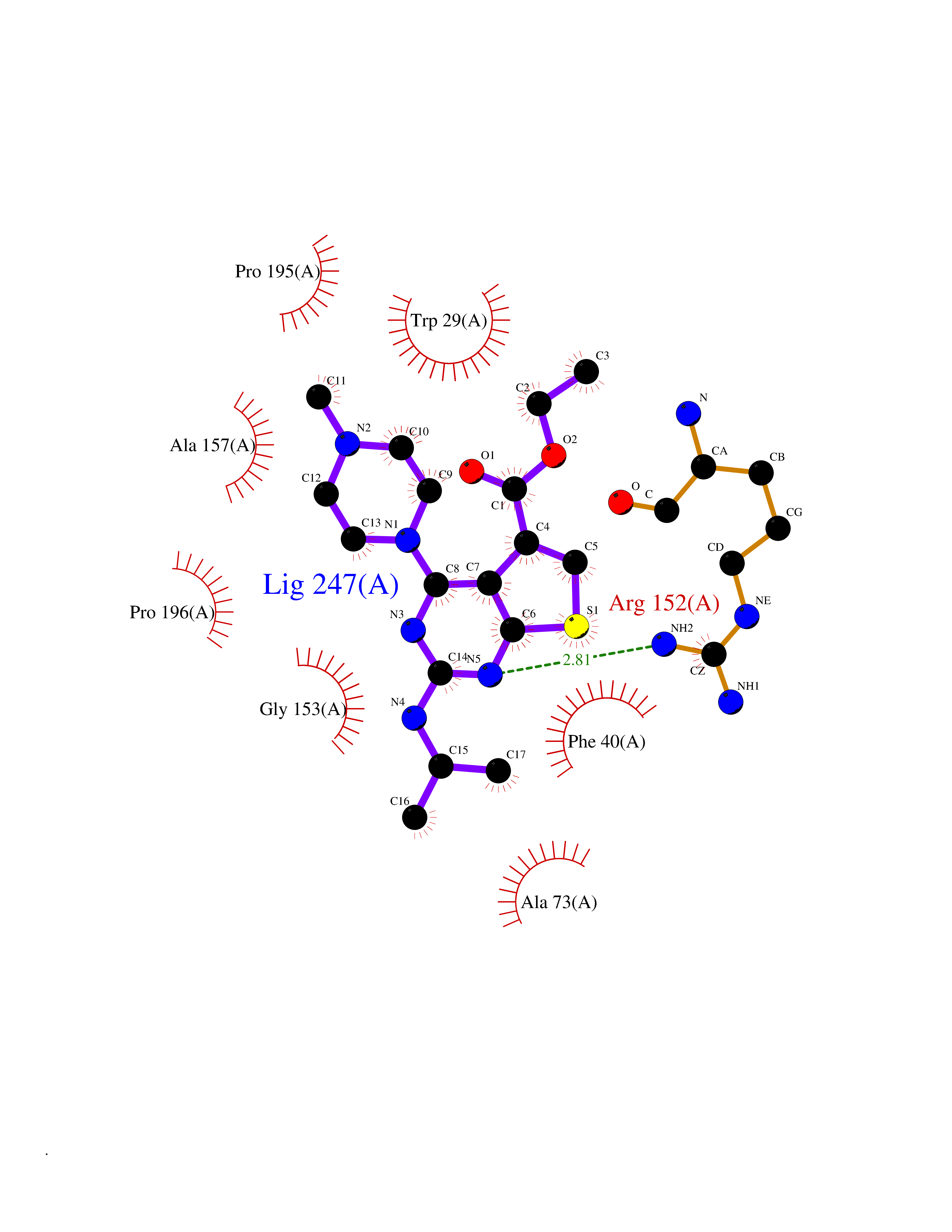 Target general information Gen name TPMT Organism Homo sapiens (Human) Uniprot ID TTD ID NA Synonyms NA Protein family Class I-like SAM-binding methyltransferase superfamily, TPMT family Biochemical class Transferase Function Thiopurine S-methyltransferase activity. Related diseases Cerebral creatine deficiency syndrome 3 (CCDS3) [MIM:612718]: An autosomal recessive disorder characterized by developmental delay/regression, intellectual disability, severe disturbance of expressive and cognitive speech, and severe depletion of creatine/phosphocreatine in the brain. Most patients develop a myopathy characterized by muscle weakness and atrophy later in life. {ECO:0000269|PubMed:11555793, ECO:0000269|PubMed:20682460, ECO:0000269|PubMed:22386973, ECO:0000269|PubMed:23660394, ECO:0000269|PubMed:23770102, ECO:0000269|PubMed:26490222, ECO:0000269|PubMed:27233232}. The disease is caused by variants affecting the gene represented in this entry.; DISEASE: Fanconi renotubular syndrome 1 (FRTS1) [MIM:134600]: A form of Fanconi renotubular syndrome, a disease due to a generalized dysfunction of the proximal kidney tubule resulting in decreased solute and water reabsorption. Patients have polydipsia and polyuria with phosphaturia, glycosuria and aminoaciduria. They may develop hypophosphatemic rickets or osteomalacia, acidosis and a tendency toward dehydration. Some eventually develop renal insufficiency. FRTS1 inheritance is autosomal dominant. {ECO:0000269|PubMed:29654216}. The disease is caused by variants affecting the gene represented in this entry. Drugs (DrugBank ID) DB00993; DB00436; DB01327; DB01033; DB01250; DB01021 Interacts with Q8TAP4-4; Q15047-2; P61981 EC number 2.1.1.67 Uniprot keywords 3D-structure; Acetylation; Cytoplasm; Direct protein sequencing; Methyltransferase; Phosphoprotein; Proteomics identification; Reference proteome; S-adenosyl-L-methionine; Transferase Protein physicochemical properties Chain ID A Molecular weight (Da) 25971.5 Length 229 Aromaticity 0.12 Instability index 32.58 Isoelectric point 6.74 Charge (pH=7) -0.6 3D Binding mode Sequence EVQKNQVLTLEEWQDKWVNGKTAFHQEQGHQLLKKHLDTFLKGKSGLRVFFPLCGKAVEXKWFADRGHSVVGVEISELGIQEFFTEQNLSYSEEPITEIPGTKVFKSSSGNISLYCCSIFDLPRTNIGKFDXIWDRGALVAINPGDRKCYADTXFSLLGKKFQYLLCVLSYDPTKHPGPPFYVPHAEIERLFGKICNIRCLEKVDAFEERHKSWGIDCLFEKLYLLTEK Hydrogen bonds contact Hydrophobic contact | ||||