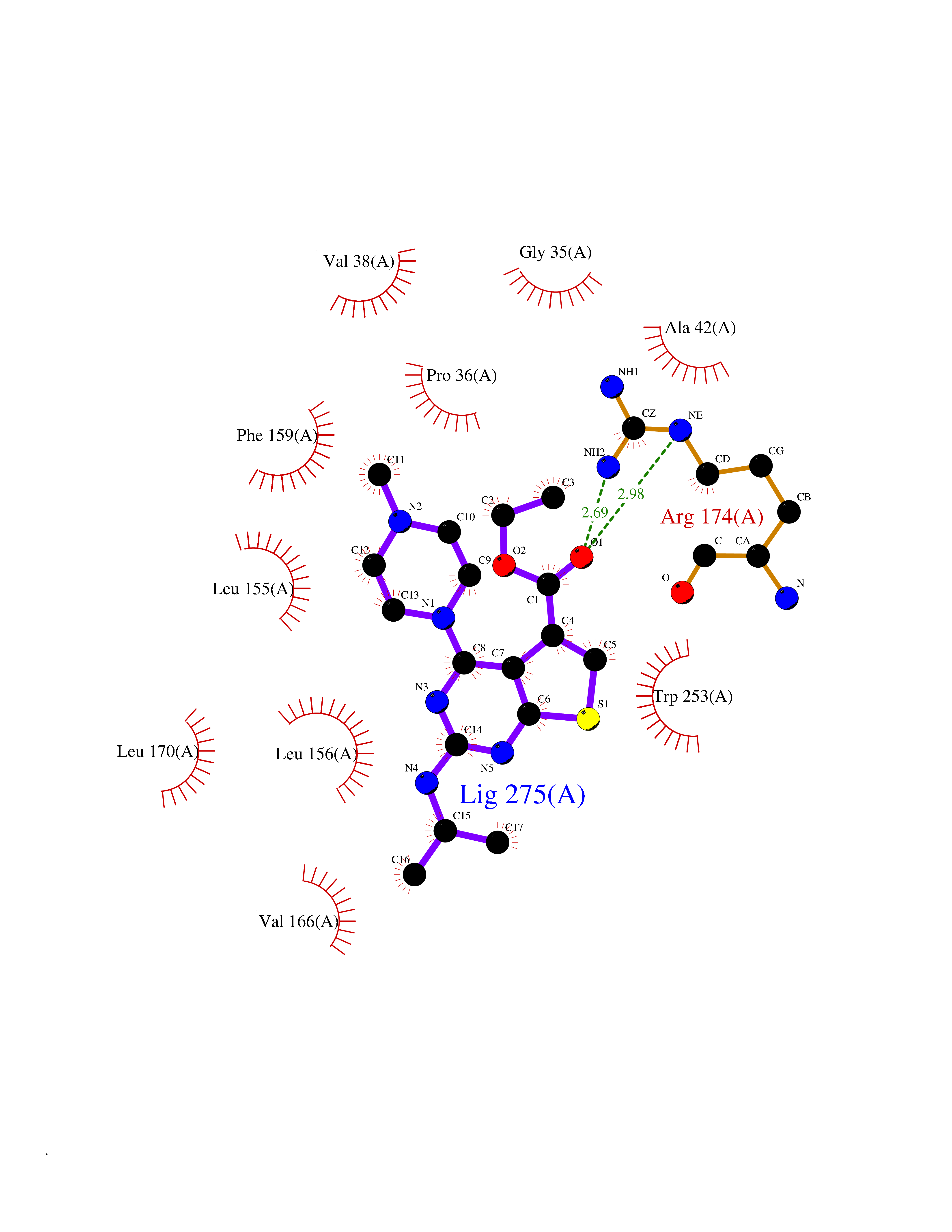 Target general information Gen name GAMT Organism Homo sapiens (Human) Uniprot ID TTD ID NA Synonyms NA Protein family Class I-like SAM-binding methyltransferase superfamily, RMT2 methyltransferase family Biochemical class Transferase Function Guanidinoacetate N-methyltransferase activity.Methyltransferase activity. Related diseases Cerebral creatine deficiency syndrome 2 (CCDS2) [MIM:612736]: An autosomal recessive disorder characterized by developmental delay and regression, intellectual disability, severe disturbance of expressive and cognitive speech, intractable seizures, movement disturbances, severe depletion of creatine and phosphocreatine in the brain, and accumulation of guanidinoacetic acid in brain and body fluids. {ECO:0000269|PubMed:12468279, ECO:0000269|PubMed:15108290, ECO:0000269|PubMed:15651030, ECO:0000269|PubMed:16293431, ECO:0000269|PubMed:16855203, ECO:0000269|PubMed:17101918, ECO:0000269|PubMed:17466557, ECO:0000269|PubMed:19388150, ECO:0000269|PubMed:23660394, ECO:0000269|PubMed:24415674, ECO:0000269|PubMed:8651275}. The disease is caused by variants affecting the gene represented in this entry. Drugs (DrugBank ID) DB00148; DB02751; DB00536; DB13191; DB01752 Interacts with O95363; Q969Q5; Q9HCM9-2 EC number 2.1.1.2 Uniprot keywords 3D-structure; Acetylation; Alternative splicing; Disease variant; Methyltransferase; Proteomics identification; Reference proteome; S-adenosyl-L-methionine; Transferase Protein physicochemical properties Chain ID A,B,C,D Molecular weight (Da) 24656 Length 219 Aromaticity 0.11 Instability index 46.5 Isoelectric point 5.91 Charge (pH=7) -4.34 3D Binding mode Sequence PAWGAAPAAYDAADTHLRILGKPVMERWETPYMHALAAAASSKGGRVLEVGFGMAIAASKVQEAPIDEHWIIECNDGVFQRLRDWAPRQTHKVIPLKGLWEDVAPTLPDGHFDGILYDTYPLSEETWHTHQFNFIKNHAFRLLKPGGVLTYCNLTSWGELMKSKYSDITIMFEETQVPALLEAGFRRENIRTEVMALVPPADCRYYAFPQMITPLVTKG Hydrogen bonds contact Hydrophobic contact | ||||