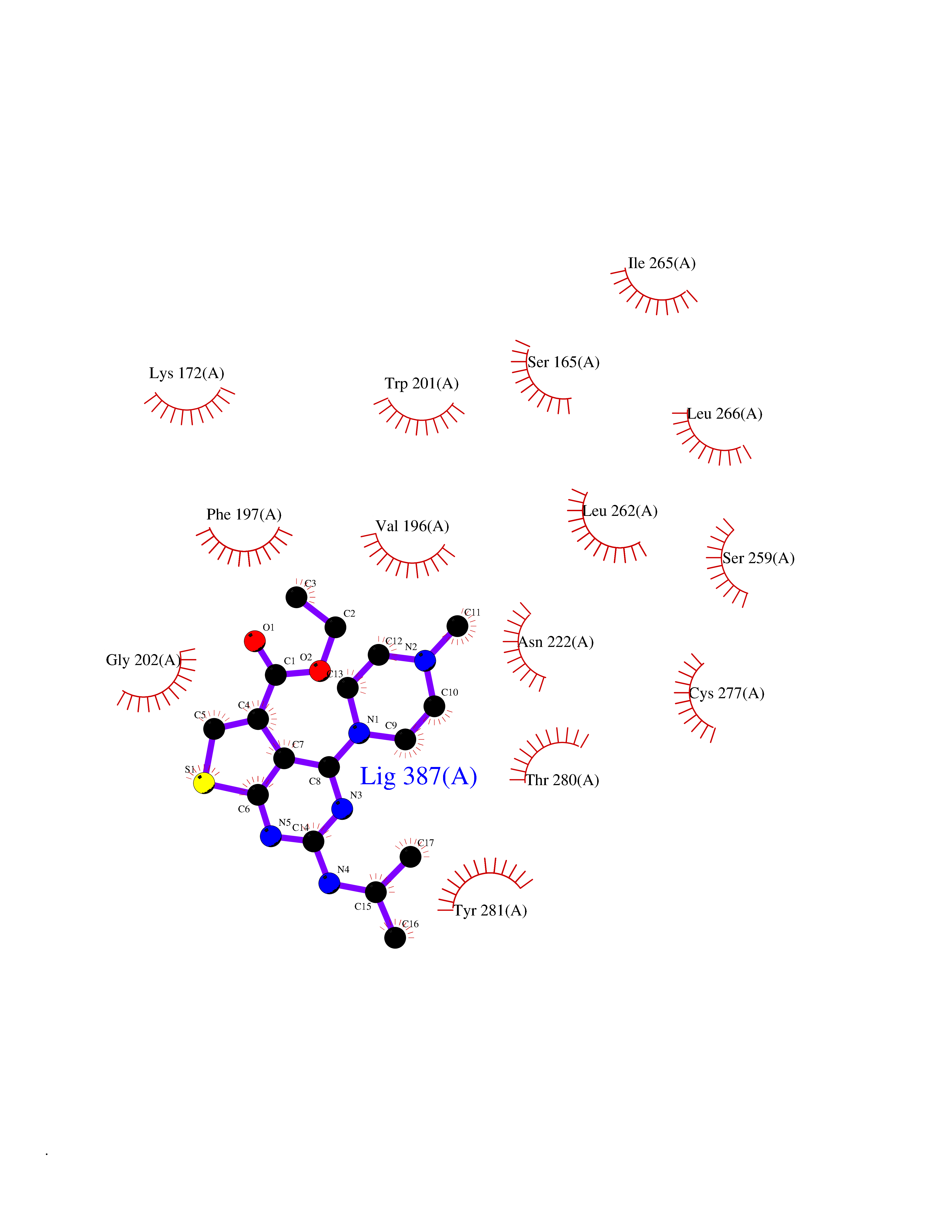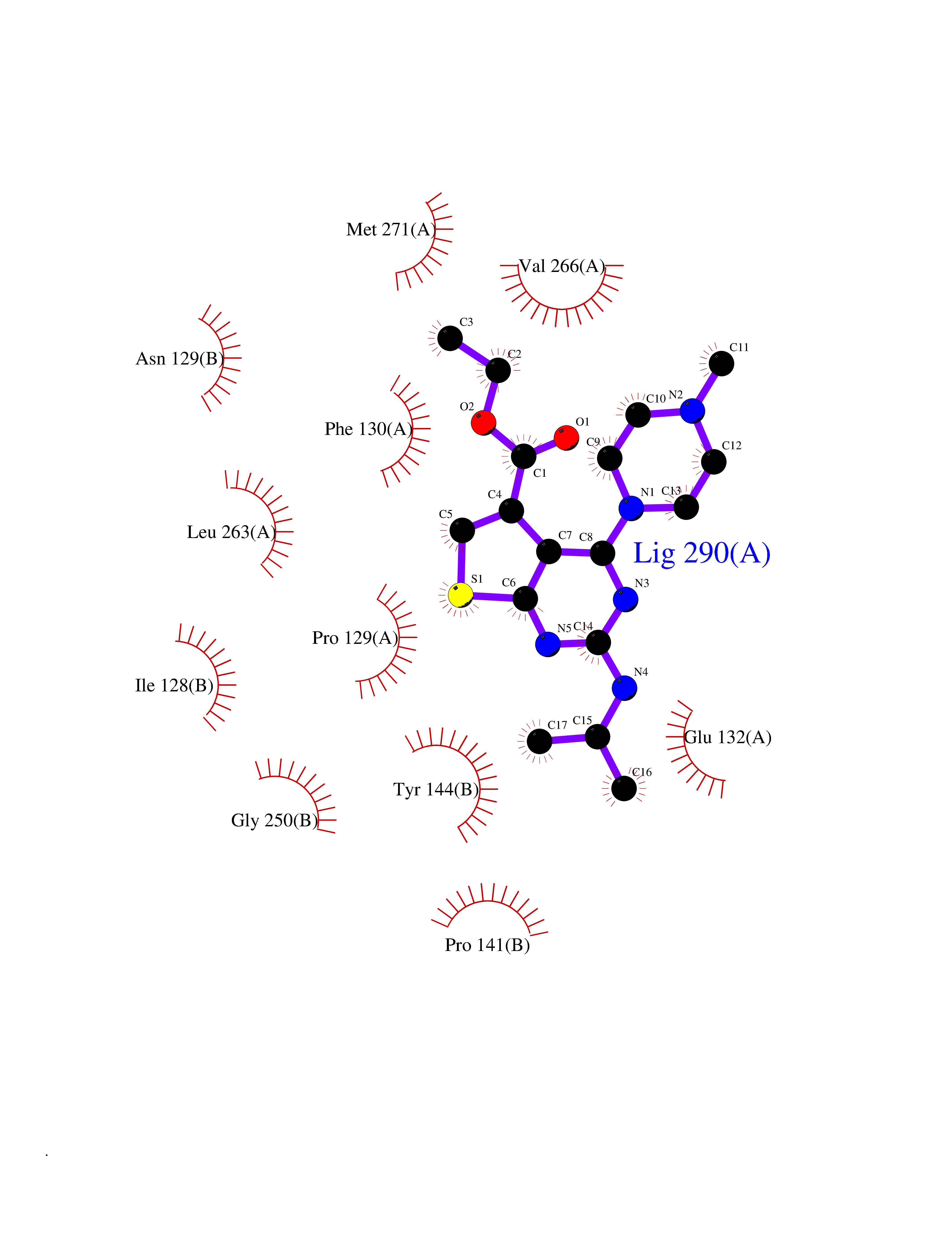 Target general information Gen name XDH Organism Homo sapiens (Human) Uniprot ID TTD ID Synonyms Xanthine oxidase; Xanthine dehydrogenase; XDHA Protein family Xanthine dehydrogenase family Biochemical class CH/CH(2) oxidoreductase Function Catalyzes the oxidation of hypoxanthine to xanthine. Catalyzes the oxidation of xanthine to uric acid. Contributes to the generation of reactive oxygen species. Has also low oxidase activity towards aldehydes (in vitro). Key enzyme in purine degradation. Related diseases Xanthinuria 1 (XAN1) [MIM:278300]: A disorder characterized by excretion of very large amounts of xanthine in the urine and a tendency to form xanthine stones. Uric acid is strikingly diminished in serum and urine. XAN1 is due to isolated xanthine dehydrogenase deficiency. Patients can metabolize allopurinol. {ECO:0000269|PubMed:10844591, ECO:0000269|PubMed:11379872, ECO:0000269|PubMed:14551354, ECO:0000269|PubMed:9153281}. The disease is caused by variants affecting the gene represented in this entry. Drugs (DrugBank ID) DB00640; DB00041; DB00437; DB00993; DB00958; DB01136; DB00856; DB00515; DB00746; DB03328; DB00997; DB03516; DB12466; DB04854; DB03147; DB04335; DB01020; DB00583; DB00170; DB01033; DB00157; DB03841; DB00336; DB01250; DB05262; DB06478; DB01168; DB00339; DB00127; DB01685; DB00831 Interacts with Q9Y3R0-3 EC number NA Uniprot keywords 2Fe-2S; 3D-structure; Cytoplasm; Disease variant; Disulfide bond; FAD; Flavoprotein; Iron; Iron-sulfur; Metal-binding; Molybdenum; NAD; Oxidoreductase; Peroxisome; Proteomics identification; Reference proteome; Secreted Protein physicochemical properties Chain ID A,B,C,D Molecular weight (Da) 143697 Length 1307 Aromaticity 0.08 Instability index 37.9 Isoelectric point 8.01 Charge (pH=7) 7.07 3D Binding mode Sequence ADKLVFFVNGRKVVEKNADPETTLLAYLRRKLGLSGTKLGCGEGGCGACTVMLSKYDRLQNKIVHFSANACLAPICSLHHVAVTTVEGIGSTKTRLHPVQERIAKSHGSQCGFCTPGIVMSMYTLLRNQPEPTMEEIENAFQGNLCRCTGYRPILQGFRTFARDGSPSLFKPEEFTPLDPTQEPIFPPELLRLKDTPRKQLRFEGERVTWIQASTLKELLDLKAQHPDAKLVVGNTEIGIEMKFKNMLFPMIVCPAWIPELNSVEHGPDGISFGAACPLSIVEKTLVDAVAKLPAQKTEVFRGVLEQLRWFAGKQVKSVASVGGNIITASPISDLNPVFMASGAKLTLVSRGTRRTVQMDHTFFPGYRKTLLSPEEILLSIEIPYSREGEYFSAFKQASRREDDIAKVTSGMRVLFKPGTTEVQELALCYGGMANRTISALKTTQRQLSKLWKEELLQDVCAGLAEELHLPPDAPGGMVDFRCTLTLSFFFKFYLTVLQKLGQENLEDKCGKLDPTFASATLLFQKDPPADVQLFQEVPKGQSEEDMVGRPLPHLAADMQASGEAVYCDDIPRYENELSLRLVTSTRAHAKIKSIDTSEAKKVPGFVCFISADDVPGSNITGICNDETVFAKDKVTCVGHIIGAVVADTPEHTQRAAQGVKITYEELPAIITIEDAIKNNSFYGPELKIEKGDLKKGFSEADNVVSGEIYIGGQEHFYLETHCTIAVPKGEAGEMELFVSTQNTMKTQSFVAKMLGVPANRIVVRVKRMGGGFGGKVTRSTVVSTAVALAAYKTGRPVRCMLDRDEDMLITGGRHPFLARYKVGFMKTGTVVALEVDHFSNVGNTQDLSQSIMERALFHMDNCYKIPNIRGTGRLCKTNLPSNTAFRGFGGPQGMLIAECWMSEVAVTCGMPAEEVRRKNLYKEGDLTHFNQKLEGFTLPRCWEECLASSQYHARKSEVDKFNKENCWKKRGLCIIPTKFGISFTVPFLNQAGALLHVYTDGSVLLTHGGTEMGQGLHTKMVQVASRALKIPTSKIYISETSTNTVPNTSPTAASVSADLNGQAVYAACQTILKRLEPYKKKNPSGSWEDWVTAAYMDTVSLSATGFYRTPNLGYSFETNSGNPFHYFSYGVACSEVEIDCLTGDHKNLRTDIVMDVGSSLNPAIDIGQVEGAFVQGLGLFTLEELHYSPEGSLHTRGPSTYKIPAFGSIPIEFRVSLLRDCPNKKAIYASKAVGEPPLFLAASIFFAIKDAIRAARAQHTGNNVKELFRLDSPATPEKIRNACVDKFTTLCVTGVPENCKPWSVRV Hydrogen bonds contact Hydrophobic contact | ||||