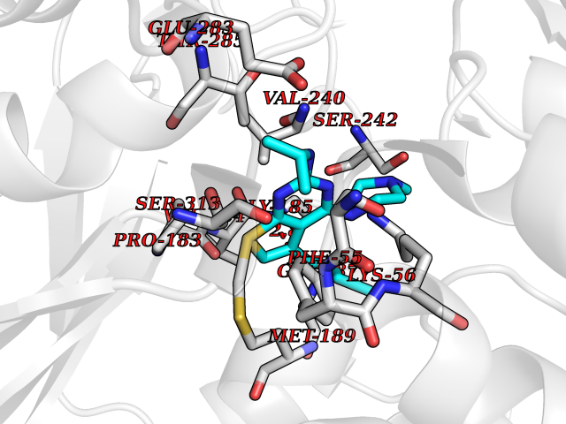 Target general information Gen name SRR Organism Homo sapiens (Human) Uniprot ID TTD ID Synonyms L-serine dehydratase; L-serine ammonia-lyase; D-serine dehydratase; D-serine ammonia-lyase Protein family Serine/threonine dehydratase family Biochemical class Racemases and epimerase Function D-serine is a key coagonist with glutamate at NMDA receptors. Has dehydratase activity towards both L-serine and D-serine. Catalyzes the synthesis of D-serine from L-serine. Related diseases Cornelia de Lange syndrome 5 (CDLS5) [MIM:300882]: A form of Cornelia de Lange syndrome, a clinically heterogeneous developmental disorder associated with malformations affecting multiple systems. It is characterized by facial dysmorphisms, abnormal hands and feet, growth delay, cognitive retardation, hirsutism, gastroesophageal dysfunction and cardiac, ophthalmologic and genitourinary anomalies. {ECO:0000269|PubMed:22885700, ECO:0000269|PubMed:22889856}. The disease is caused by variants affecting the gene represented in this entry. Drugs (DrugBank ID) DB00114; DB00133 Interacts with Q9H4P4; Q9GZT4 EC number EC 5.1.1.18 Uniprot keywords 3D-structure; Allosteric enzyme; ATP-binding; Direct protein sequencing; Isomerase; Lyase; Magnesium; Metal-binding; Nucleotide-binding; Proteomics identification; Pyridoxal phosphate; Reference proteome; S-nitrosylation Protein physicochemical properties Chain ID A Molecular weight (Da) 34613.6 Length 322 Aromaticity 0.06 Instability index 31.62 Isoelectric point 6.35 Charge (pH=7) -1.7 3D Binding mode Sequence AQYDISFADVEKAHINIRDSIHLTPVLTSSILNQLTGRNLFFKCELFQKTGSFKIRGALNAVRSLVRKPKAVVTHSSGNHGQALTYAAKLEGIPAYIVVPQTAPDCKKLAIQAYGASIVYCEPSDESRENVAKRVTEETEGIMVHPNQEPAVIAGQGTIALEVLNQVPLVDALVVPVGGGGMLAGIAITVKALKPSVKVYAAEPSNADDCYQSKLKGKLMPNLYPPETIADGVKSSIGLNTWPIIRDLVDDIFTVTEDEIKCATQLVWERMKLLIEPTAGVGVAAVLSQHFQTVSPEVKNICIVLSGGNVDLTSSITWVKQA Hydrogen bonds contact Hydrophobic contact | ||||