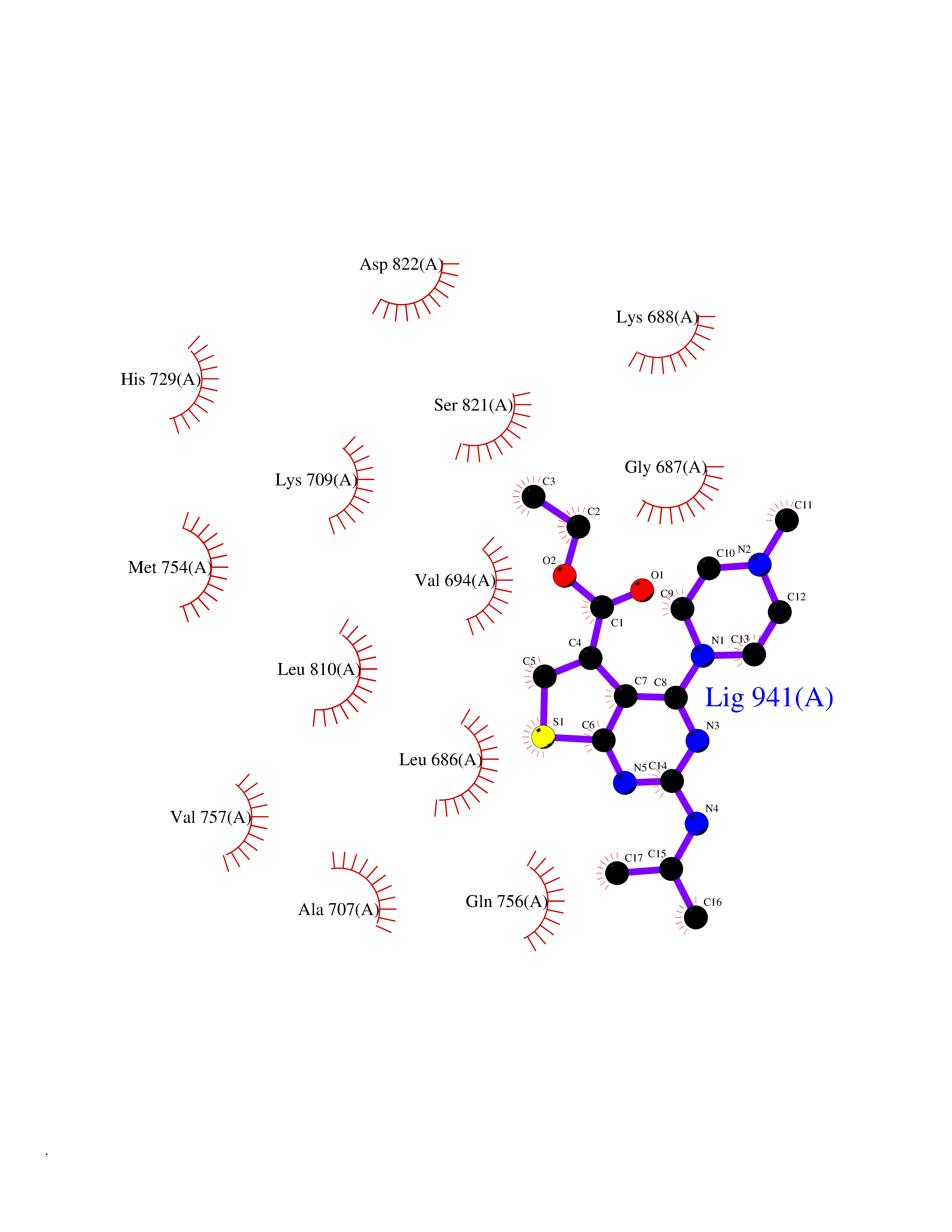 Target general information Gen name MAP3K5 Organism Homo sapiens (Human) Uniprot ID TTD ID Synonyms Mitogen-activated protein kinase kinase kinase 5; MEKK5; MEKK 5; MEK kinase 5; MAPKKK5; MAPK/ERK kinase kinase 5; ASK1; ASK-1 Protein family Protein kinase superfamily, STE Ser/Thr protein kinase family, MAP kinase kinase kinase subfamily Biochemical class Kinase Function Plays an important role in the cascades of cellular responses evoked by changes in the environment. Mediates signaling for determination of cell fate such as differentiation and survival. Plays a crucial role in the apoptosis signal transduction pathway through mitochondria-dependent caspase activation. MAP3K5/ASK1 is required for the innate immune response, which is essential for host defense against a wide range of pathogens. Mediates signal transduction of various stressors like oxidative stress as well as by receptor-mediated inflammatory signals, such as the tumor necrosis factor (TNF) or lipopolysaccharide (LPS). Once activated, acts as an upstream activator of the MKK/JNK signal transduction cascade and the p38 MAPK signal transduction cascade through the phosphorylation and activation of several MAP kinase kinases like MAP2K4/SEK1, MAP2K3/MKK3, MAP2K6/MKK6 and MAP2K7/MKK7. These MAP2Ks in turn activate p38 MAPKs and c-jun N-terminal kinases (JNKs). Both p38 MAPK and JNKs control the transcription factors activator protein-1 (AP-1). Serine/threonine kinase which acts as an essential component of the MAP kinase signal transduction pathway. Related diseases Ataxia telangiectasia (AT) [MIM:208900]: A rare recessive disorder characterized by progressive cerebellar ataxia, dilation of the blood vessels in the conjunctiva and eyeballs, immunodeficiency, growth retardation and sexual immaturity. Patients have a strong predisposition to cancer; about 30% of patients develop tumors, particularly lymphomas and leukemias. Cells from affected individuals are highly sensitive to damage by ionizing radiation and resistant to inhibition of DNA synthesis following irradiation. {ECO:0000269|PubMed:10234507, ECO:0000269|PubMed:10425038, ECO:0000269|PubMed:10817650, ECO:0000269|PubMed:10873394, ECO:0000269|PubMed:19431188, ECO:0000269|PubMed:27664052, ECO:0000269|PubMed:7792600, ECO:0000269|PubMed:8589678, ECO:0000269|PubMed:8665503, ECO:0000269|PubMed:8698354, ECO:0000269|PubMed:8755918, ECO:0000269|PubMed:8789452, ECO:0000269|PubMed:8797579, ECO:0000269|PubMed:8808599, ECO:0000269|PubMed:8845835, ECO:0000269|PubMed:9043869, ECO:0000269|PubMed:9150358, ECO:0000269|PubMed:9443866, ECO:0000269|PubMed:9450874, ECO:0000269|PubMed:9463314, ECO:0000269|PubMed:9497252, ECO:0000269|PubMed:9521587, ECO:0000269|PubMed:9711876, ECO:0000269|PubMed:9792409, ECO:0000269|PubMed:9792410, ECO:0000269|PubMed:9872980, ECO:0000269|PubMed:9887333}. The disease is caused by variants affecting the gene represented in this entry.; DISEASE: Defects in ATM may contribute to T-cell acute lymphoblastic leukemia (TALL) and T-prolymphocytic leukemia (TPLL). TPLL is characterized by a high white blood cell count, with a predominance of prolymphocytes, marked splenomegaly, lymphadenopathy, skin lesions and serous effusion. The clinical course is highly aggressive, with poor response to chemotherapy and short survival time. TPLL occurs both in adults as a sporadic disease and in younger AT patients. {ECO:0000269|PubMed:9288106, ECO:0000269|PubMed:9334731, ECO:0000269|PubMed:9463314, ECO:0000269|PubMed:9488043, ECO:0000269|PubMed:9573030}.; DISEASE: Defects in ATM may contribute to B-cell non-Hodgkin lymphomas (BNHL), including mantle cell lymphoma (MCL). {ECO:0000269|PubMed:10397742, ECO:0000269|PubMed:10706620, ECO:0000269|PubMed:9288106}.; DISEASE: Defects in ATM may contribute to B-cell chronic lymphocytic leukemia (BCLL). BCLL is the commonest form of leukemia in the elderly. It is characterized by the accumulation of mature CD5+ B-lymphocytes, lymphadenopathy, immunodeficiency and bone marrow failure. {ECO:0000269|PubMed:10023947, ECO:0000269|PubMed:10397742, ECO:0000269|PubMed:9892178}. Drugs (DrugBank ID) NA Interacts with P31749; P49407; P32121; Q99828; P02489; Q5VWQ8; Q9UER7; P50570-2; Q14204; P20042; P41091; Q0VDC6; Q8TB36; P28799; P54652; P04792; O43464; P42858; O60333-2; Q92876; Q14114-3; P46734; Q99683; Q96EZ8; Q96HS1; P63098; P60891; Q16637; Q12933; P10599; Q9UBQ0-2; P31946; P62258; P61981; Q04917; P63104; Q969S3; Q9WTR2; Q9D1C8 EC number EC 2.7.11.25 Uniprot keywords 3D-structure; Alternative splicing; Apoptosis; ATP-binding; Coiled coil; Cytoplasm; Endoplasmic reticulum; Host-virus interaction; Immunity; Innate immunity; Kinase; Magnesium; Metal-binding; Methylation; Nucleotide-binding; Phosphoprotein; Proteomics identification; Reference proteome; Serine/threonine-protein kinase; Stress response; Transferase; Ubl conjugation Protein physicochemical properties Chain ID A,C Molecular weight (Da) 51651.4 Length 458 Aromaticity 0.09 Instability index 36.22 Isoelectric point 5.76 Charge (pH=7) -10.26 3D Binding mode Sequence MESDLLEYDYEYDENGDRVVLGKGTYGIVYAGRDLSNQVRIAIKEIPERQPLHEEIALHKHLKHKNIVQYLGSFSENGFIKIFMEQVPGGSLSALLRSKWGPLKDNEQTIGFYTKQILEGLKYLHDNQIVHRDIKGDNVLINTYSGVLKISDFGTSKRLGKAADIWSLGCTIIEMATGKPPVHPEIPESMSAEAKAFILKCFEPDPDKRACANDLLVDEFLKLEYDYEYDENGDRVVLGKGTYGIVYAGRDLSNQVRIAIKEIPERDSRYSQPLHEEIALHKHLKHKNIVQYLGSFSENGFIKIFMEQVPGGSLSALLRSKWGPLKDNEQTIGFYTKQILEGLKYLHDNQIVHRDIKGDNVLINTYSGVLKISDFGTSKRLLQYMAPEIIDKGPRGGKAADIWSLGCTIIEMATGKPPFHPEIPESMSAEAKAFILKCFEPDPDKRACANDLLVDEFL Hydrogen bonds contact Hydrophobic contact | ||||