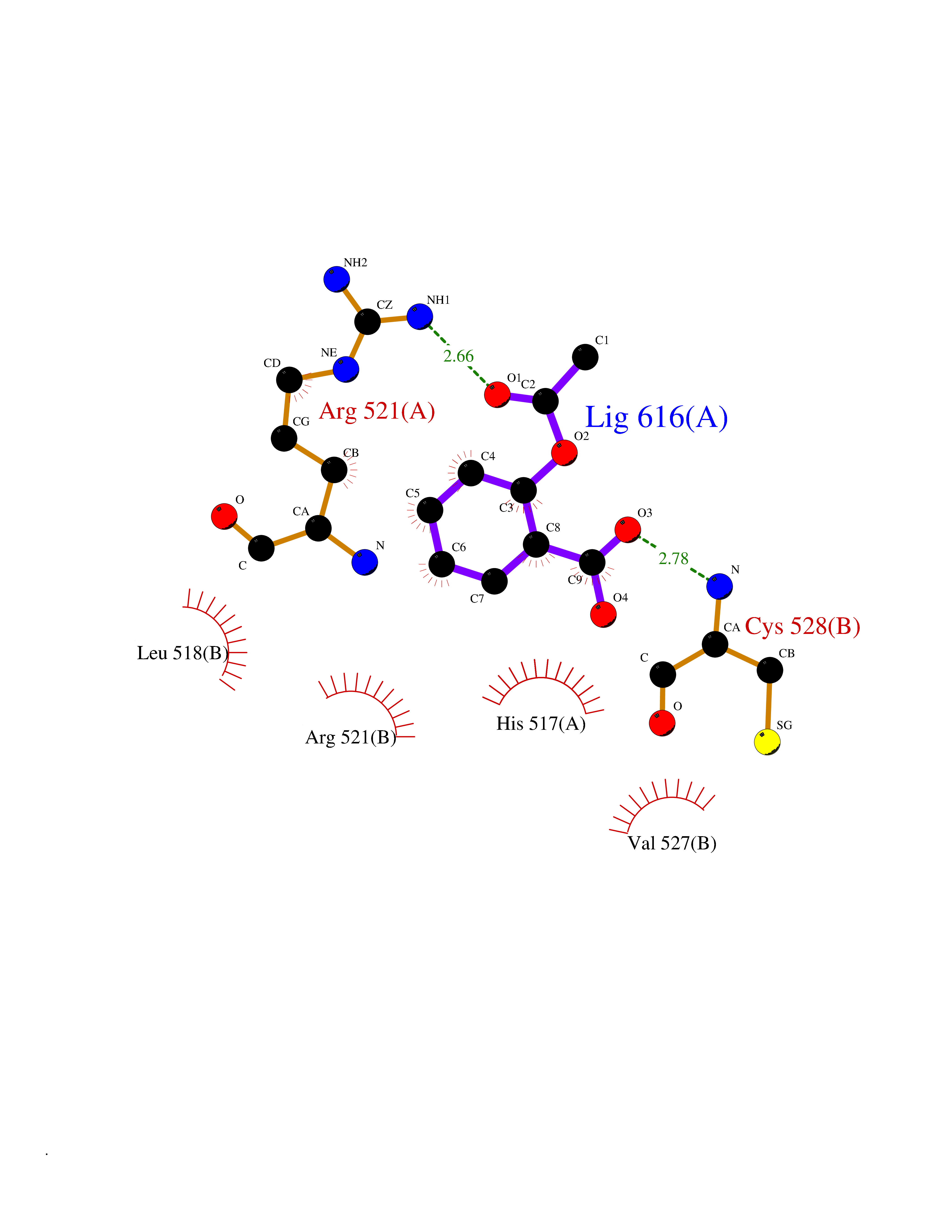 Target general information Gen name TAT Organism Homo sapiens (Human) Uniprot ID TTD ID NA Synonyms NA Protein family Class-I pyridoxal-phosphate-dependent aminotransferase family Biochemical class Transferase Function Amino acid binding.L-phenylalanine:2-oxoglutarate aminotransferase activity.L-tyrosine:2-oxoglutarate aminotransferase activity.Pyridoxal phosphate binding. Related diseases Tyrosinemia 2 (TYRSN2) [MIM:276600]: An inborn error of metabolism characterized by elevations of tyrosine in the blood and urine, and oculocutaneous manifestations. Typical features include palmoplantar keratosis, painful corneal ulcers, and intellectual disability. {ECO:0000269|PubMed:1357662}. The disease is caused by variants affecting the gene represented in this entry. Drugs (DrugBank ID) DB00142; DB00120; DB00114; DB00135 Interacts with P15104; P28799; P28799-2; P17735; Q05086; Q05086-3 EC number 2.6.1.5 Uniprot keywords 3D-structure; Acetylation; Aminotransferase; Disease variant; Intellectual disability; Palmoplantar keratoderma; Phenylalanine catabolism; Phosphoprotein; Proteomics identification; Pyridoxal phosphate; Reference proteome; Transferase; Tyrosine catabolism Protein physicochemical properties Chain ID A,B Molecular weight (Da) 42209.5 Length 380 Aromaticity 0.08 Instability index 51.79 Isoelectric point 5.29 Charge (pH=7) -10.66 3D Binding mode Sequence VKPNPNKTMISLSIGDPTVFGNLPTDPEVTQAMKDALDSGKYNGYAPSIGFLSSREEIASYYHCPEAPLEAKDVILTSGCSQAIDLCLAVLANPGQNILVPRPGFSLYKTLAESMGIEVKLYNLLPEKSWEIDLKQLEYLIDEKTACLIVNNPSNPCGSVFSKRHLQKILAVAARQCVPILADEIYGDMVFSDCKYEPLATLSTDVPILSCGGLAKRWLVPGWRLGWILIHDRRDIFGNEIRDGLVKLSQRILGPCTIVQGALKSILCRTPGEFYHNTLSFLKSNADLCYGALAAIPGLRPVRPSGAMYLMVGIEMEHFPEFENDVEFTERLVAEQSVHCLPATCFEYPNFIRVVITVPEVMMLEACSRIQEFCEQHYHC Hydrogen bonds contact Hydrophobic contact | ||||