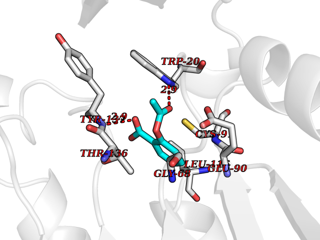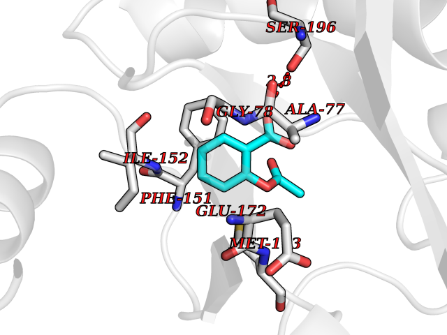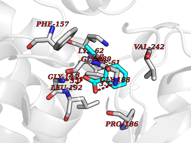 Target general information Gen name GSTA4 Organism Homo sapiens (Human) Uniprot ID TTD ID NA Synonyms NA Protein family GST superfamily, Alpha family Biochemical class Transferase Function Glutathione transferase activity.Identical protein binding.Protein homodimerization activity. Related diseases Cocoon syndrome (COCOS) [MIM:613630]: A lethal syndrome characterized by multiple fetal malformations including defective face and seemingly absent limbs, which are bound to the trunk and encased under the skin. {ECO:0000269|PubMed:20961246}. The disease is caused by variants affecting the gene represented in this entry.; DISEASE: Bartsocas-Papas syndrome 2 (BPS2) [MIM:619339]: An autosomal recessive, severe form of popliteal pterygium syndrome. Popliteal pterygia syndromes have considerable variability in severity and in the associated phenotypic features but they are all characterized by cutaneous webbing across one or more major joints, cleft lip and/or palate, syndactyly, and genital malformations. {ECO:0000269|PubMed:25691407}. The disease may be caused by variants affecting the gene represented in this entry. Drugs (DrugBank ID) DB00143 Interacts with Q96LR7; O95995; P09210; O15217; O15116; Q96HA8 EC number 2.5.1.18 Uniprot keywords 3D-structure; Acetylation; Alternative splicing; Cytoplasm; Proteomics identification; Reference proteome; Transferase Protein physicochemical properties Chain ID A,B,C,D Molecular weight (Da) 50705.7 Length 438 Aromaticity 0.1 Instability index 50.22 Isoelectric point 7.95 Charge (pH=7) 1.91 3D Binding mode Sequence AARPKLHYPNGRGRMESVRWVLAAAGVEFDEEFLETKEQLYKLQDGNHLLFQQVPMVEIDGMKLVQTRSILHYIADKHNLFGKNLKERTLIDMYVEGTLDLLELLIMHPFLKPDDQQKEVVNMAQKAIIRYFPVFEKILRGHGQSFLVGNQLSLADVILLQTILALEEKIPNILSAFPFLQEYTVKLSNIPTIKRFLEPGSKKKPPPDEIYVRTVYNIFRARPKLHYPNGRGRMESVRWVLAAAGVEFDEEFLETKEQLYKLQDGNHLLFQQVPMVEIDGMKLVQTRSILHYIADKHNLFGKNLKERTLIDMYVEGTLDLLELLIMHPFLKPDDQQKEVVNMAQKAIIRYFPVFEKILRGHGQSFLVGNQLSLADVILLQTILALEEKIPNILSAFPFLQEYTVKLSNIPTIKRFLEPGSKKKPPPDEIYVRTVYNIF Hydrogen bonds contact Hydrophobic contact | ||||