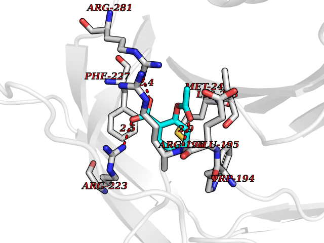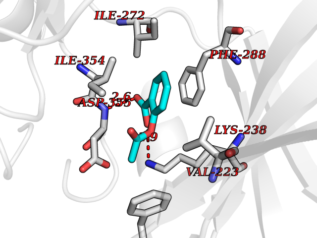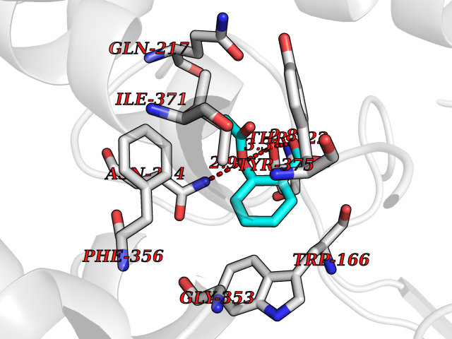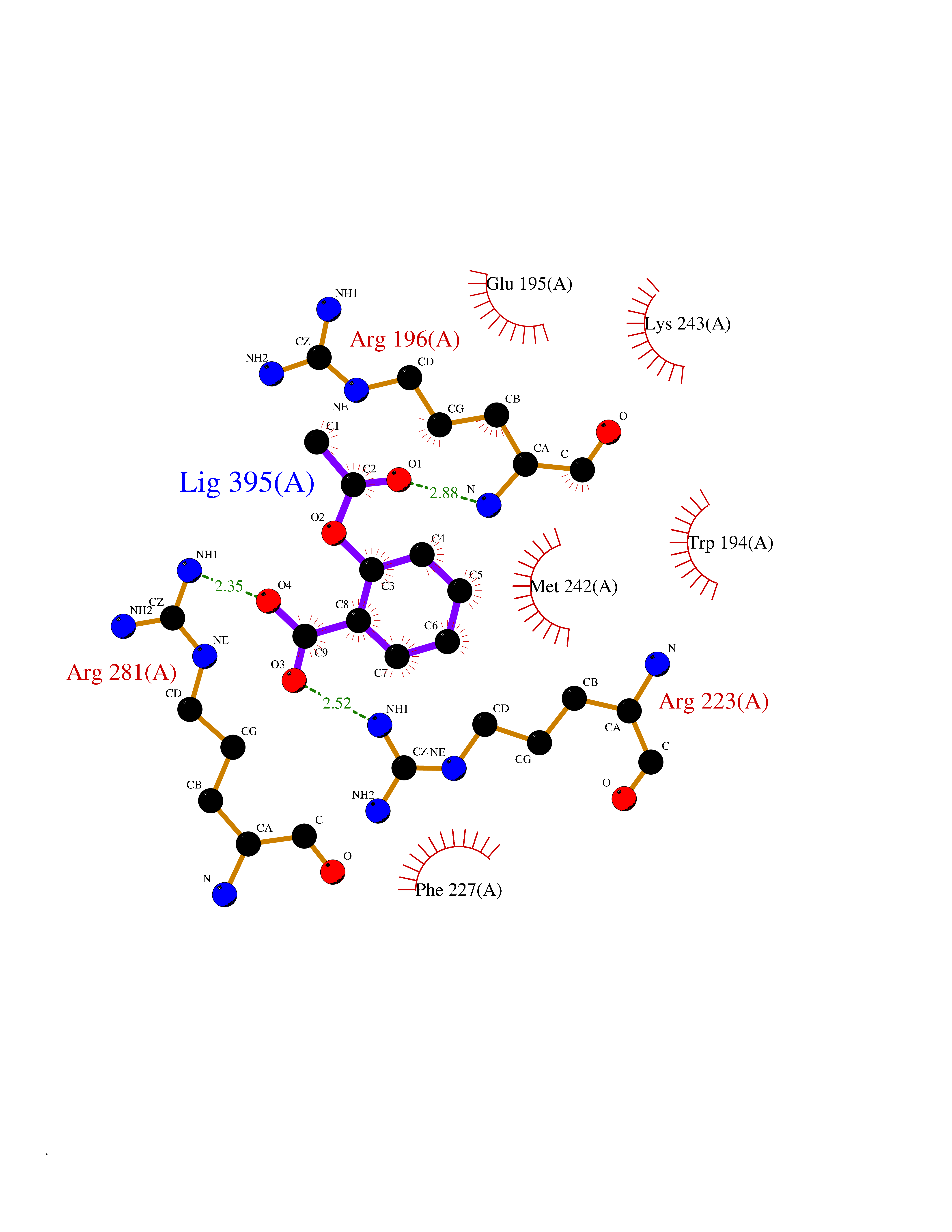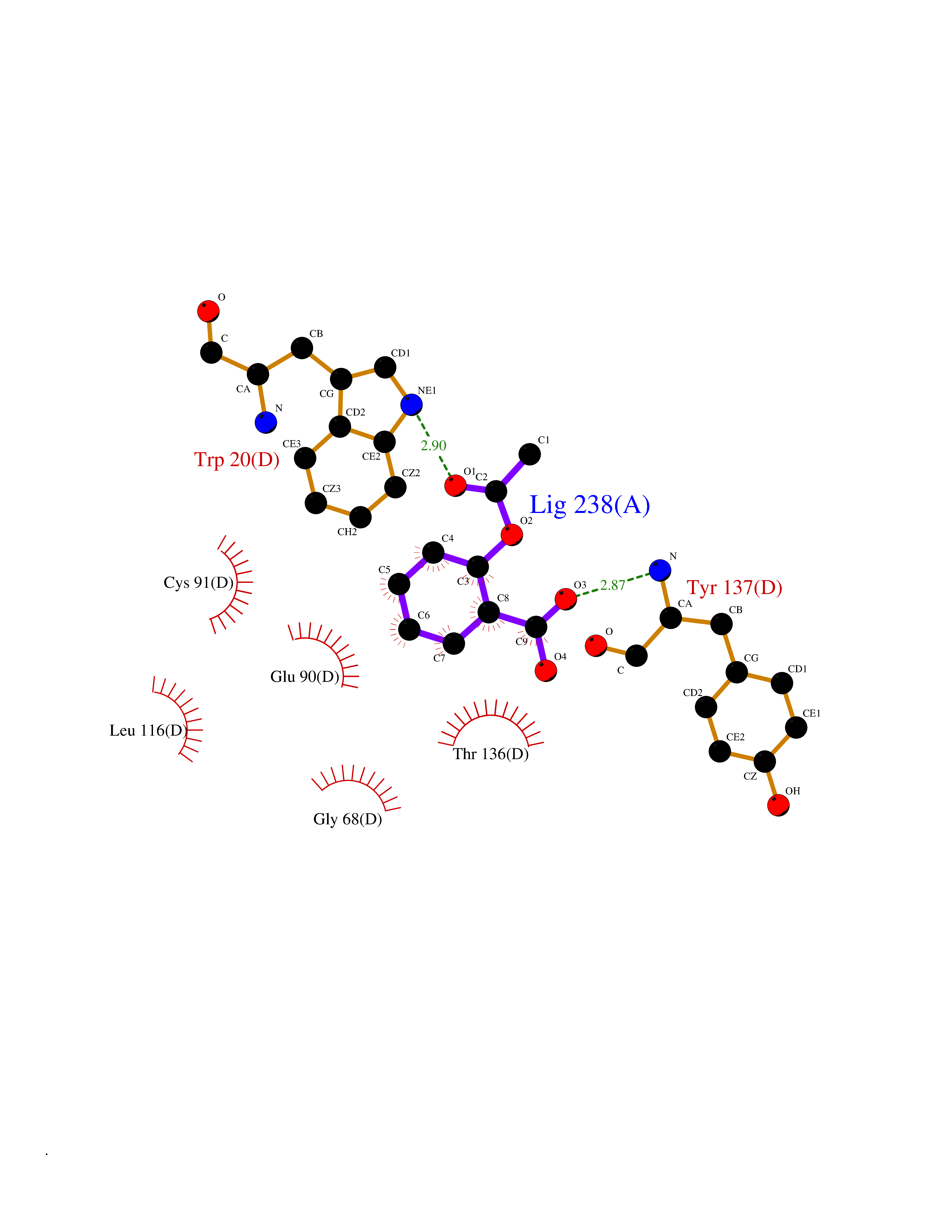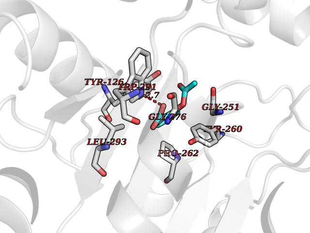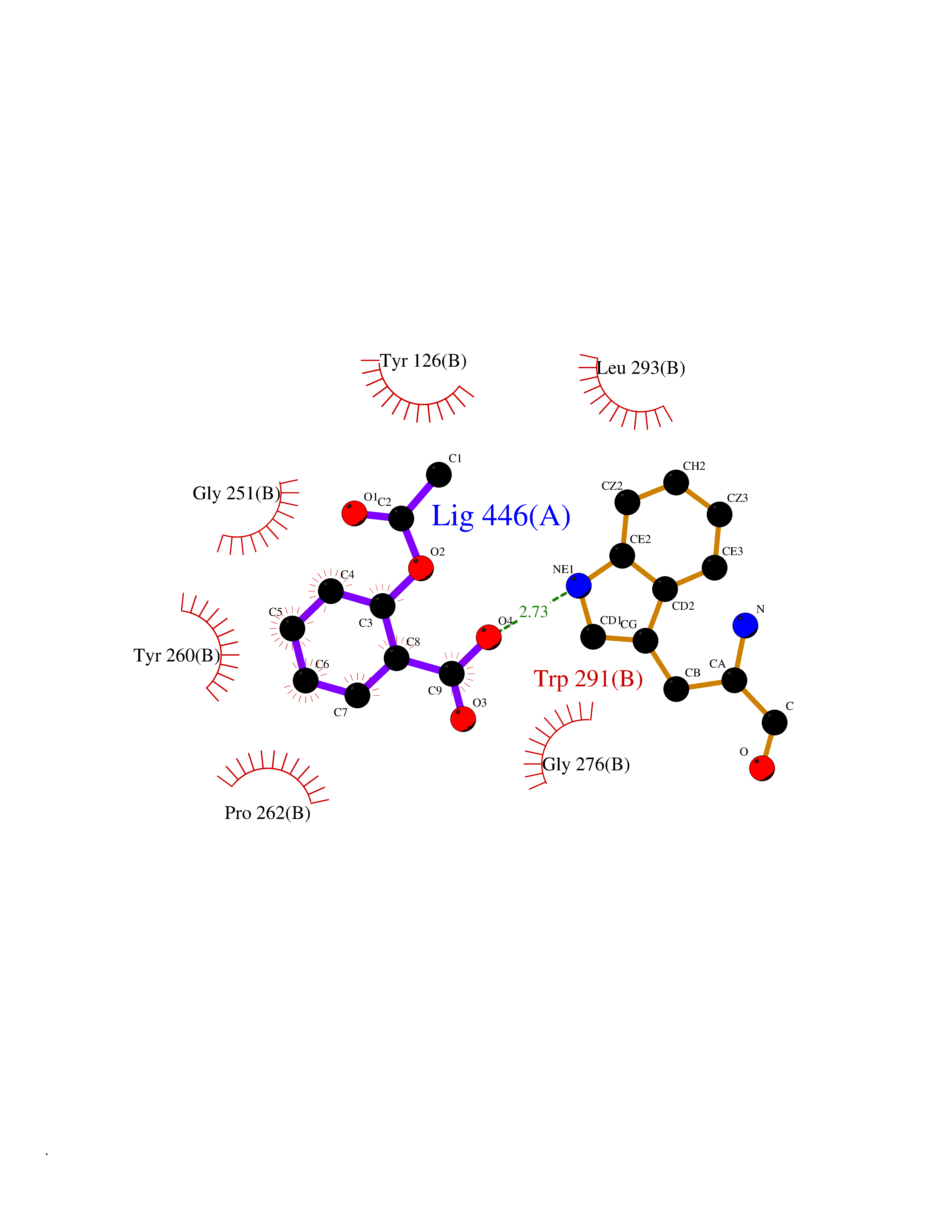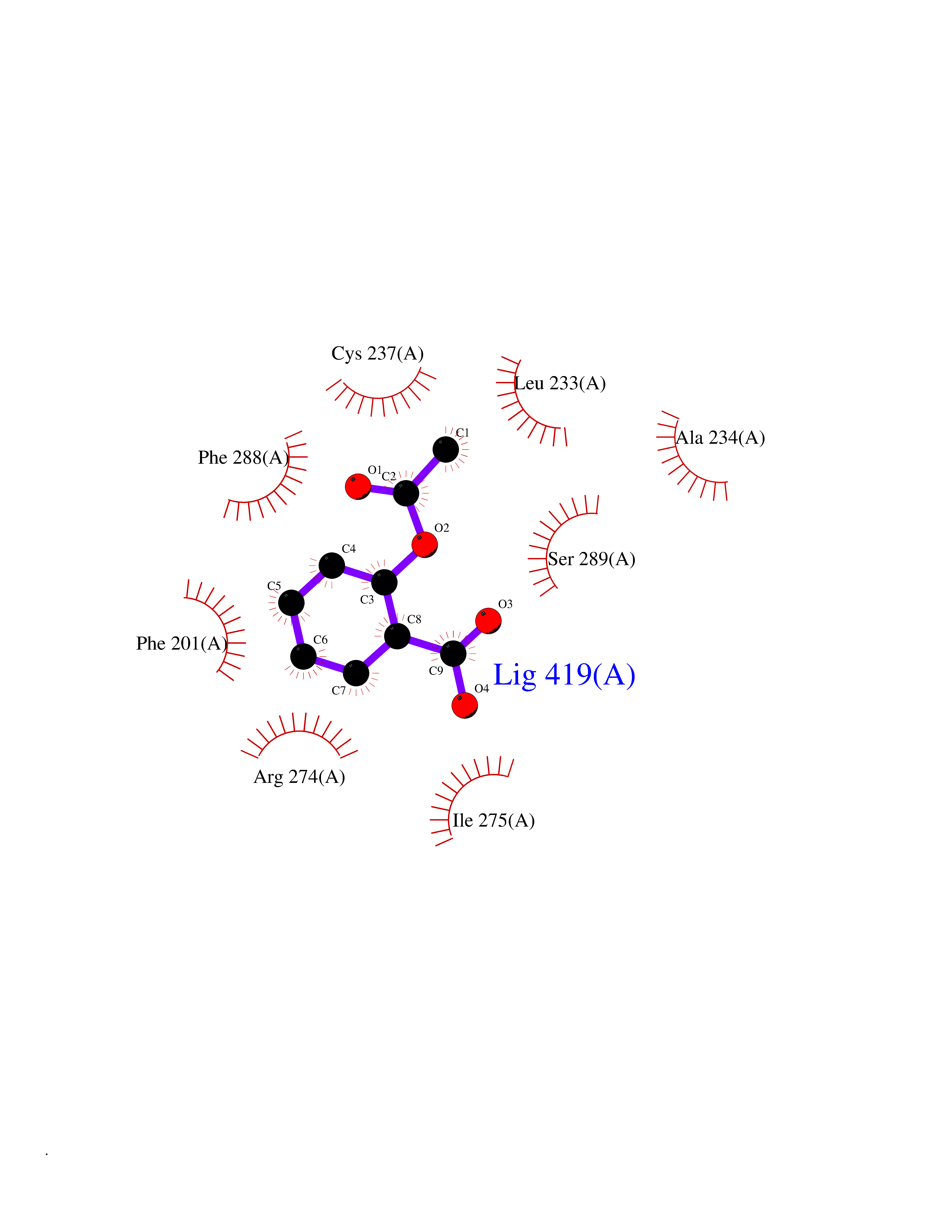 Target general information Gen name AOAH Organism Homo sapiens (Human) Uniprot ID TTD ID Synonyms Acyloxyacyl hydrolase Protein family NA Biochemical class NA Function Removes the secondary (acyloxyacyl-linked) fatty acyl chains from the lipid A region of bacterial lipopolysaccharides. By breaking down LPS, terminates the host response to bacterial infection and prevents prolonged and damaging inflammatory responses (By similarity). In peritoneal macrophages, seems to be important for recovery from a state of immune tolerance following infection by Gram-negative bacteria (By similarity). Related diseases Major depressive disorder (MDD) [MIM:608516]: A common psychiatric disorder. It is a complex trait characterized by one or more major depressive episodes without a history of manic, mixed, or hypomanic episodes. A major depressive episode is characterized by at least 2 weeks during which there is a new onset or clear worsening of either depressed mood or loss of interest or pleasure in nearly all activities. Four additional symptoms must also be present including changes in appetite, weight, sleep, and psychomotor activity; decreased energy; feelings of worthlessness or guilt; difficulty thinking, concentrating, or making decisions; or recurrent thoughts of death or suicidal ideation, plans, or attempts. The episode must be accompanied by distress or impairment in social, occupational, or other important areas of functioning. {ECO:0000269|PubMed:15229186}. Disease susceptibility is associated with variants affecting the gene represented in this entry. Drugs (DrugBank ID) NA Interacts with Q15700 EC number EC 3.1.1.77 Uniprot keywords 3D-structure; Alternative splicing; Calcium; Cytoplasmic vesicle; Direct protein sequencing; Disulfide bond; Glycoprotein; Hydrolase; Lipid metabolism; Metal-binding; Proteomics identification; Reference proteome; Secreted; Signal; Zymogen Protein physicochemical properties Chain ID C Molecular weight (Da) 47779.7 Length 420 Aromaticity 0.1 Instability index 43.45 Isoelectric point 7.72 Charge (pH=7) 2.1 3D Binding mode Sequence GSDICSLPVLAKICQKIKLAMEQSVPFKDVDSDKYSVFPTLRGYHWRGRDCNDSDESVYPGRRPNNWDVHQDSNCNGIWGVDPKDGVPYEKKFCEGSQPRGIILLGDAAGAHFHISPEWITASQMSLNSFINLPTALTNELDWPQLSGATGFLDSTVGIKEKSIYLRLWKRNHCNHRDYQNISRNGASSRNLKKFIESLSRNKVLDYPAIVIYAMIGNDVCSGKSDPVPAMTTPEKLYSNVMQTLKHLNSHLPNGSHVILYGLPDGTFLWDNLHNRYHPLGQLNKDMTYAQLYSFLNCLQVSPCHGWMSSNKTLRTLTSERAEQLSNTLKKIAASEKFTNFNLFYMDFAFHEIIQEWQKRGGQPWQLIEPVDGFHPNEVALLLLADHFWKKVQLQWPQILGKENPFNPQIKQVFGDQGGH Hydrogen bonds contact Hydrophobic contact | ||||