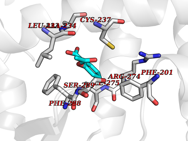 Target general information Gen name FFAR1 Organism Homo sapiens (Human) Uniprot ID TTD ID NA Synonyms GPR40 Protein family G-protein coupled receptor 1 family Biochemical class Fatty acid binding protein / hydrolase Function Bioactive lipid receptor activity.G-protein coupled receptor activity.Guanyl-nucleotide exchange factor activity.Lipid binding. Related diseases Refsum disease (RD) [MIM:266500]: A rare autosomal recessive peroxisomal disorder characterized by the accumulation of the branched-chain fatty acid, phytanic acid, in blood and tissues. Cardinal clinical features are retinitis pigmentosa, peripheral neuropathy, cerebellar ataxia, and elevated protein levels in the cerebrospinal fluid (CSF). Half of all patients exhibit generalized, mild to moderate ichthyosis resembling ichthyosis vulgaris. Less constant features are nerve deafness, anosmia, skeletal abnormalities, cataracts and cardiac impairment. {ECO:0000269|PubMed:10709665, ECO:0000269|PubMed:10767344, ECO:0000269|PubMed:14974078, ECO:0000269|PubMed:9326939, ECO:0000269|PubMed:9326940}. The disease is caused by variants affecting the gene represented in this entry. Drugs (DrugBank ID) DB00159 Interacts with NA EC number NA Uniprot keywords 3D-structure; Cell membrane; Disulfide bond; G-protein coupled receptor; Glycoprotein; Lipid-binding; Membrane; Receptor; Reference proteome; Transducer; Transmembrane; Transmembrane helix Protein physicochemical properties Chain ID A Molecular weight (Da) 28319.1 Length 272 Aromaticity 0.11 Instability index 27.3 Isoelectric point 9.07 Charge (pH=7) 6.85 3D Binding mode Sequence MDLPPQLSFGLYVAAFALGFPLNVLAIRGATAHARLRLTPSAVYALNLGCSDLLLTVSLPLKAVEALASGAWPLPASLCPVFAVAHFAPLYAGGGFLAALSAARYLGAAFPPCYSWGVCAAIWALVLCHLGLVFGLEAPGGWLDHSNTSLGINTPVNGSPVCLEAWDPASAGPARFSLSLLLFFLPLAITAFCFVGCLRALARGSLTHRRKLRAAWVAGGALLTLLLCVGPYNASNVASFLYPNLGGSWRKLGLITGAWSVVLNPLVTGYLG Hydrogen bonds contact Hydrophobic contact | ||||