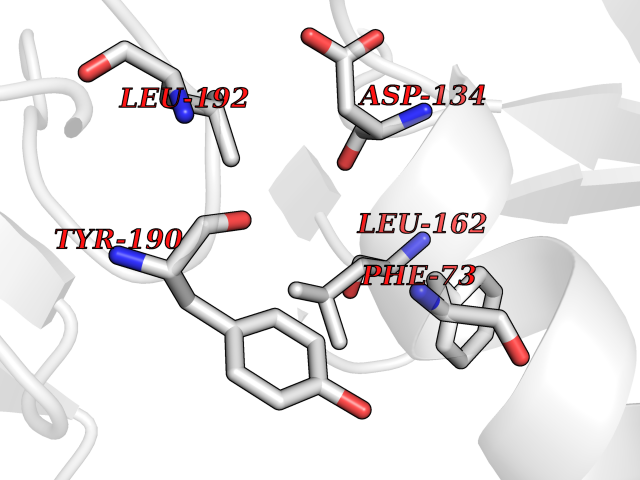 Target general information Gen name TH Organism Homo sapiens (Human) Uniprot ID TTD ID Synonyms Tyrosine 3-hydroxylase; TH Protein family Biopterin-dependent aromatic amino acid hydroxylase family Biochemical class Paired donor oxygen oxidoreductase Function Plays an important role in the physiology of adrenergic neurones. Related diseases Segawa syndrome autosomal recessive (ARSEGS) [MIM:605407]: A form of DOPA-responsive dystonia presenting in infancy or early childhood. Dystonia is defined by the presence of sustained involuntary muscle contractions, often leading to abnormal postures. Some cases present with parkinsonian symptoms in infancy. Unlike all other forms of dystonia, it is an eminently treatable condition, due to a favorable response to L-DOPA. {ECO:0000269|PubMed:10585338, ECO:0000269|PubMed:11196107, ECO:0000269|PubMed:11246459, ECO:0000269|PubMed:15505183, ECO:0000269|PubMed:15747353, ECO:0000269|PubMed:16049992, ECO:0000269|PubMed:17696123, ECO:0000269|PubMed:18058633, ECO:0000269|PubMed:18554280, ECO:0000269|PubMed:19491146, ECO:0000269|PubMed:20056467, ECO:0000269|PubMed:20430833, ECO:0000269|PubMed:21940685, ECO:0000269|PubMed:22264700, ECO:0000269|PubMed:22815559, ECO:0000269|PubMed:23762320, ECO:0000269|PubMed:23939262, ECO:0000269|PubMed:24753243, ECO:0000269|PubMed:7814018, ECO:0000269|PubMed:8528210, ECO:0000269|PubMed:8817341, ECO:0000269|PubMed:9613851, ECO:0000269|PubMed:9703425}. The disease is caused by variants affecting the gene represented in this entry.; DISEASE: May play a role in the pathogenesis of Parkinson disease (PD). A genome-wide copy number variation analysis has identified a 34 kilobase deletion over the TH gene in a PD patient but not in any controls. {ECO:0000269|PubMed:20809526}. Drugs (DrugBank ID) DB03552; DB04400; DB00765; DB00120; DB00360; DB00135 Interacts with P29762; P61978-2; Q99750; P08651-5; O75928-2; Q9UHX1-2; P0DJD3-2; P07101-3; Q9UJ04; C9J7I0; Q5MCW4 EC number EC 1.14.16.2 Uniprot keywords 3D-structure; Alternative splicing; Catecholamine biosynthesis; Cell projection; Cytoplasm; Cytoplasmic vesicle; Disease variant; Dystonia; Iron; Metal-binding; Monooxygenase; Neurotransmitter biosynthesis; Nucleus; Oxidoreductase; Parkinson disease; Parkinsonism; Phosphoprotein; Proteomics identification; Reference proteome; Synapse Protein physicochemical properties Chain ID A,B,C,D Molecular weight (Da) 34997 Length 306 Aromaticity 0.12 Instability index 42.59 Isoelectric point 5.32 Charge (pH=7) -12.31 3D Binding mode Sequence VPWFPRKVSELDKCHHLVTKFDPDLDLDHPGFSDQVYRQRRKLIAEIAFQYRHGDPIPRVEYTAEEIATWKEVYTTLKGLYATHACGEHLEAFALLERFSGYREDNIPQLEDVSRFLKERTGFQLRPVAGLLSARDFLASLAFRVFQCTQYIRHASSPMHSPEPDCCHELLGHVPMLADRTFAQFSQDIGLASLGASDEEIEKLSTLYWFTVEFGLCKQNGEVKAYGAGLLSSYGELLHCLSEEPEIRAFDPEAAAVQPYQDQTYQSVYFVSESFSDAKDKLRSYASRIQRPFSVKFDPYTLAIDV Hydrogen bonds contact Hydrophobic contact | ||||