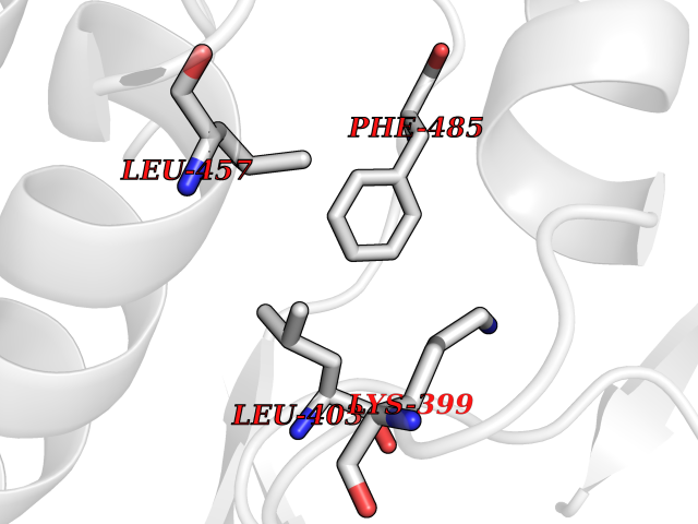 Target general information Gen name cpo Organism Kitasatospora aureofaciens (Streptomyces aureofaciens) Uniprot ID TTD ID NA Synonyms cpoT Protein family AB hydrolase superfamily, Bacterial non-heme haloperoxidase / perhydrolase family Biochemical class Haloperoxidase Function Chloride peroxidase activity. Related diseases Hypervalinemia and hyperleucine-isoleucinemia (HVLI) [MIM:618850]: An autosomal recessive metabolic disorder characterized by highly elevated plasma concentrations of valine and leucine/isoleucine. Affected individuals suffer from headache and mild memory impairment. {ECO:0000269|PubMed:25653144}. The disease is caused by variants affecting the gene represented in this entry. A patient with hypervalinemia and hyperleucine-isoleucinemia was identified as compound heterozygote for Gln-170 (inherited from his father) and Lys-264 (inherited from his mother), both variants reduced the catalytic activity of the enzyme. After treatment with vitamin B6, a precursor of pyridoxal 5'-phosphate, a BCAT2 cofactor, the blood levels of branched chain amino acids, especially valine, were decreased and brain lesions were improved. {ECO:0000269|PubMed:25653144}. Drugs (DrugBank ID) DB03793 Interacts with NA EC number 1.11.1.- Uniprot keywords 3D-structure; Chloride; Oxidoreductase; Peroxidase Protein physicochemical properties Chain ID A,B Molecular weight (Da) 60428.4 Length 554 Aromaticity 0.13 Instability index 31.26 Isoelectric point 4.65 Charge (pH=7) -32.72 3D Binding mode Sequence PFITVGQENSTSIDLYYEDHGAGQPVVLIHGFPLSGHSWERQSAALLDAGYRVITYDRRGFGQSSQPTTGYDYDTFAADLNTVLETLDLQDAVLVGFSMGTGEVARYVSSYGTARIAKVAFLASLEPFLLKTDDNPDGAAPKEFFDGIVAAVKADRYAFYTGFFNDFYNLDENLGTRISEEAVRNSWNTAASGGFFAAAAAPTTWYTDFRADIPRIDVPALILHGTGDRTLPIENTARVFHKALPSAEYVEVEGAPHGLLWTHAEEVNTALLAFLAKPFITVGQENSTSIDLYYEDHGAGQPVVLIHGFPLSGHSWERQSAALLDAGYRVITYDRRGFGQSSQPTTGYDYDTFAADLNTVLETLDLQDAVLVGFSMGTGEVARYVSSYGTARIAKVAFLASLEPFLLKTDDNPDGAAPKEFFDGIVAAVKADRYAFYTGFFNDFYNLDENLGTRISEEAVRNSWNTAASGGFFAAAAAPTTWYTDFRADIPRIDVPALILHGTGDRTLPIENTARVFHKALPSAEYVEVEGAPHGLLWTHAEEVNTALLAFLAK Hydrogen bonds contact Hydrophobic contact | ||||
