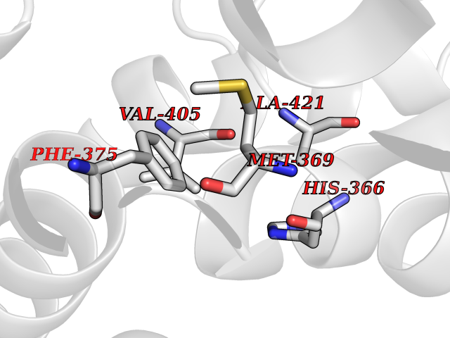 Target general information Gen name soxA Organism Bacillus sp. (strain B-0618) Uniprot ID TTD ID NA Synonyms sox Protein family MSOX/MTOX family, MSOX subfamily Biochemical class Oxidoreductase Function Sarcosine oxidase activity. Related diseases Defects in PPARG can lead to type 2 insulin-resistant diabetes and hyptertension. PPARG mutations may be associated with colon cancer. {ECO:0000269|PubMed:10394368}.; DISEASE: Obesity (OBESITY) [MIM:601665]: A condition characterized by an increase of body weight beyond the limitation of skeletal and physical requirements, as the result of excessive accumulation of body fat. {ECO:0000269|PubMed:9753710}. Disease susceptibility may be associated with variants affecting the gene represented in this entry.; DISEASE: Lipodystrophy, familial partial, 3 (FPLD3) [MIM:604367]: A form of lipodystrophy characterized by marked loss of subcutaneous fat from the extremities. Facial adipose tissue may be increased, decreased or normal. Affected individuals show an increased preponderance of insulin resistance, diabetes mellitus and dyslipidemia. {ECO:0000269|PubMed:11788685, ECO:0000269|PubMed:12453919}. The disease is caused by variants affecting the gene represented in this entry.; DISEASE: Glioma 1 (GLM1) [MIM:137800]: Gliomas are benign or malignant central nervous system neoplasms derived from glial cells. They comprise astrocytomas and glioblastoma multiforme that are derived from astrocytes, oligodendrogliomas derived from oligodendrocytes and ependymomas derived from ependymocytes. {ECO:0000269|PubMed:10851250}. Disease susceptibility may be associated with variants affecting the gene represented in this entry. Polymorphic PPARG alleles have been found to be significantly over-represented among a cohort of American patients with sporadic glioblastoma multiforme suggesting a possible contribution to disease susceptibility. Drugs (DrugBank ID) DB03098; DB01918; DB03517; DB03147; DB03366; DB02083; DB02543 Interacts with NA EC number 1.5.3.1 Uniprot keywords 3D-structure; Cytoplasm; Direct protein sequencing; FAD; Flavoprotein; Oxidoreductase Protein physicochemical properties Chain ID A,B Molecular weight (Da) 42606.4 Length 385 Aromaticity 0.1 Instability index 26.97 Isoelectric point 5.27 Charge (pH=7) -17.18 3D Binding mode Sequence STHFDVIVVGAGSMGMAAGYQLAKQGVKTLLVDAFDPPHTNGSHHGDTRIIRHAYGEGREYVPLALRSQELWYELEKETHHKIFTKTGVLVFGPKGESAFVAETMEAAKEHSLTVDLLEGDEINKRWPGITVPENYNAIFEPNSGVLFSENCIRAYRELAEARGAKVLTHTRVEDFDISPDSVKIETANGSYTADKLIVSMGAWNSKLLSKLNLDIPLQPYRQVVGFFESDESKYSNDIDFPGFMVEVPNGIYYGFPSFGGCGLKLGYHTFGQKIDPDTINREFGVYPEDESNLRAFLEEYMPGANGELKRGAVCMYTKTLDEHFIIDLHPEHSNVVIAAGFSGHGFKFSSGVGEVLSQLALTGKTEHDISIFSINRPALKESLQ Hydrogen bonds contact Hydrophobic contact | ||||