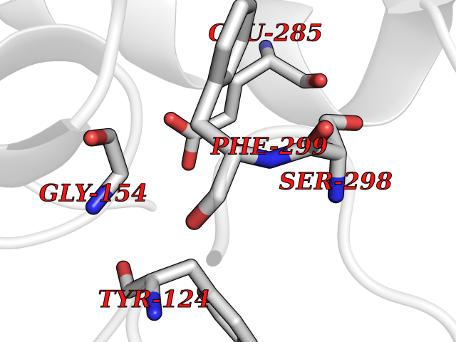 Target general information Gen name ACHE Organism Homo sapiens (Human) Uniprot ID TTD ID Synonyms YT; N-ACHE; ARACHE Protein family Type-B carboxylesterase/lipase family Biochemical class Carboxylic ester hydrolase Function Role in neuronal apoptosis. Terminates signal transduction at the neuromuscular junction by rapid hydrolysis of the acetylcholine released into the synaptic cleft. Related diseases Phosphoribosylaminoimidazole carboxylase deficiency (PAICSD) [MIM:619859]: An autosomal recessive inborn error of purine metabolism, clinically characterized by multiple congenital anomalies and early neonatal death. {ECO:0000269|PubMed:31600779}. The disease is caused by variants affecting the gene represented in this entry. Drugs (DrugBank ID) DB07846; DB02673; DB04617; DB04614; DB04615; DB07756; DB07701; DB02404; DB03814; DB08615; DB02343; DB02226; DB03005; DB04114; DB03128; DB01122; DB03283; DB00411; DB00122; DB14006; DB01245; DB00944; DB08357; DB08996; DB00449; DB00843; DB01010; DB01364; DB00898; DB00674; DB00483; DB06525; DB04864; DB03348; DB07555; DB00677; DB04924; DB03359; DB00358; DB00940; DB02825; DB02845; DB08167; DB04021; DB00805; DB01805; DB03740; DB04556; DB01400; DB04892; DB00981; DB00733; DB02166; DB00545; DB00863; DB00989; DB00382; DB04616; DB12816; DB01199; DB13503; DB04859 Interacts with Q9Y215; P06733; P63244 EC number EC 3.1.1.7 Uniprot keywords 3D-structure; Alternative splicing; Blood group antigen; Cell membrane; Direct protein sequencing; Disulfide bond; Glycoprotein; GPI-anchor; Hydrolase; Lipoprotein; Membrane; Neurotransmitter degradation; Nucleus; Proteomics identification; Reference proteome; Secreted; Serine esterase; Signal; Synapse Protein physicochemical properties Chain ID A,B Molecular weight (Da) 58804.1 Length 537 Aromaticity 0.11 Instability index 40.85 Isoelectric point 5.73 Charge (pH=7) -8.18 3D Binding mode Sequence EDAELLVTVRGGRLRGIRLKTPGGPVSAFLGIPFAEPPMGPRRFLPPEPKQPWSGVVDATTFQSVCYQYVDTLYPGFEGTEMWNPNRELSEDCLYLNVWTPYPRPTSPTPVLVWIYGGGFYSGASSLDVYDGRFLVQAERTVLVSMNYRVGAFGFLALPGSREAPGNVGLLDQRLALQWVQENVAAFGGDPTSVTLFGESAGAASVGMHLLSPPSRGLFHRAVLQSGAPNGPWATVGMGEARRRATQLAHLVGCPPGGTGGNDTELVACLRTRPAQVLVNHEWHVLPQESVFRFSFVPVVDGDFLSDTPEALINAGDFHGLQVLVGVVKDEGSYFLVYGAPGFSKDNESLISRAEFLAGVRVGVPQVSDLAAEAVVLHYTDWLHPEDPARLREALSDVVGDHNVVCPVAQLAGRLAAQGARVYAYVFEHRASTLSWPLWMGVPHGYEIEFIFGIPLDPSRNYTAEEKIFAQRLMRYWANFARTGDPNEPPKAPQWPPYTAGAQQYVSLDLRPLEVRRGLRAQACAFWNRFLPKLLSA Hydrogen bonds contact Hydrophobic contact | ||||