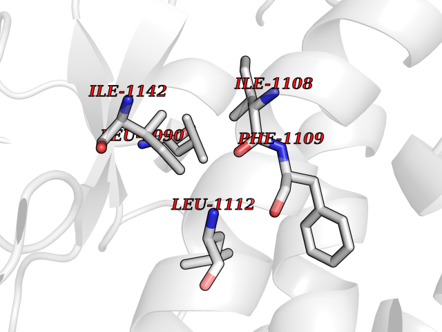 Target general information Gen name GABRA1 Organism Homo sapiens (Human) Uniprot ID TTD ID Synonyms Gamma-aminobutyric acid receptor subunit alpha-1; GABA(A) receptor subunit alpha-1 Protein family Ligand-gated ion channel (TC 1.A.9) family, Gamma-aminobutyric acid receptor (TC 1.A.9.5) subfamily, GABRA1 sub-subfamily Biochemical class Ligand-gated ion channel Function Ligand-gated chloride channel which is a component of the heteropentameric receptor for GABA, the major inhibitory neurotransmitter in the brain. Plays an important role in the formation of functional inhibitory GABAergic synapses in addition to mediating synaptic inhibition as a GABA-gated ion channel. The gamma2 subunit is necessary but not sufficient for a rapid formation of active synaptic contacts and the synaptogenic effect of this subunit is influenced by the type of alpha and beta subunits present in the receptor pentamer (By similarity). The alpha1/beta2/gamma2 receptor and the alpha1/beta3/gamma2 receptor exhibit synaptogenic activity. GABRA1-mediated plasticity in the orbitofrontal cortex regulates context-dependent action selection (By similarity). Functions also as histamine receptor and mediates cellular responses to histamine (By similarity). Related diseases Epilepsy, childhood absence 4 (ECA4) [MIM:611136]: A subtype of idiopathic generalized epilepsy characterized by an onset at age 6-7 years, frequent absence seizures (several per day) and bilateral, synchronous, symmetric 3-Hz spike waves on EEG. Tonic-clonic seizures often develop in adolescence. Absence seizures may either remit or persist into adulthood. {ECO:0000269|PubMed:16718694}. Disease susceptibility is associated with variants affecting the gene represented in this entry.; DISEASE: Epilepsy, idiopathic generalized 13 (EIG13) [MIM:611136]: A disorder characterized by recurring generalized seizures in the absence of detectable brain lesions and/or metabolic abnormalities. Generalized seizures arise diffusely and simultaneously from both hemispheres of the brain. Seizure types include juvenile myoclonic seizures, absence seizures, and generalized tonic-clonic seizures. {ECO:0000269|PubMed:21714819}. Disease susceptibility is associated with variants affecting the gene represented in this entry.; DISEASE: Juvenile myoclonic epilepsy 5 (EJM5) [MIM:611136]: A subtype of idiopathic generalized epilepsy. Patients have afebrile seizures only, with onset in adolescence (rather than in childhood) and myoclonic jerks which usually occur after awakening and are triggered by sleep deprivation and fatigue. {ECO:0000269|PubMed:11992121}. Disease susceptibility is associated with variants affecting the gene represented in this entry.; DISEASE: Developmental and epileptic encephalopathy 19 (DEE19) [MIM:615744]: A severe neurologic disorder characterized by onset of seizures in the first months of life and usually associated with EEG abnormalities. Affected infants have convulsive seizures (hemiclonic or generalized) that are often prolonged and triggered by fever. Other seizure types include focal, myoclonic, absence seizures, and drop attacks. Development is normal in the first year of life with later slowing and intellectual disability. {ECO:0000269|PubMed:24623842, ECO:0000269|PubMed:27864847}. The disease is caused by variants affecting the gene represented in this entry. Drugs (DrugBank ID) DB12537; DB00546; DB06579; DB00404; DB01351; DB00543; DB11901; DB01352; DB01483; DB14719; DB11859; DB01558; DB09017; DB00237; DB00241; DB01353; DB01489; DB00395; DB00475; DB14715; DB01594; DB00349; DB06470; DB01068; DB00628; DB01559; DB01553; DB00363; DB01511; DB01189; DB00829; DB01496; DB01341; DB13837; DB00228; DB01215; DB00402; DB00898; DB00189; DB01545; DB09166; DB00292; DB01567; DB01205; DB01544; DB00690; DB05087; DB01381; DB01437; DB00801; DB01159; DB01354; DB01355; DB00753; DB01587; DB00555; DB13643; DB00186; DB13872; DB13437; DB00603; DB01043; DB00371; DB00463; DB00474; DB01028; DB00849; DB01107; DB15489; DB00683; DB12458; DB01595; DB14028; DB00334; DB00842; DB14672; DB00312; DB01174; DB00252; DB00466; DB13335; DB01708; DB01588; DB00794; DB00837; DB00818; DB01589; DB01346; DB12404; DB00418; DB01236; DB09118; DB00306; DB01956; DB00231; DB01154; DB11582; DB00599; DB00273; DB00897; DB00962; DB00425; DB00909; DB01198; DB15490 Interacts with NA EC number NA Uniprot keywords 3D-structure; Cell membrane; Chloride; Chloride channel; Cytoplasmic vesicle; Disease variant; Disulfide bond; Epilepsy; Glycoprotein; Ion channel; Ion transport; Ligand-gated ion channel; Membrane; Postsynaptic cell membrane; Proteomics identification; Receptor; Reference proteome; Signal; Synapse; Transmembrane; Transmembrane helix; Transport Protein physicochemical properties Chain ID A,B Molecular weight (Da) 77460 Length 672 Aromaticity 0.14 Instability index 35.95 Isoelectric point 8.75 Charge (pH=7) 7.31 3D Binding mode Sequence SNMSLVKETVDRLLKGYDIRLRPDFGGPPVAVGMNIDIASIDMVSEVNMDYTLTMYFQQAWRDKRLSYNVIPLNLTLDNRVADQLWVPDTYFLNDKKSFVHGVTVKNRMIRLHPDGTVLYGLRITTTAACMMDLRRYPLDEQNCTLEIESYGYTTDDIEFYWRGDDNAVTGVTKIELPQFSIVDYKLITKKVVFSTGSYPRLSLSFKLKRNIGYFILQTYMPSILITILSWVSFWINYDASAARVALGITTVLTMTTINTHLRETLPKIPYVKAIDMYLMGCFVFVFMALLEYALVNYIFFSQPARAAAIDRWSRIFFPVVFSFFNIVYWLYYVDNTTVFTRILDRLLDGYDNRLRPGLGERVTEVKTDIFVTSFGPVSDHDMEYTIDVFFRQSWKDERLKFKGPMTVLRLNNLMASKIWTPDTFFHNGKKSVAHNMTMPNKLLRITEDGTLLYTMRLTVRAECPMHLEDFPMDAHACPLKFGSYAYTRAEVVYEWTREPARSVVVAEDGSRLNQYDLLGQTVDSGIVQSSTGEYVVMTTHFHLKRKIGYFVIQTYLPCIMTVILSQVSFWLNRESVPARTVFGVTTVLTMTTLSISARNSLPKVAYATAMDWFIAVCYAFVFSALIEFATVNYFTKSQPARAAKIDRLSRIAFPLLFGIFNLVYWATYLNR Hydrogen bonds contact Hydrophobic contact | ||||
