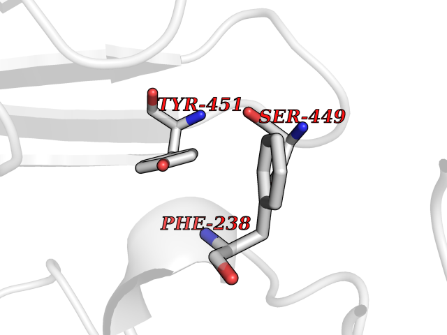 Target general information Gen name DPP8 Organism Homo sapiens (Human) Uniprot ID TTD ID Synonyms Prolyl dipeptidase DPP8; MSTP141; MSTP135; MSTP097; Dipeptidyl peptidase VIII; Dipeptidyl peptidase IV-related protein 1; DPRP1; DPRP-1; DPP VIII; DP8 Protein family Peptidase S9B family, DPPIV subfamily Biochemical class Peptidase Function Dipeptidyl peptidase that cleaves off N-terminal dipeptides from proteins having a Pro or Ala residue at position 2. Related diseases Orotic aciduria 1 (ORAC1) [MIM:258900]: A disorder of pyrimidine metabolism resulting in megaloblastic anemia and orotic acid crystalluria that is frequently associated with some degree of physical and intellectual disability. A minority of cases have additional features, particularly congenital malformations and immune deficiencies. {ECO:0000269|PubMed:9042911}. The disease is caused by variants affecting the gene represented in this entry. Drugs (DrugBank ID) NA Interacts with NA EC number EC 3.4.14.5 Uniprot keywords 3D-structure; Alternative splicing; Aminopeptidase; Apoptosis; Cytoplasm; Hydrolase; Protease; Proteomics identification; Reference proteome; Serine protease Protein physicochemical properties Chain ID A,D Molecular weight (Da) 97764.9 Length 849 Aromaticity 0.12 Instability index 47.71 Isoelectric point 5.69 Charge (pH=7) -21.66 3D Binding mode Sequence LEPFYVERYSWSQLKKLLADTRKYHGYMMAKAPHDFMFVKRNDPDGPHSDRIYYLAMSNRENTLFYSEIPKTINRAAVLMLSWKPLLDLFQYSREEELLRERKRIGTVGIASYDYHQGSGTFLFQAGSGIYHVKDGGPQGFTQQPLRPNLVETSCPNIRMDPKLCPADPDWIAFIHSNDIWISNIVTREERRLTYVHNELANMEEDARSAGVATFVLQEEFDRYSGYWWCPKAETTPSGGKILRILYEENDESEVEIIHVTSPMLETRRADSFRYPKTGTANPKVTFKMSEIMIDAEGRIIDVIDKELIQPFEILFEGVEYIARAGWTPEGKYAWSILLDRSQTRLQIVLISPELFIPVEDDVMERQRLIESVPDSVTPLIIYEETTDIWINIHDIFHVFPQSHEEEIEFIFASECKTGFRHLYKITSILKESKYKRSSGGLPAPSDFKCPIKEEIAITSGEWEVLGRHGSNIQVDEVRRLVYFEGTKDSPLEHHLYVVSYVNPGEVTRLTDRGYSHSCCISQHCDFFISKYSNQKNPHCVSLYKLSSPEDDPTCKTKEFWATILDSAGPLPDYTPPEIFSFESTTGFTLYGMLYKPHDLQPGKKYPTVLFIYGGPQVQLVNNRFKGVKYFRLNTLASLGYVVVVIDNRGSXHRGLKFEGAFKYKMGQIEIDDQVEGLQYLASRYDFIDLDRVGIHGWSYGGYLSLMALMQRSDIFRVAIAGAPVTLWIFYDTGYTERYMGHPDQNEQGYYLGSVAMQAEKFPSEPNRLLLLHGFLDENVHFAHTSILLSFLVRAGKPYDLQIYPQERHSIRVPESGEHYELHLLHYLQENLGSRIAALKVSLRFLYEG Hydrogen bonds contact Hydrophobic contact | ||||