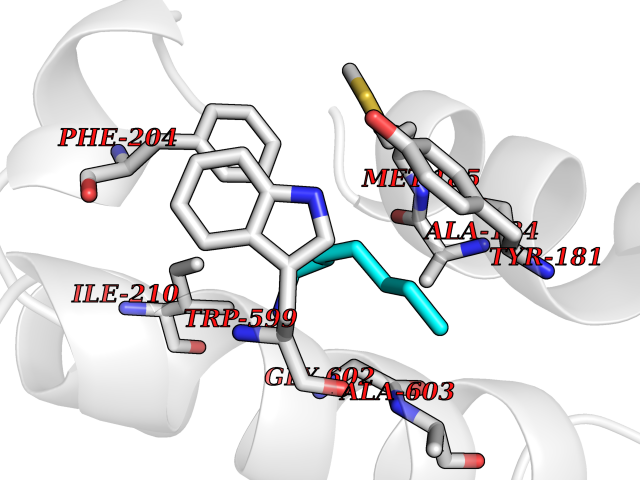 Target general information Gen name CHRNB4 Organism Homo sapiens (Human) Uniprot ID TTD ID Synonyms CHRNB4; Beta-4 nAChR Protein family Ligand-gated ion channel (TC 1.A.9) family, Acetylcholine receptor (TC 1.A.9.1) subfamily, Beta-4/CHRNB4 sub-subfamily Biochemical class Neurotransmitter receptor Function After binding acetylcholine, the AChR responds by an extensive change in conformation that affects all subunits and leads to opening of an ion-conducting channel across the plasma membrane. Related diseases Renal cell carcinoma (RCC) [MIM:144700]: Renal cell carcinoma is a heterogeneous group of sporadic or hereditary carcinoma derived from cells of the proximal renal tubular epithelium. It is subclassified into clear cell renal carcinoma (non-papillary carcinoma), papillary renal cell carcinoma, chromophobe renal cell carcinoma, collecting duct carcinoma with medullary carcinoma of the kidney, and unclassified renal cell carcinoma. Clear cell renal cell carcinoma is the most common subtype. {ECO:0000269|PubMed:20054297, ECO:0000269|PubMed:23622243, ECO:0000269|PubMed:23792563, ECO:0000269|PubMed:25728682}. The disease may be caused by variants affecting the gene represented in this entry. Defects of SETD2 are associated with loss of DNA methylation at non-promoter regions (PubMed:23792563). SETD2 defects lead to aberrant and reduced nucleosome compaction and chromatin association of key replication proteins, such as MCM7 and DNA polymerase delta, leading to hinder replication fork progression and prevent loading of RAD51 homologous recombination repair factor at DNA breaks (PubMed:25728682). {ECO:0000269|PubMed:23792563, ECO:0000269|PubMed:25728682}.; DISEASE: Luscan-Lumish syndrome (LLS) [MIM:616831]: An autosomal dominant syndrome with a variable phenotype. Clinical features include macrocephaly, distinctive facial appearance, postnatal overgrowth, various degrees of learning difficulties, autism spectrum disorder, and intellectual disability. {ECO:0000269|PubMed:23160955, ECO:0000269|PubMed:24852293, ECO:0000269|PubMed:26084711, ECO:0000269|PubMed:27317772}. The disease may be caused by variants affecting the gene represented in this entry.; DISEASE: Leukemia, acute lymphoblastic (ALL) [MIM:613065]: A subtype of acute leukemia, a cancer of the white blood cells. ALL is a malignant disease of bone marrow and the most common malignancy diagnosed in children. The malignant cells are lymphoid precursor cells (lymphoblasts) that are arrested in an early stage of development. The lymphoblasts replace the normal marrow elements, resulting in a marked decrease in the production of normal blood cells. Consequently, anemia, thrombocytopenia, and neutropenia occur to varying degrees. The lymphoblasts also proliferate in organs other than the marrow, particularly the liver, spleen, and lymphnodes. {ECO:0000269|PubMed:24509477, ECO:0000269|PubMed:24662245}. The disease may be caused by variants affecting distinct genetic loci, including the gene represented in this entry.; DISEASE: Leukemia, acute myelogenous (AML) [MIM:601626]: A subtype of acute leukemia, a cancer of the white blood cells. AML is a malignant disease of bone marrow characterized by maturational arrest of hematopoietic precursors at an early stage of development. Clonal expansion of myeloid blasts occurs in bone marrow, blood, and other tissue. Myelogenous leukemias develop from changes in cells that normally produce neutrophils, basophils, eosinophils and monocytes. {ECO:0000269|PubMed:16314571, ECO:0000269|PubMed:24509477}. The disease may be caused by variants affecting distinct genetic loci, including the gene represented in this entry.; DISEASE: Intellectual developmental disorder, autosomal dominant 70 (MRD70) [MIM:620157]: An autosomal dominant disorder characterized by mild global developmental delay, moderately impaired intellectual disability with speech difficulties, and behavioral abnormalities. {ECO:0000269|PubMed:32710489}. The disease is caused by variants affecting the gene represented in this entry.; DISEASE: Rabin-Pappas syndrome (RAPAS) [MIM:620155]: An autosomal dominant neurodevelopmental disorder characterized by severely impaired global development, intellectual disability, microcephaly, facial dysmorphism, and variable congenital anomalies affecting the skeletal, genitourinary, cardiac, and other organ systems. {ECO:0000269|PubMed:32710489}. The disease is caused by variants affecting the gene represented in this entry. Drugs (DrugBank ID) DB00237; DB00565; DB00514; DB07720; DB00898; DB00472; DB01227; DB00184; DB01090; DB00202 Interacts with Q6FHY5 EC number NA Uniprot keywords 3D-structure; Alternative splicing; Cell membrane; Disulfide bond; Glycoprotein; Ion channel; Ion transport; Ligand-gated ion channel; Membrane; Postsynaptic cell membrane; Proteomics identification; Receptor; Reference proteome; Signal; Synapse; Transmembrane; Transmembrane helix; Transport Protein physicochemical properties Chain ID A,B Molecular weight (Da) 89661.2 Length 775 Aromaticity 0.12 Instability index 35.11 Isoelectric point 6.07 Charge (pH=7) -5.67 3D Binding mode Sequence SEAEHRLFERLFEDYNEIIRPVANVSDPVIIHFEVSMSQLVKVDEVNQIMETNLWLKQIWNDYKLKWNPSDYGGAEFMRVPAQKIWKPDIVLYNNAVGDFQVDDKTKALLKYTGEVTWIPPAIFKSSCKIDVTYFPFDYQNCTMKFGSWSYDKAKIDLVLIGSSMNLKDYWESGEWAIIKAPGYKHDIKYNCCEEIYPDITYSLYIRRLPLFYTINLIIPCLLISFLTVLVFYLPSDCGEKVTLCISVLLSLTVFLLVITETIPSTSLVIPLIGEYLLFTMIFVTLSIVITVFVLNVHYRTPTTHTMPSWVKTVFLNLLPRVMFMTRIKEAIQSVKYIAENMKAQNEAKEIQDDWKYVAMVIDRIFLWVFTLVCILGTAGLFLQPLMRVANAEEKLMDDLLNKTRYNNLIRPATSSSQLISIKLQLSLAQLISVNEREQIMTTNVWLKQEWTDYRLTWNSSRYEGVNILRIPAKRIWLPDIVLYNNADGTYEVSVYTNLIVRSNGSVLWLPPAIYKSACKIEVKYFPFDQQNCTLKFRSWTYDHTEIDMVLMTPTASMDDFTPSGEWDIVALPGRRTVNPQDPSYVDVTYDFIIKRKPLFYTINLIIPCVLTTLLAILVFYLPSDCGEKMTLCISVLLALTFFLLLISKIVPPTSLDVPLIGKYLMFTMVLVTFSIVTSVCVLNVHHRSPSTHTMAPWVKRCFLHKLPTFLFMKRRQDVQEALEGVSFIAQHMKNDDEDQSVVEDWKYVAMVVDRLFLWVFMFVCVLGTVGLFLP Hydrogen bonds contact Hydrophobic contact | ||||
