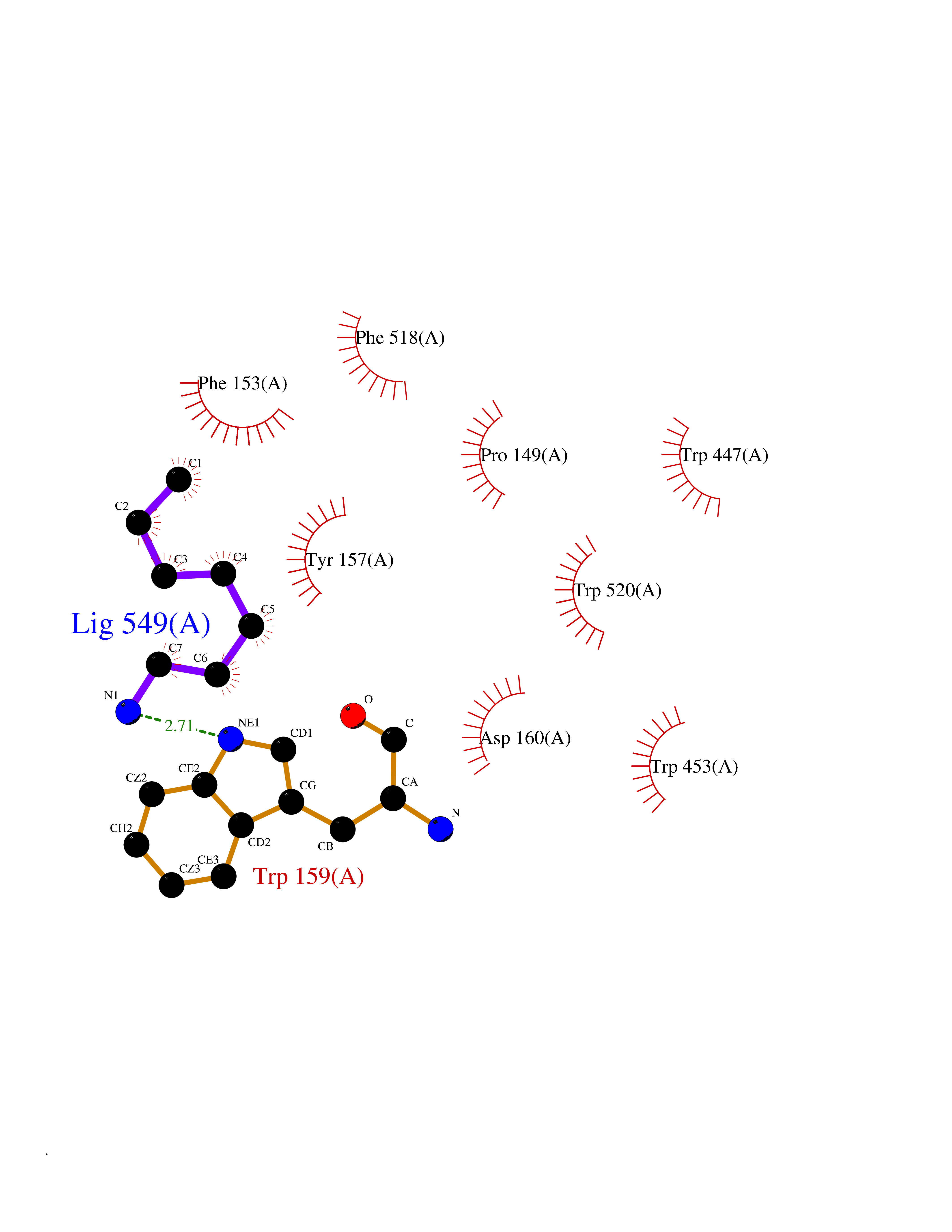Target general information Gen name ALOX5 Organism Homo sapiens (Human) Uniprot ID TTD ID Synonyms LOG5; 5-lipoxygenase; 5-LO Protein family Lipoxygenase family Biochemical class Oxygenase Function Catalyzes the first step in leukotriene biosynthesis, and thereby plays a role in inflammatory processes. Related diseases Pigmentary disorder, reticulate, with systemic manifestations, X-linked (PDR) [MIM:301220]: An X-linked recessive disorder characterized by recurrent infections and sterile inflammation in various organs. Diffuse skin hyperpigmentation with a distinctive reticulate pattern is universally evident by early childhood. This is later followed in many patients by hypohidrosis, corneal inflammation and scarring, enterocolitis that resembles inflammatory bowel disease, and recurrent urethral strictures. Melanin and amyloid deposition is present in the dermis. Affected males also have a characteristic facies with frontally upswept hair and flared eyebrows. Female carriers have only restricted pigmentary changes along Blaschko's lines. {ECO:0000269|PubMed:27019227}. The disease is caused by variants affecting the gene represented in this entry. XLPDR is caused by a recurrent intronic mutation that results in missplicing and reduced POLA1 expression. This leads to a decrease in cytosolic RNA:DNA hybrids and constitutive activation of type I interferon responses, but has no effect on cell replication. {ECO:0000269|PubMed:27019227}.; DISEASE: Van Esch-O'Driscoll syndrome (VEODS) [MIM:301030]: An X-linked recessive syndrome characterized by different degrees of intellectual disability, moderate to severe short stature, microcephaly, hypogonadism, and variable congenital malformations. {ECO:0000269|PubMed:31006512}. The disease is caused by variants affecting the gene represented in this entry. Drugs (DrugBank ID) DB14001; DB00233; DB01014; DB09061; DB14002; DB11994; DB00586; DB00711; DB12010; DB01892; DB00159; DB04725; DB00179; DB00939; DB14009; DB00244; DB01017; DB05431; DB00471; DB09285; DB14011; DB11133; DB13168; DB02709; DB13174; DB00795; DB00163; DB00744 Interacts with Q8IYJ2-2; Q6PII3; Q6P2R3; Q8IYX8-2; Q96MT8; Q96MT8-3; Q14019; P09769; O43716; P08631; Q6UWX4; P14061; P31025; Q9Y6D9; P50221; Q6FHY5; Q86Y26; A6NGQ2; P17612; Q04864; Q7Z699; Q8N0S2; Q9P0N9; P07947 EC number EC 1.13.11.34 Uniprot keywords 3D-structure; Alternative splicing; Calcium; Cytoplasm; Dioxygenase; Direct protein sequencing; Hydrolase; Iron; Leukotriene biosynthesis; Lipid metabolism; Membrane; Metal-binding; Nucleus; Oxidoreductase; Phosphoprotein; Proteomics identification; Reference proteome Protein physicochemical properties Chain ID A,B Molecular weight (Da) 60590.7 Length 523 Aromaticity 0.11 Instability index 41.73 Isoelectric point 5.69 Charge (pH=7) -10.99 3D Binding mode Sequence RDGRAKLARDDQIHILKQHRRKELETRQKQYRWMEWNPGFPLSIDAKCHKDLPRDIQFDSFVLNYSKAMENLFQSSWNDFADFEKIFVKISNTISERVMNHWQEDLMFGYQFLNGANPVLIRRCTELPEKLPVTTEMVECSLERQLSLEQEVQQGNIFIVDFELLDGIDCTLQFLAAPICLLYKNLANKIVPIAIQLNQIPGDENPIFLPSDAKYDWLLAKIWVRSSDFHVHQTITHLLRTHLVSEVFGIAMYRQLPAVHPIFKLLVAHVRFTIAINTKAREQGGHVQMVQRAMKDLTYASLCFPEAIKARGMESKEDIPYYFYRDDGLLVWEAIRTFTAEVVDIYYEGDQVVEEDPELQDFVNDVYVYGMRGRKSSGFPKSVKSREQLSEYLTVVIFTASAQHAAVNFGQYDWASWIPNAPPTMRAPPPTAKGVVTIEQIVDTLPDRGRSCWHLGAVWALSQFELFLGMYPEEHFIEKPVKEAMARFRKNLEAIVSVIAERNENLQLPYYYLDPDRIPNSVA Hydrogen bonds contact Hydrophobic contact | ||||